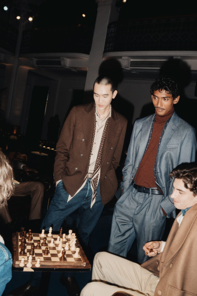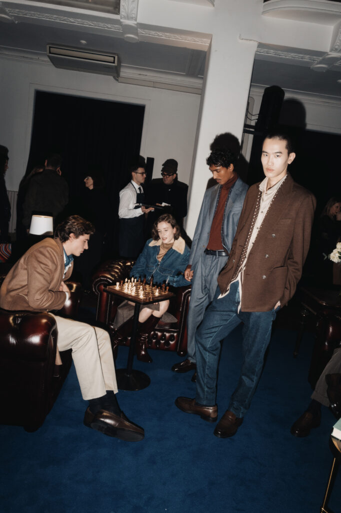 Milan, 16 janvier 2026. Dans un hôtel de luxe entièrement scénographié en denim par Fabio Chrestich, la Maison Jacob Cohën présente sa collection Automne-Hiver 2026/27. Un choix de décor qui n’est pas une coquetterie : c’est un argument. Une façon de dire que le denim n’est pas une toile de fond mais un matériau de construction — apte à habiller autant les murs qu’un homme qui sait pourquoi il s’habille.