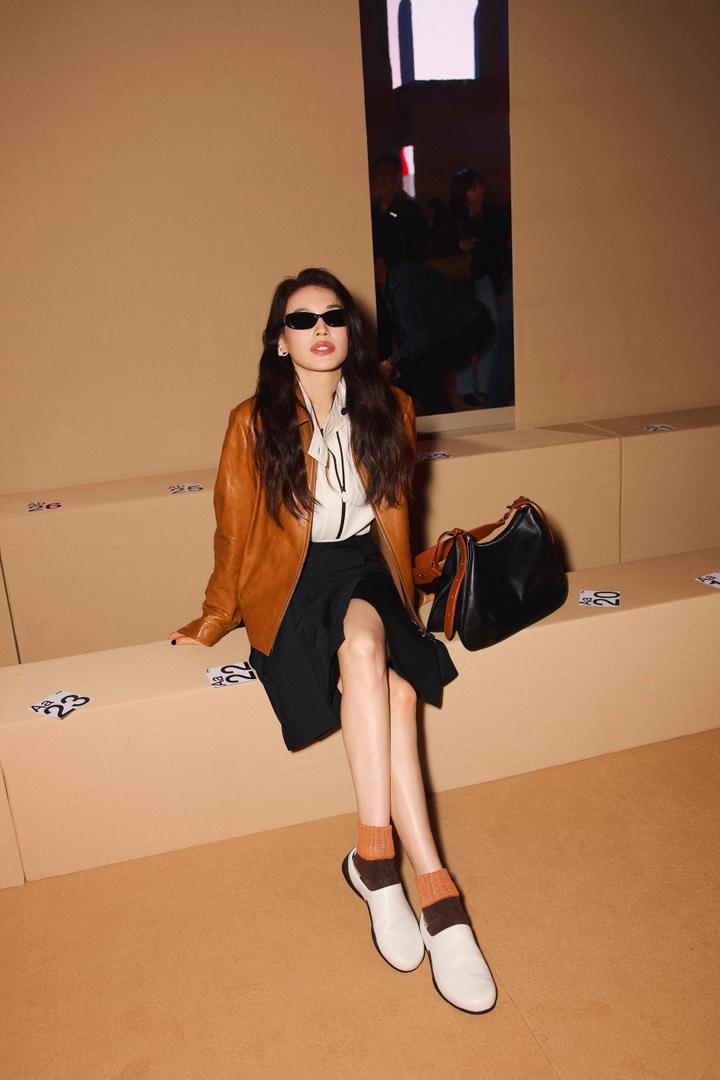 Détail matière : Le velours, signature archive de la maison, passe ici en version tricot main. Ce choix technique mérite attention : le velours coupé industriel garantit une surface uniforme ; le tricot à la main produit des irrégularités de tension qui varient selon la vitesse d’exécution. C’est une décision délibérément anti-industrielle dans une collection qui parle pourtant de cadences urbaines.