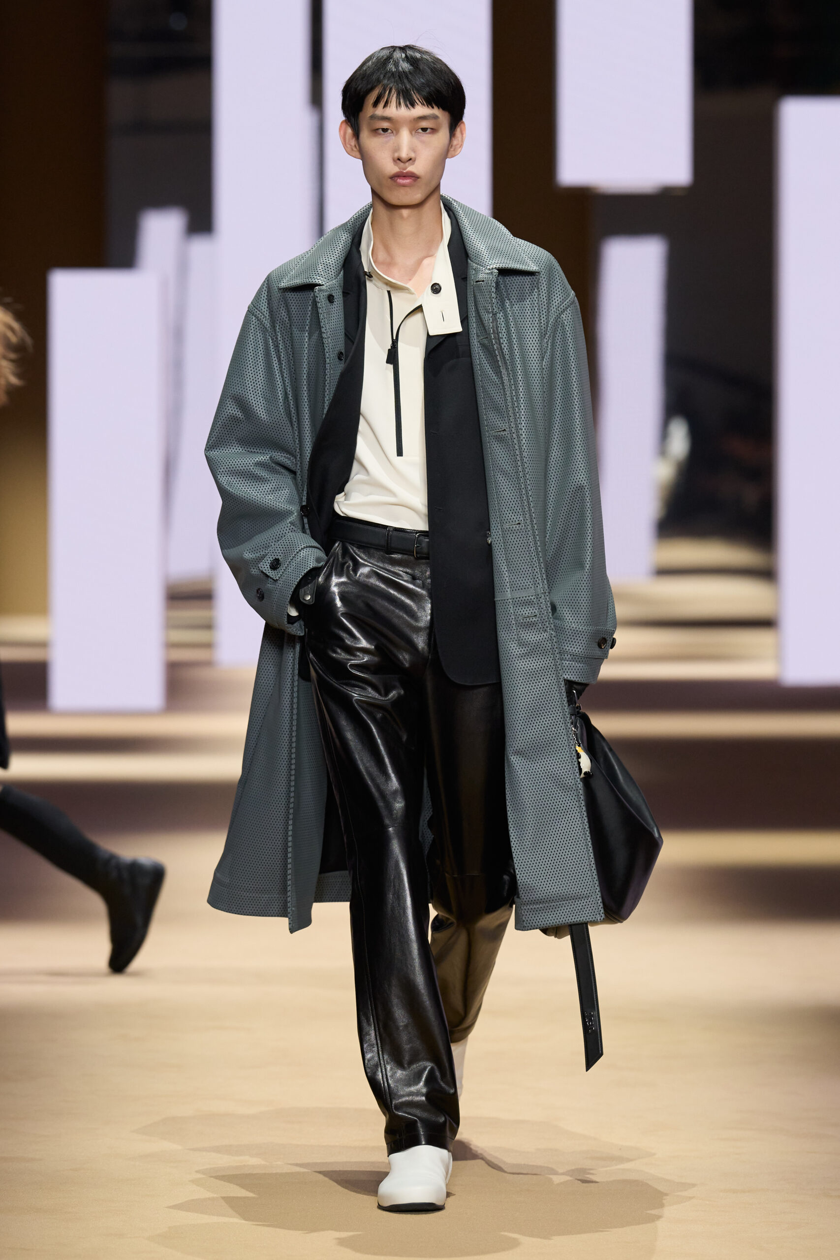 La pièce la plus révélatrice de la collection n’est pas visible au premier regard. C’est un soufflet nylon positionné aux points de tension structurelle des vêtements — là où le tissu cède habituellement à l’usage. Ce détail résume l’ambition d’Alistair Carr : non pas dissimuler l’origine sportive de la maison, mais la rendre fonctionnellement invisible au sein d’un vestiaire civil. Les laines tailleur déperlantes et les zips sans bande apparente procèdent de la même logique : la performance s’efface derrière la finition, sans disparaître.