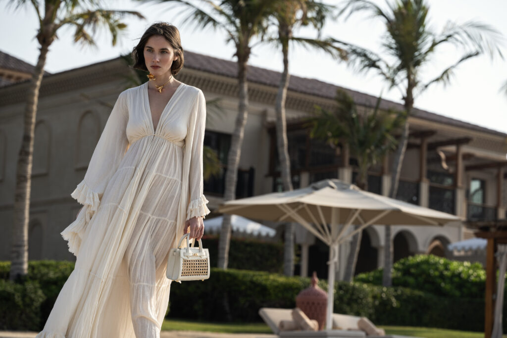 Une créatrice d’accessoires basée à Los Angeles, un atelier près de Florence, deux resorts de Dubaï. La géographie de cette collaboration dessine un triangle inhabituel. Tyler Ellis, connue pour ses sacs structurés fabriqués à la main, signe une collection capsule exclusive pour One&Only The Palm et One&Only Royal Mirage. Trois modèles — Stella, Winnie et Victoria (ce dernier créé spécifiquement pour l’occasion) — déclinés en quatre coloris pensés comme des traductions chromatiques de l’architecture des deux établissements.