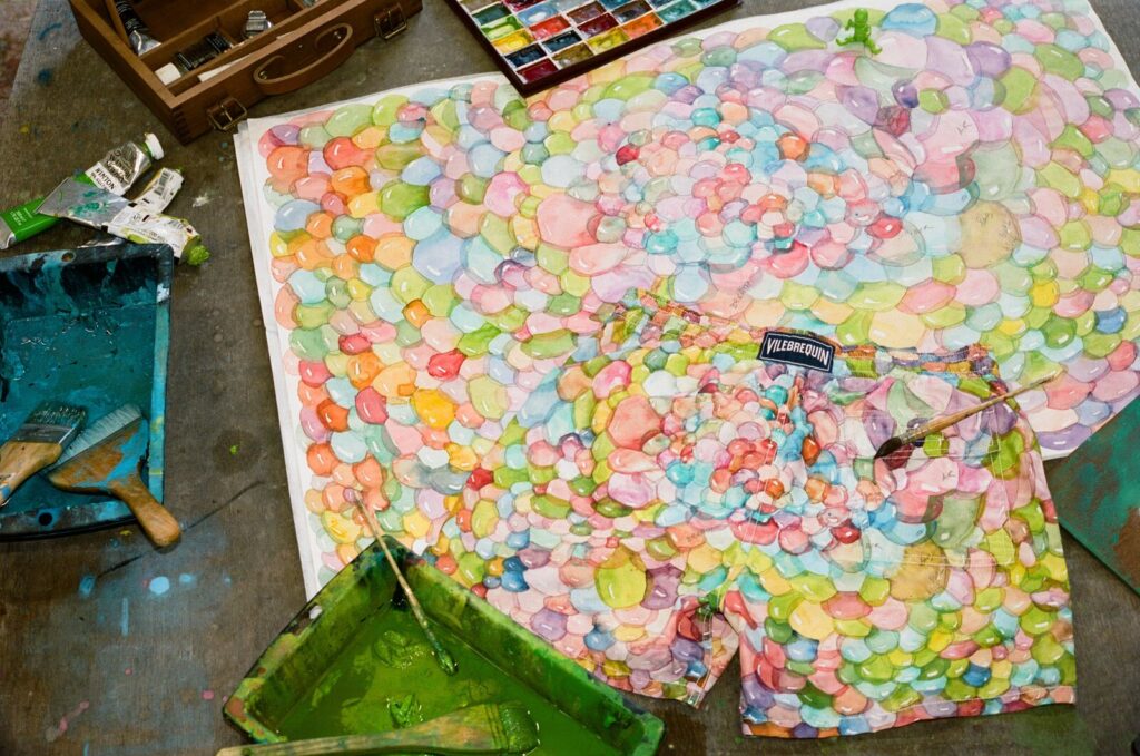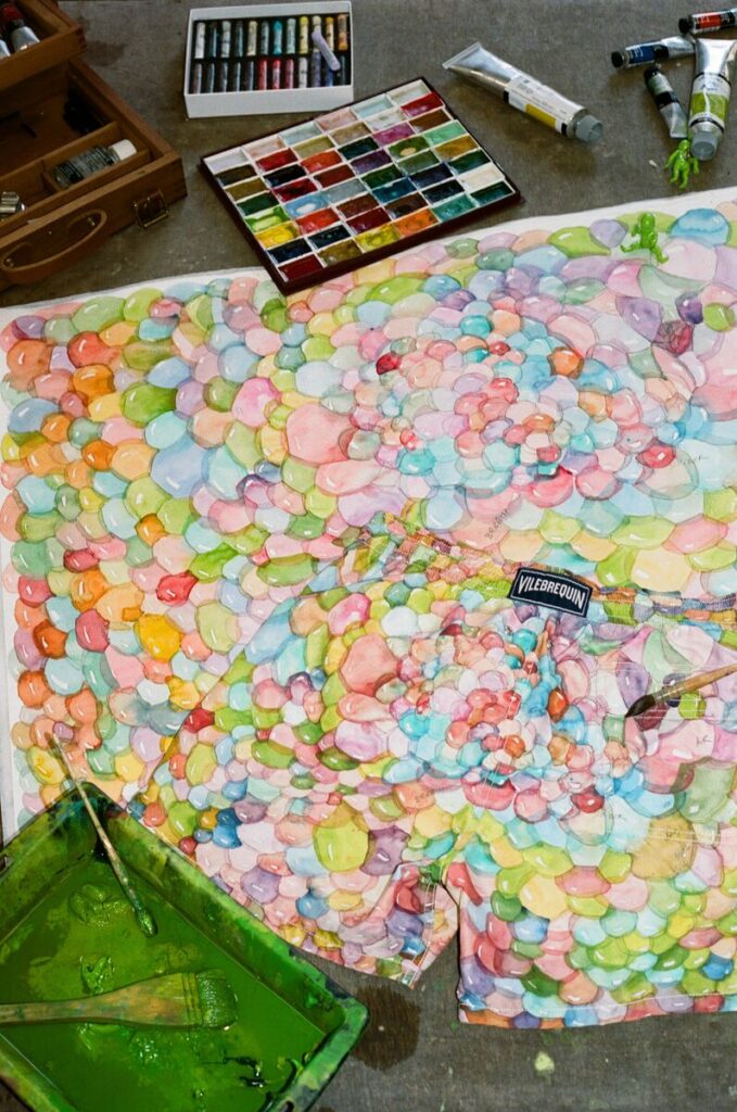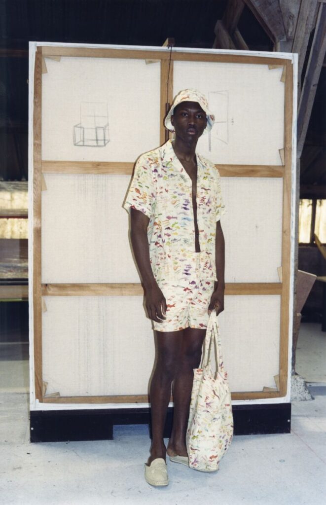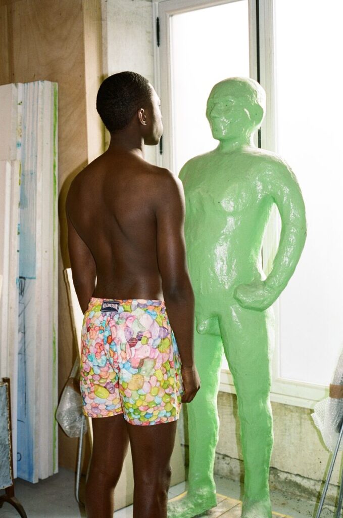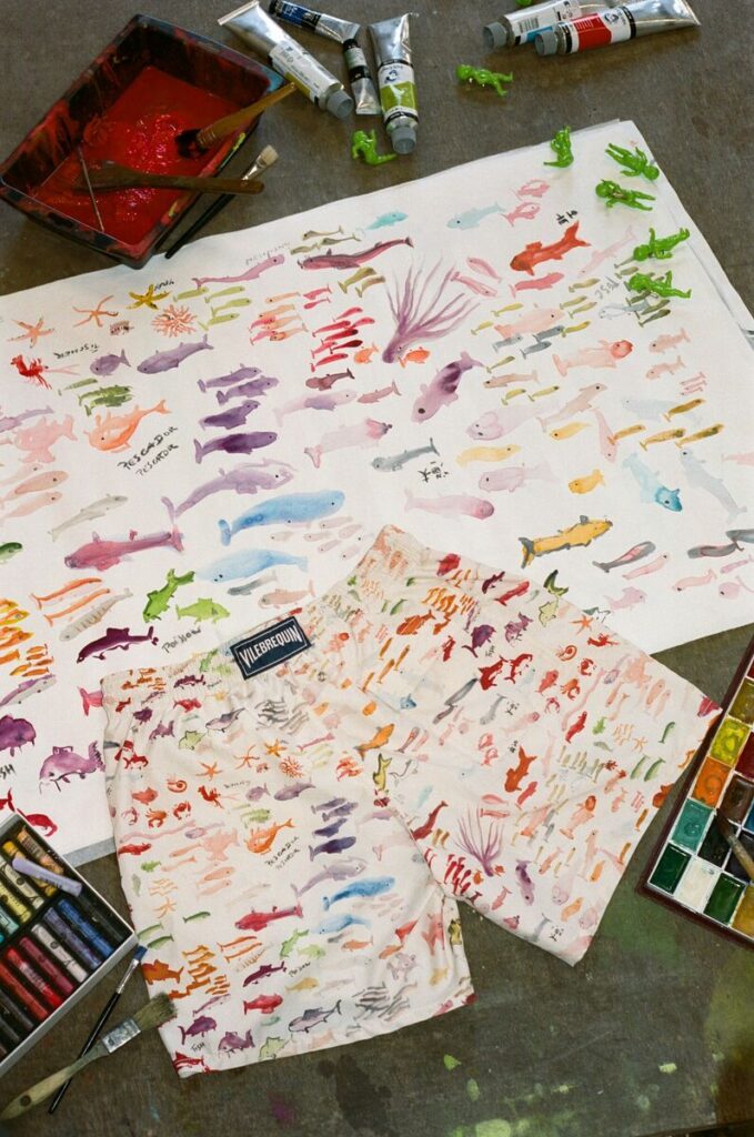 À l’occasion de la collection Été 2026, la Maison Vilebrequin poursuit son exploration des passerelles entre l’art contemporain et le vestiaire balnéaire. En invitant Fabrice Hyber à investir ses toiles, la griffe tropézienne délaisse l’ornement pur pour une immersion dans l’univers du « POF » (Prototype d’Objet en Fonctionnement) et de la croissance organique.