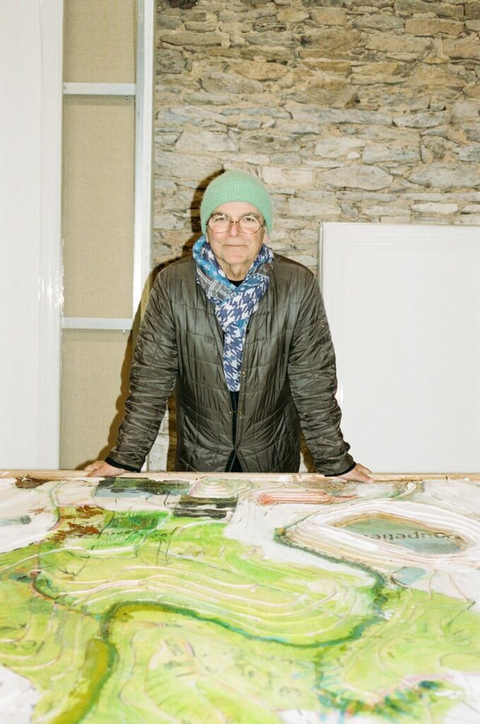 Le travail de Fabrice Hyber sur le costume de bain n’est pas une simple application de motifs. Il s’agit d’une transposition de son système de pensée : le rhizome. Sur les pièces de cette première édition, on retrouve les tracés caractéristiques de l’artiste : des formes cellulaires, des flèches suggérant un cycle de recyclage infini et des êtres hybrides. Le vert, couleur de prédilection de l’artiste qui a semé des centaines de milliers d’arbres dans sa vallée vendéenne depuis 1995, devient ici le liant chromatique d’une collection qui interroge notre rapport à l’environnement.