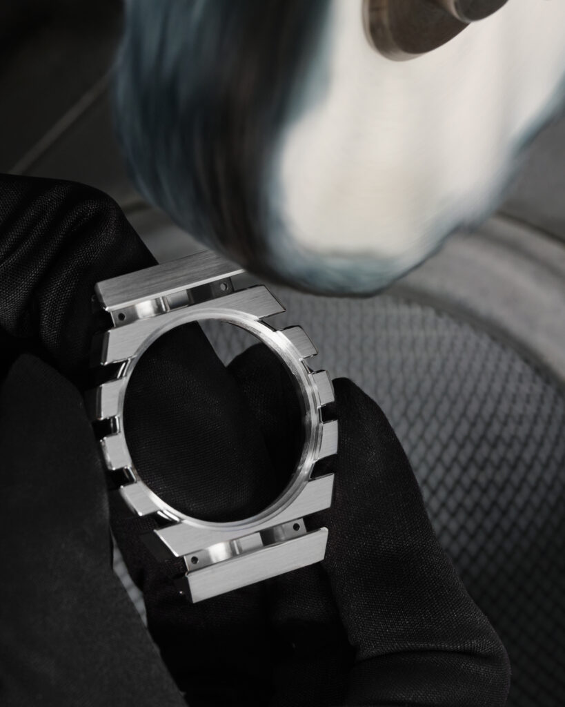 L’objet se définit par une intégration totale : le boîtier de 38 mm et le bracelet ne forment qu’une seule unité visuelle et tactile. L’alternance entre l’or blanc satiné et les godrons en or jaune poli crée un relief texturé qui s’étire sans interruption jusqu’au cadran en or massif. Pour l’observateur profane, l’éclat de l’or blanc pourrait évoquer l’acier inoxydable ; pour l’esthète, il s’agit d’une affirmation de la « Maison de l’Or », où chaque gramme de métal est fondu dans la propre fonderie de la manufacture à Genève.