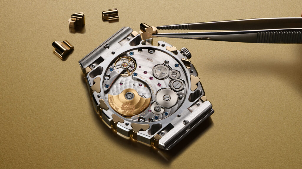 L’alliance de l’or blanc et de l’or jaune dans la nouvelle Polo 79 bicolore ne relève pas de la simple décoration. Elle souligne une structure technique où le métal précieux devient le support d’une innovation extra-plate historique.