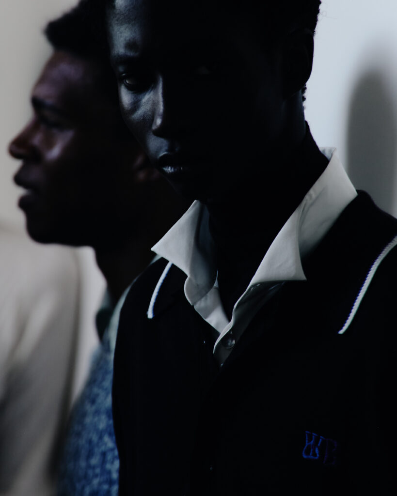 Le dialogue entre Wales Bonner et John Smedley se manifeste par une recherche formelle sur les textures. En s’immergeant dans le patrimoine de la manufacture, la créatrice a exhumé des tricots texturés en damier et des cols ajourés, détails subtils qu’elle réinterprète avec une sensibilité contemporaine. La collection explore une élégance preppy à travers des polos en coton fin et laine mérinos, teintés de brun foncé, d’ivoire et de bleu saphir. Intégralement confectionnée en Angleterre, chaque pièce témoigne d’une exigence de fabrication où la technicité s’efface devant la pureté de la ligne.