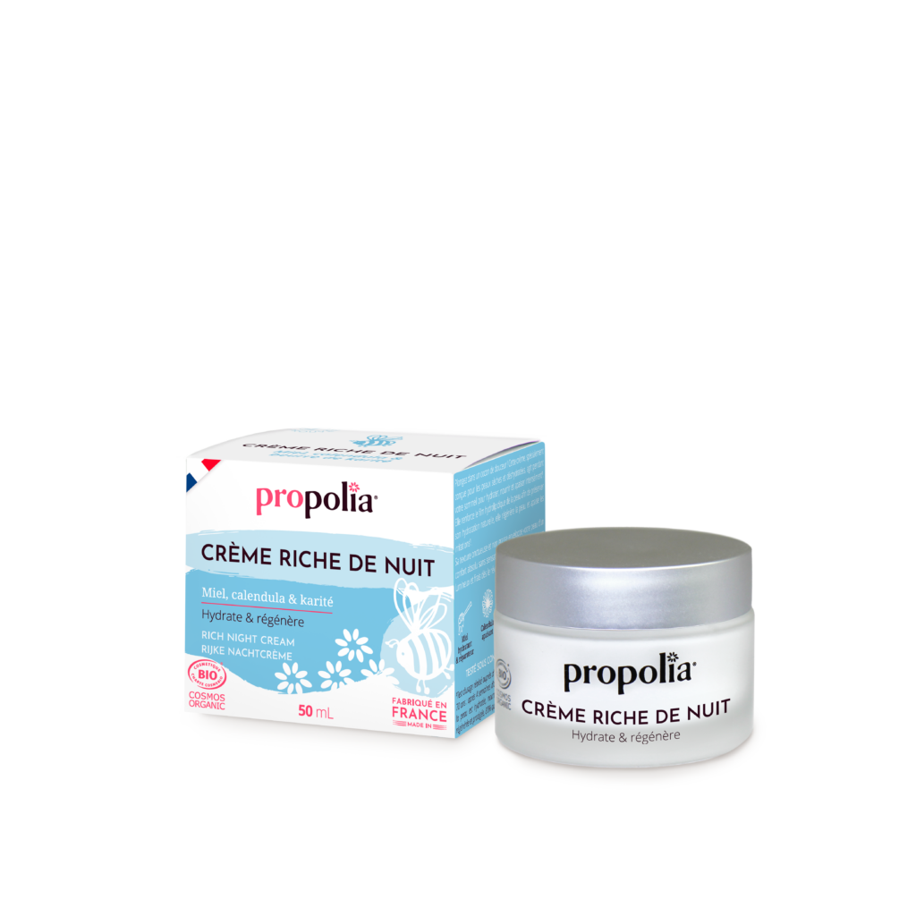 Le cycle nocturne et la protection du film La nuit devient le théâtre d’une restauration fonctionnelle. La Crème Riche de Nuit de la Maison Propolia s’articule autour d’une synergie de miel, calendula et beurre de karité pour renforcer le film hydrolipidique. L’utilisation de la mélisse et du babassu souligne une volonté de protection cutanée plutôt que de simple hydratation de surface.