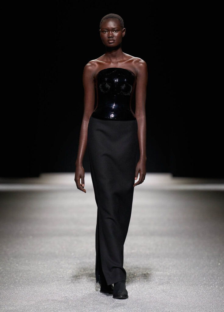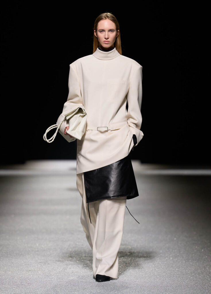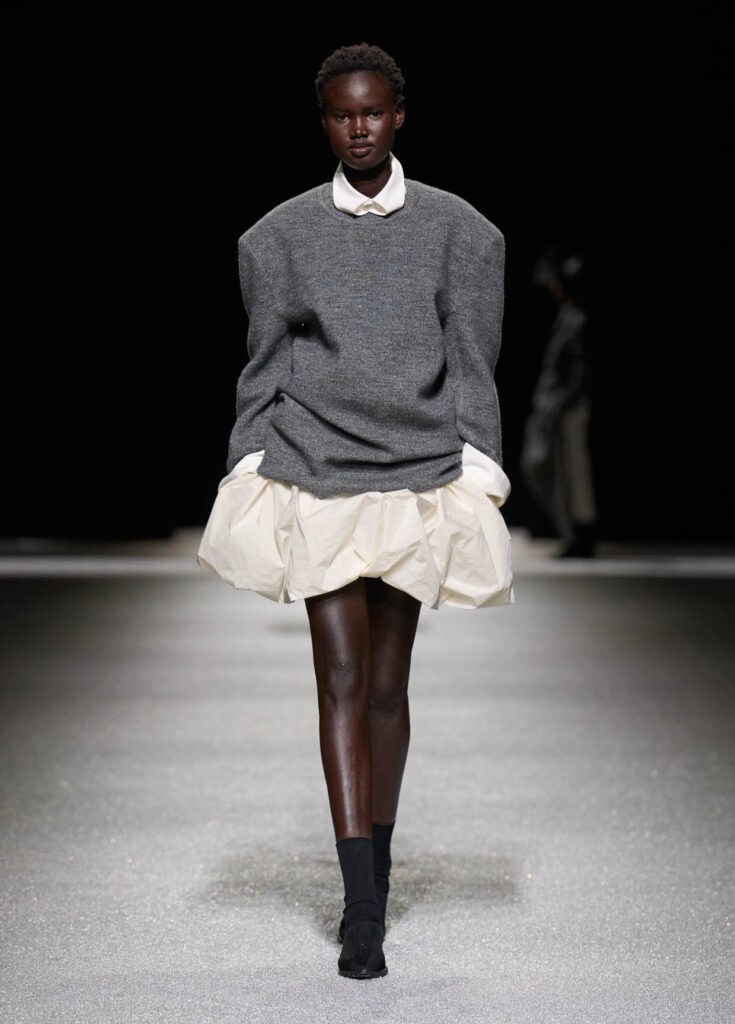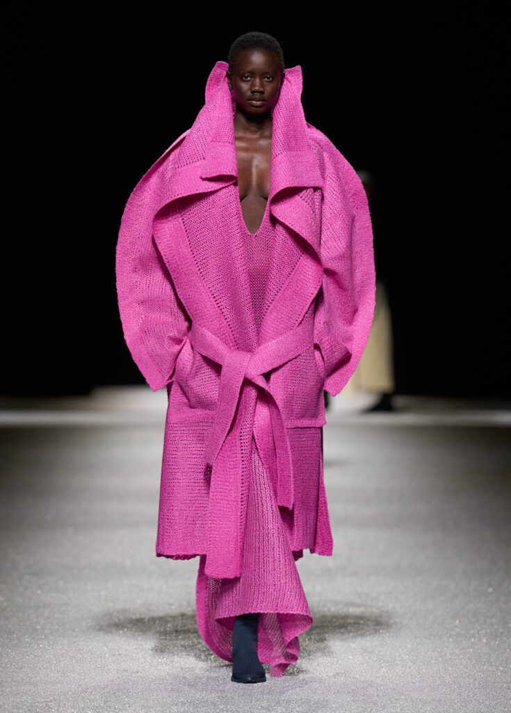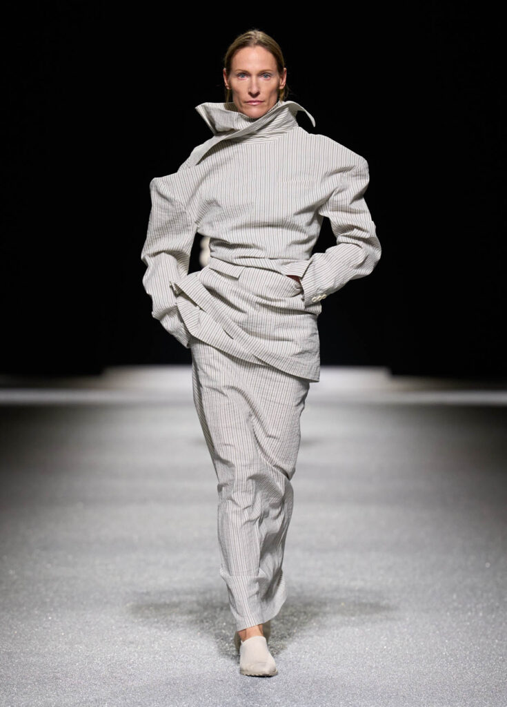 Dans chaque cas, la collection tient sa promesse conceptuelle par la matière, pas par le discours. Le « laisser advenir » dont parle le titre n’est pas une métaphore : c’est un déséquilibre de trame calculé, c’est une étoffe maintenue brute, c’est un zip comme seule intervention sur un tube de tissu qui se drapera seul au contact du corps.