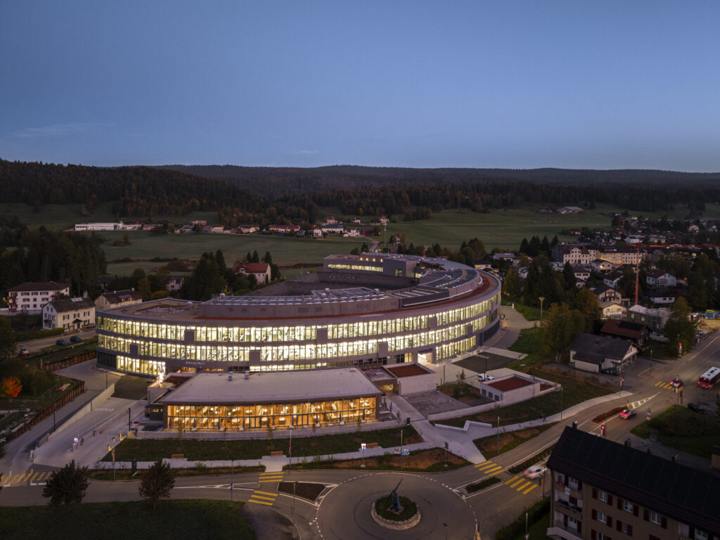 La vallée de Joux n’a pas produit de grandes manufactures en construisant de grands bâtiments. Elle les a produites en faisant circuler la matière entre de petits ateliers : l’Établissage, système hérité du XVIIIe siècle, distribuait la fabrication des composants horlogers entre des spécialistes indépendants que l’établisseur collectait pour assembler la montre finale. Audemars Piguet est née dans cette logique en 1875, et s’y est développée pendant un siècle et demi. La décision d’ériger un bâtiment unique — l’Arc, conçu par de Giuli & Portier architectes, construit par l’Entreprise Totale Alpenda en trois ans après l’obtention du permis en 2019 — n’est donc pas anodine. C’est un choix de civilisation industrielle autant qu’un choix immobilier.