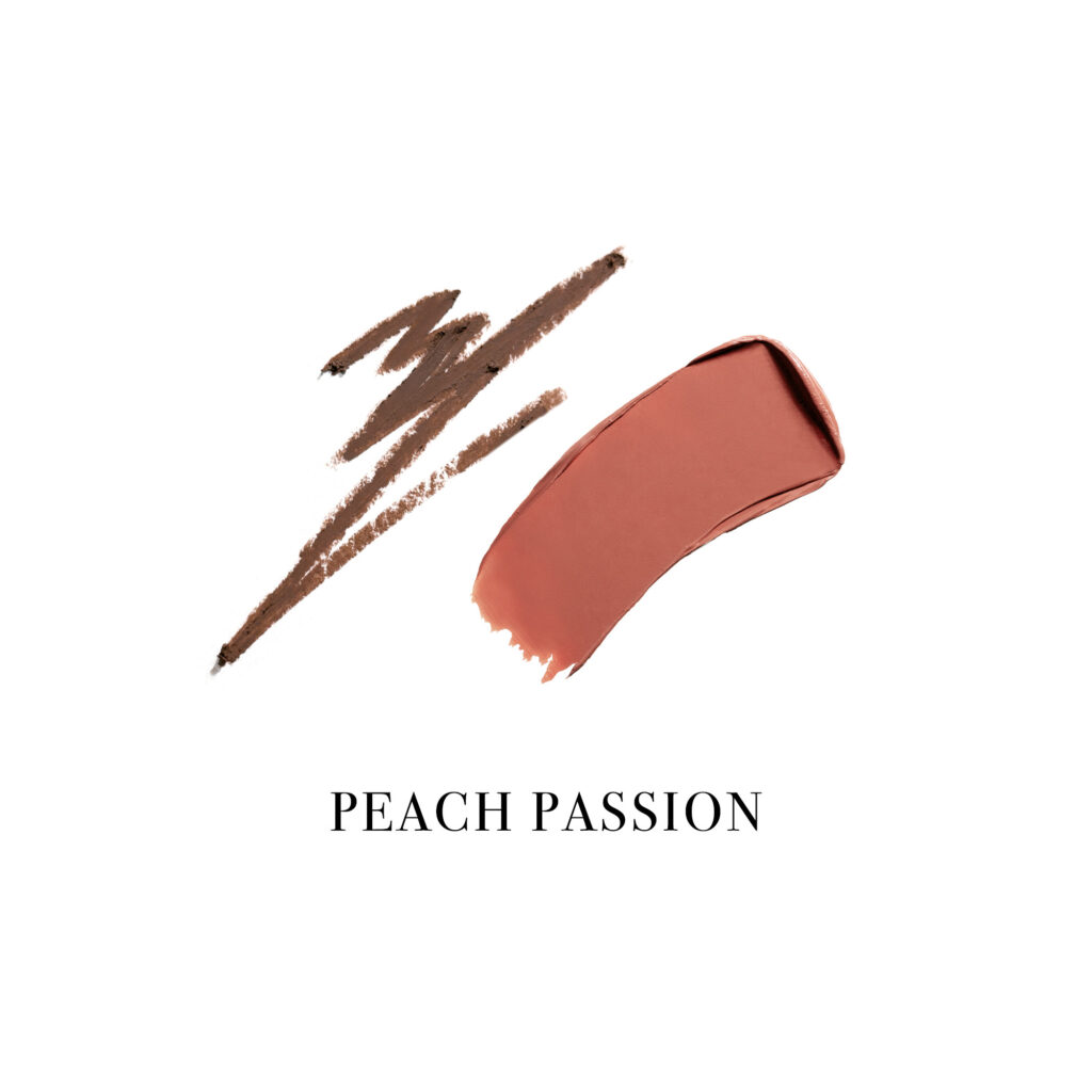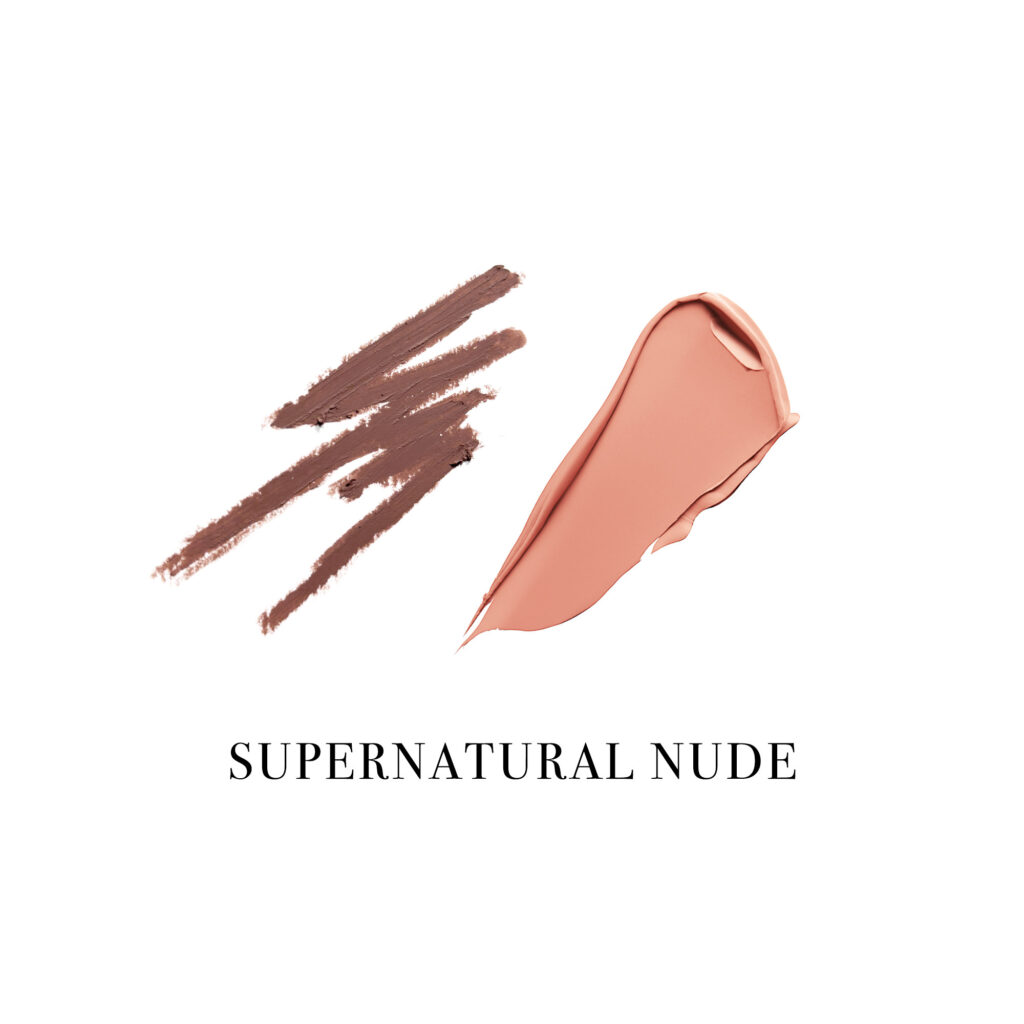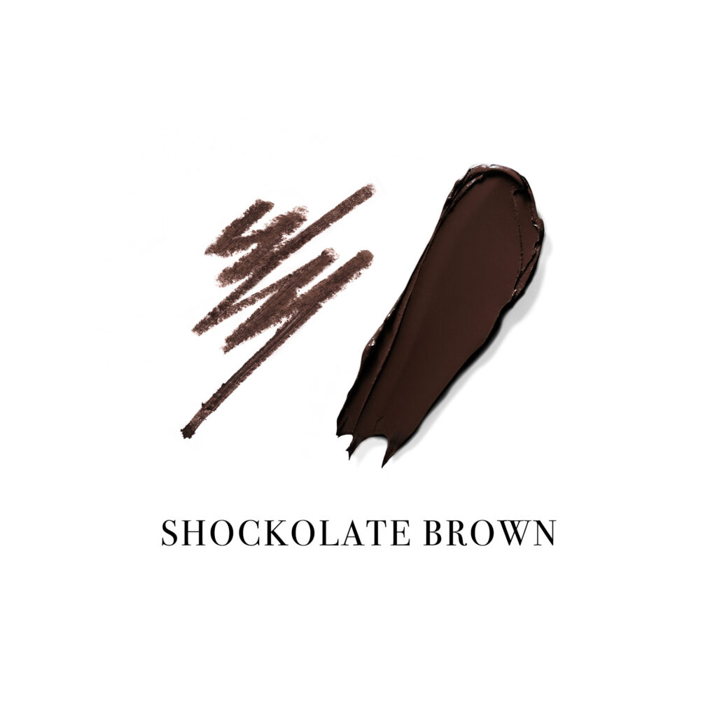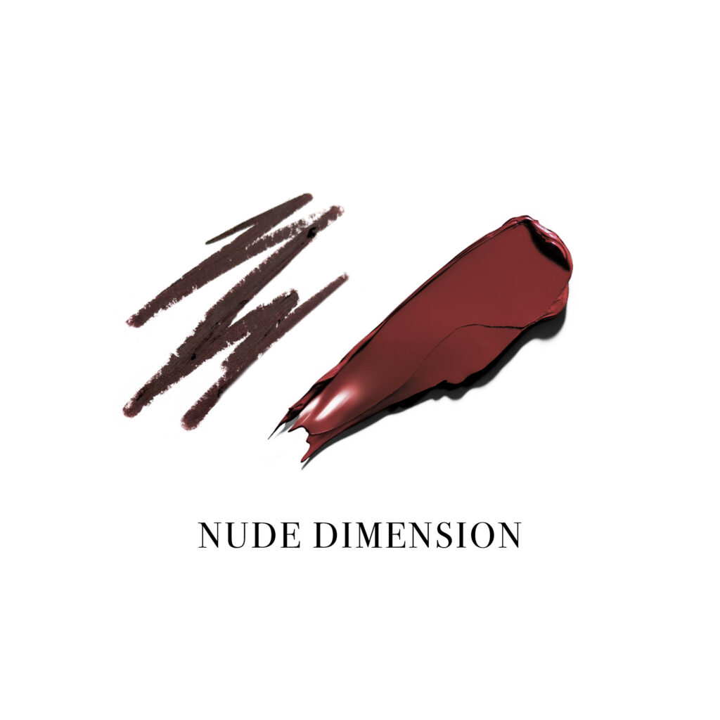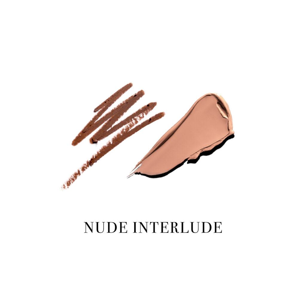Le duo se décline en douze teintes, de Nude Interlude (rose pâle/pêche nude) à Noir Obsession (prune noire profonde), en passant par Divine Rose, Elson ou Shockolate Brown . Chaque référence associe un crayon de 0,25 g à un rouge de 1 g . Les poids sont modestes, presque techniques. Ils rappellent que le maquillage professionnel se joue dans la précision, non dans la profusion.