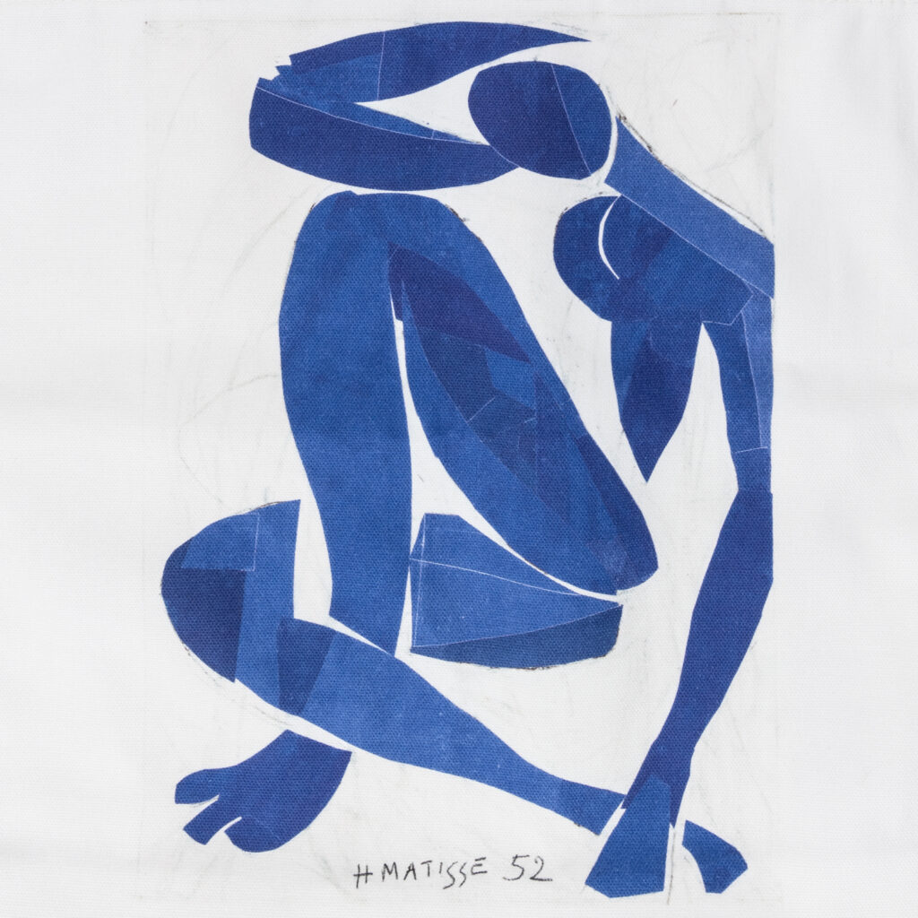 La période choisie n’est pas neutre. À plus de quatre-vingts ans, Matisse abandonne en partie la peinture pour travailler la gouache découpée. Le geste devient direct : couleur appliquée, forme découpée, composition assemblée. C’est précisément cette économie de moyens qui rend aujourd’hui son œuvre facilement transposable.