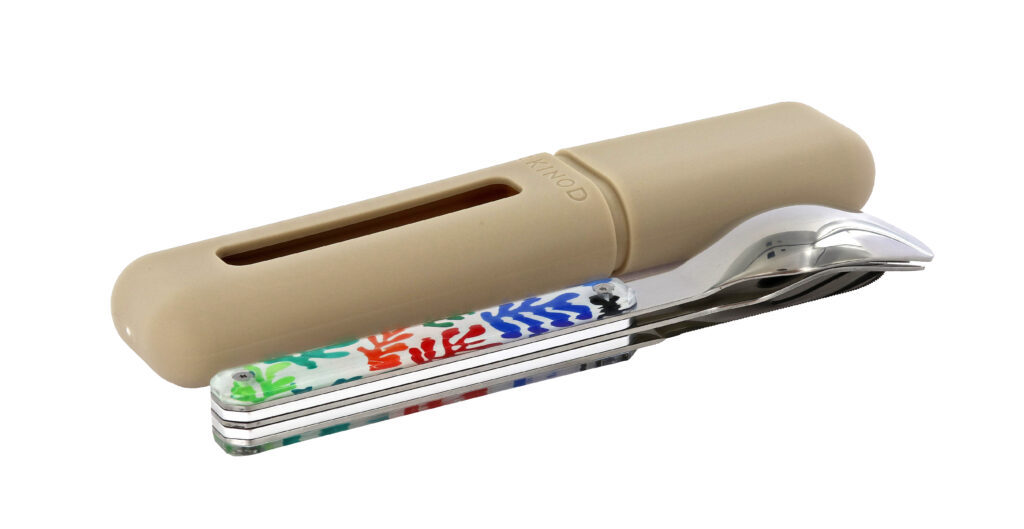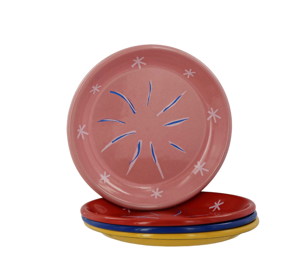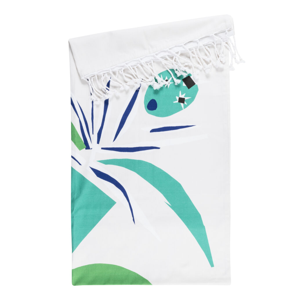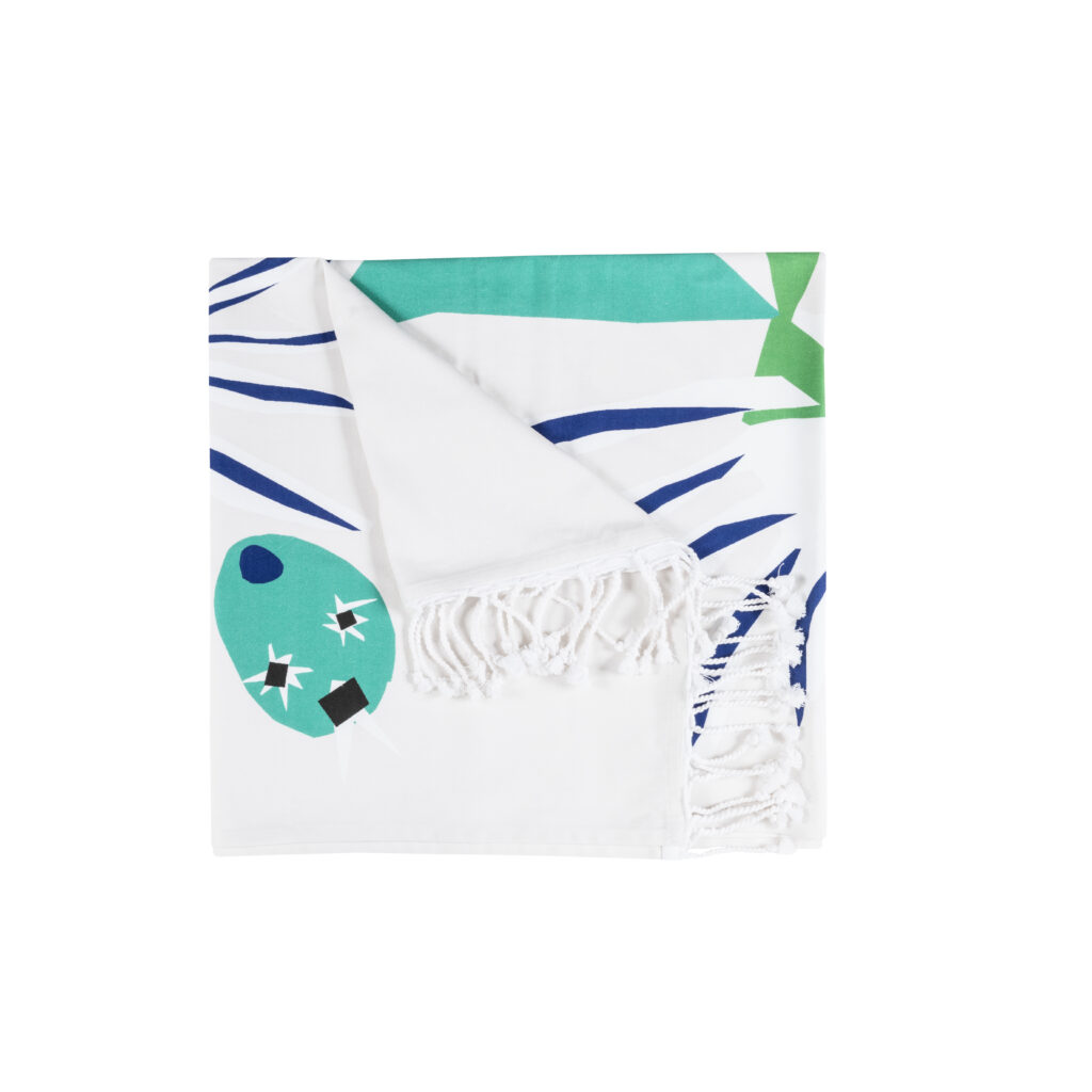 La collaboration avec la Maison Matisse introduit une dimension différente. Inspirée de La Danseuse créole, la collection Nomade s’inscrit dans un registre d’usage : assiettes émaillées, couverts aimantés, fouta, éventail.