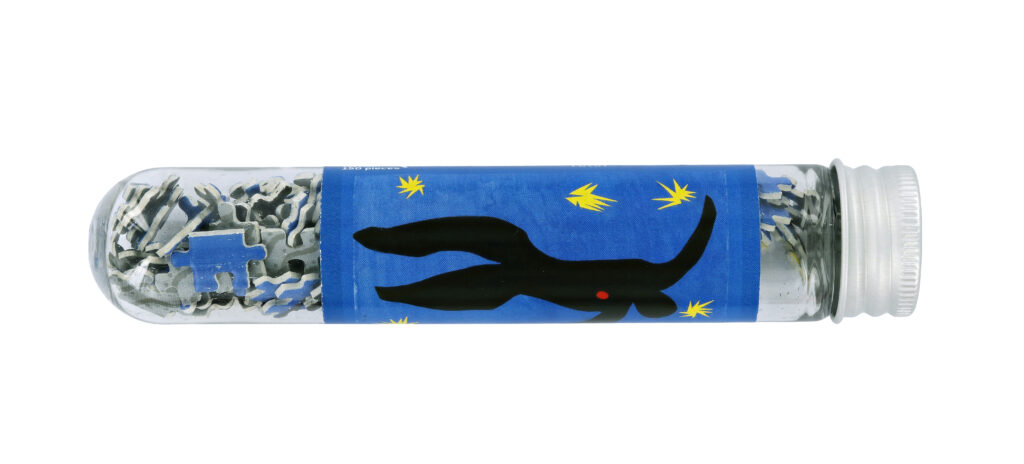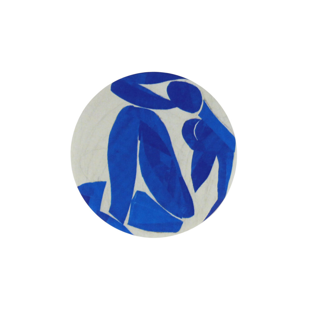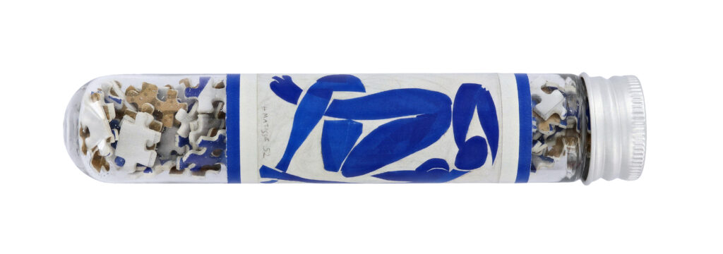 La collection Nu bleu s’appuie sur une figure réduite à son contour et à sa masse colorée. Sur un micro-puzzle ou un badge, cette simplification fonctionne presque sans perte. L’image supporte le changement d’échelle. Elle reste lisible, même fragmentée.