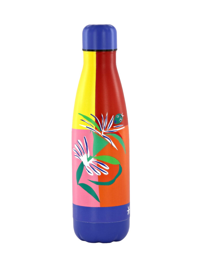 La question n’est plus la fidélité à l’œuvre, mais la gestion de la couleur sur un support mobile. Le textile absorbe, la gourde réfléchit, le papier imprime. Chaque matériau modifie la perception des aplats.