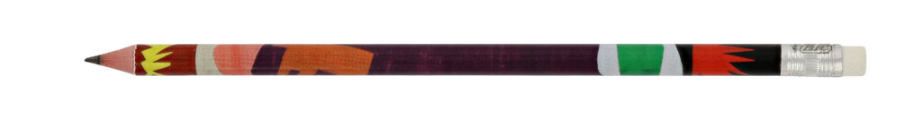 Les formes contrastées et dynamiques s’adaptent particulièrement bien aux objets graphiques. Ici, le passage est presque naturel : de la page au support.