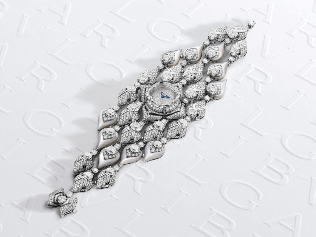 Bvlgari Montres présente Magnifica, une nouvelle collection de haute horlogerie. La beauté, le savoir-faire et l’inspiration aboutissent dans des œuvres d’art qui reflètent la maîtrise de Bvlgari dans la recherche et l’utilisation des pierres les plus précieuses et les plus rares au monde. Dirigés par Fabrizio Buonamassa, directeur exécutif de Bvlgari Product Creation , ils explorent des solutions innovantes et transforment les inspirations d’une variété de mondes différents en idées passionnantes. Cette maîtrise s’exprime à travers le savoir-faire inégalé des artisans de la maison qui s’appuient également sur l’expertise suisse en s’associant avec la Maison basée à Rome pour proposer quatre « montres secrètes » offrant le reflet du style emblématique des montres Bvlgari.