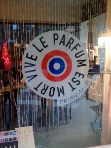 Photo0989_modified-1Perfume is dead, long live perfume! Is this the new slogan of the Queen of Hearts? Well no … unless the Queen has taken up residence in a store in the Parisian Marais at the corner of rue Pastournelle and rue des Archives! This small store on the corner is in fact a perfumery advocating olfactory libertinage, insubordination and olfactory eroticism.