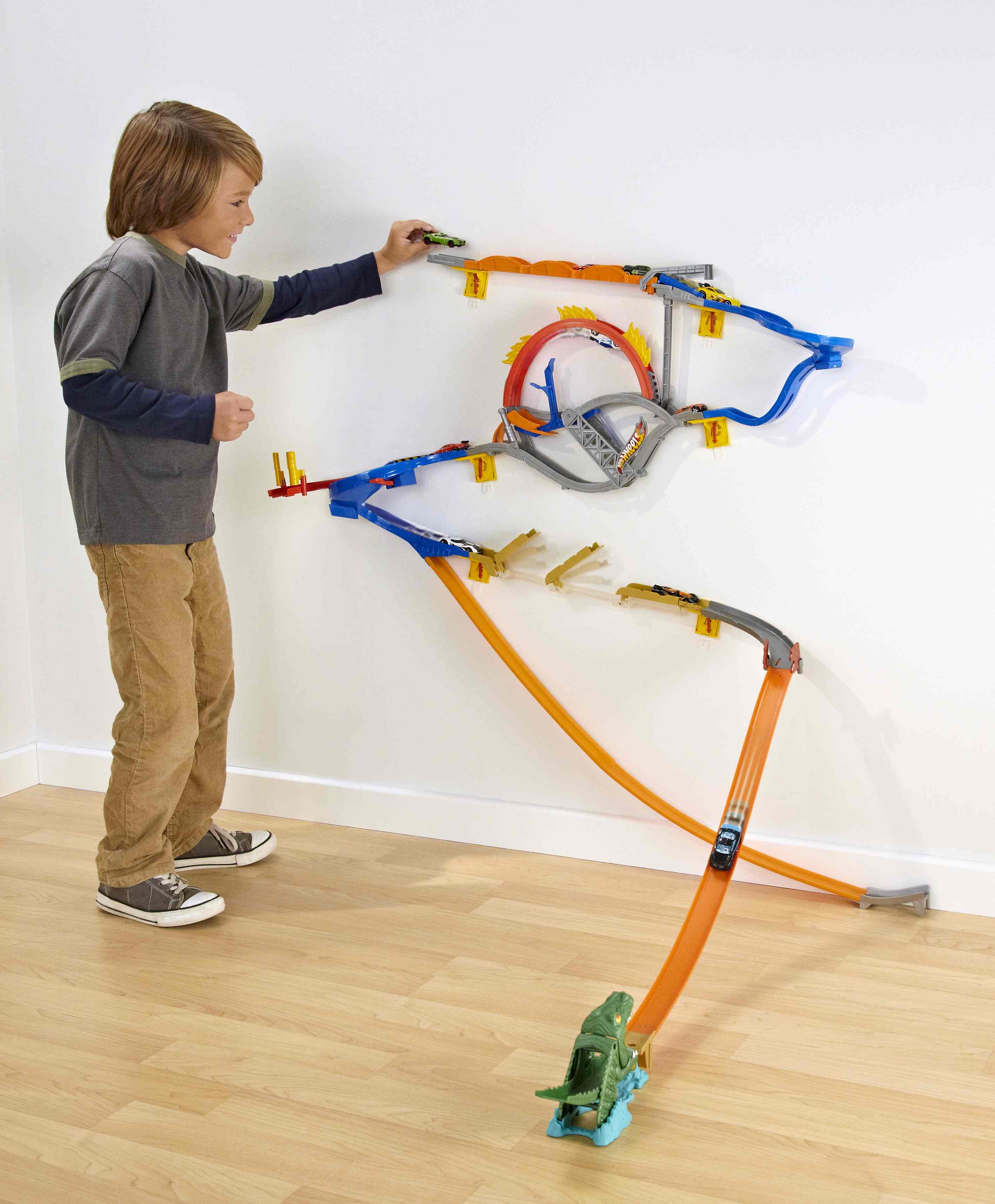 The toy’s creators have made sure that Wall Tracks won’t damage walls, thanks to a system of repositionable adhesives supplied with the game.