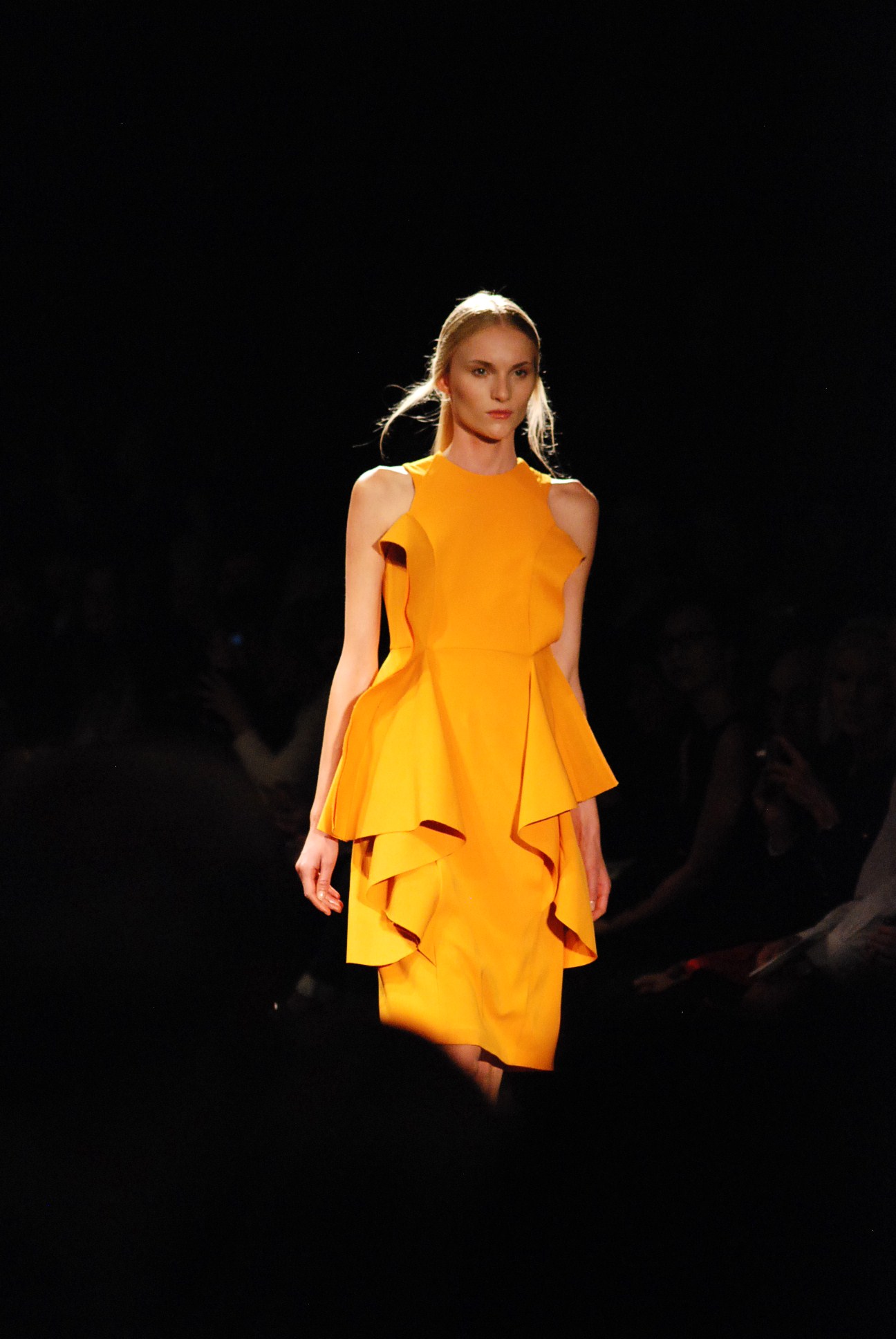 Her Spring Summer 2013 collection mentioned the influence of Charlotte Bronte in her famous novel Jane Eyre. This inspiration, more apparent in the hairstyles and buttons on the dresses than in the overall very modern silhouettes, provided a bridge between absolute modernity and influences from the past.