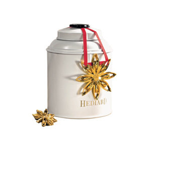 A marriage of black teas from China, India and Sri Lanka, lightly flavored with notes of vanilla, star anise and tangerine. Pieces of star anise, vanilla pods, orange peel and cornflower and marigold petals enrich this exclusive Hédiard blend.