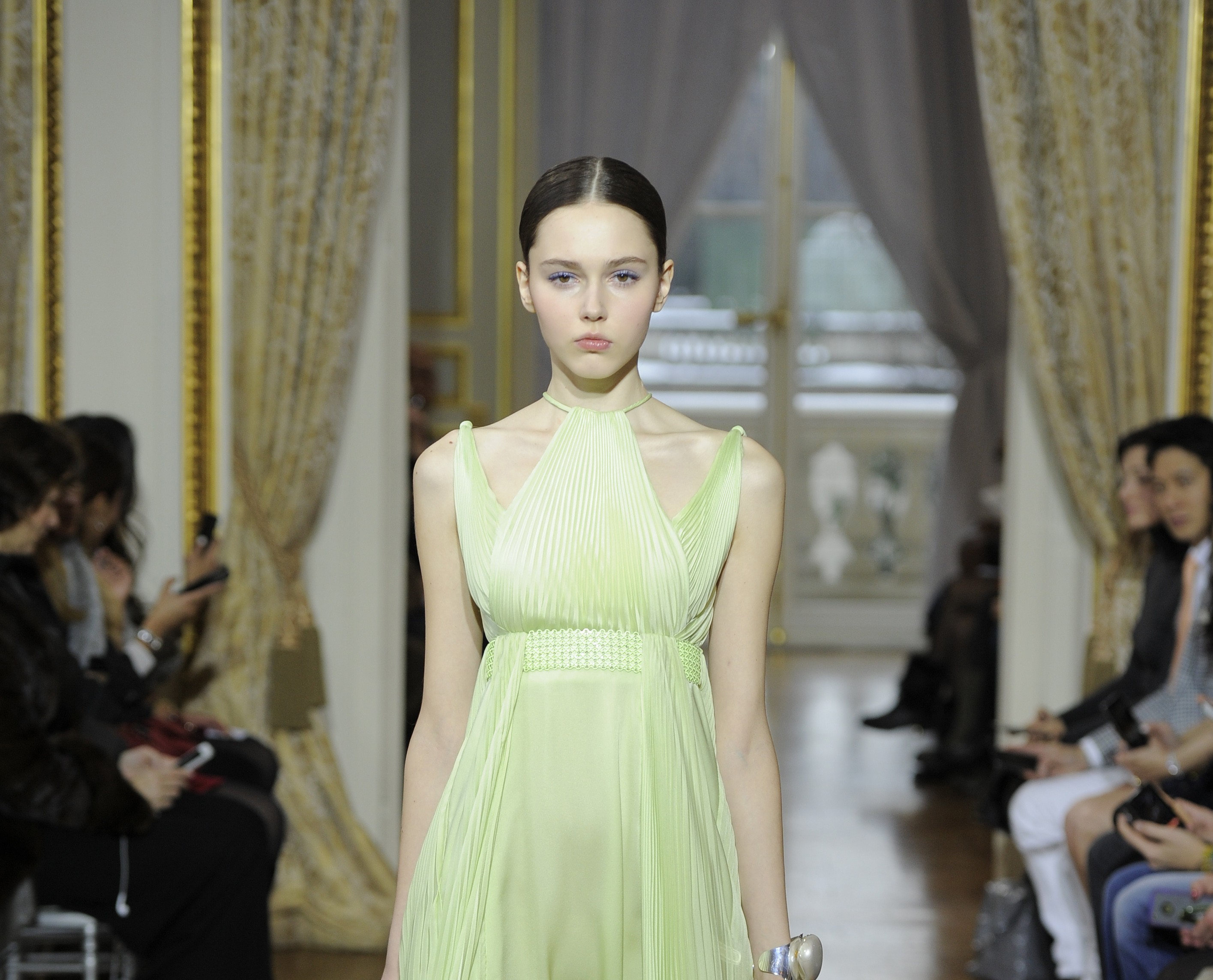 Sandals are de rigueur at Christophe Josse, with lots of lace and tulle. The way the materials accompany movement is incredible. Floral appliqués are also present on several dresses, metaphors for the young woman in bloom that the creations in this collection recall.