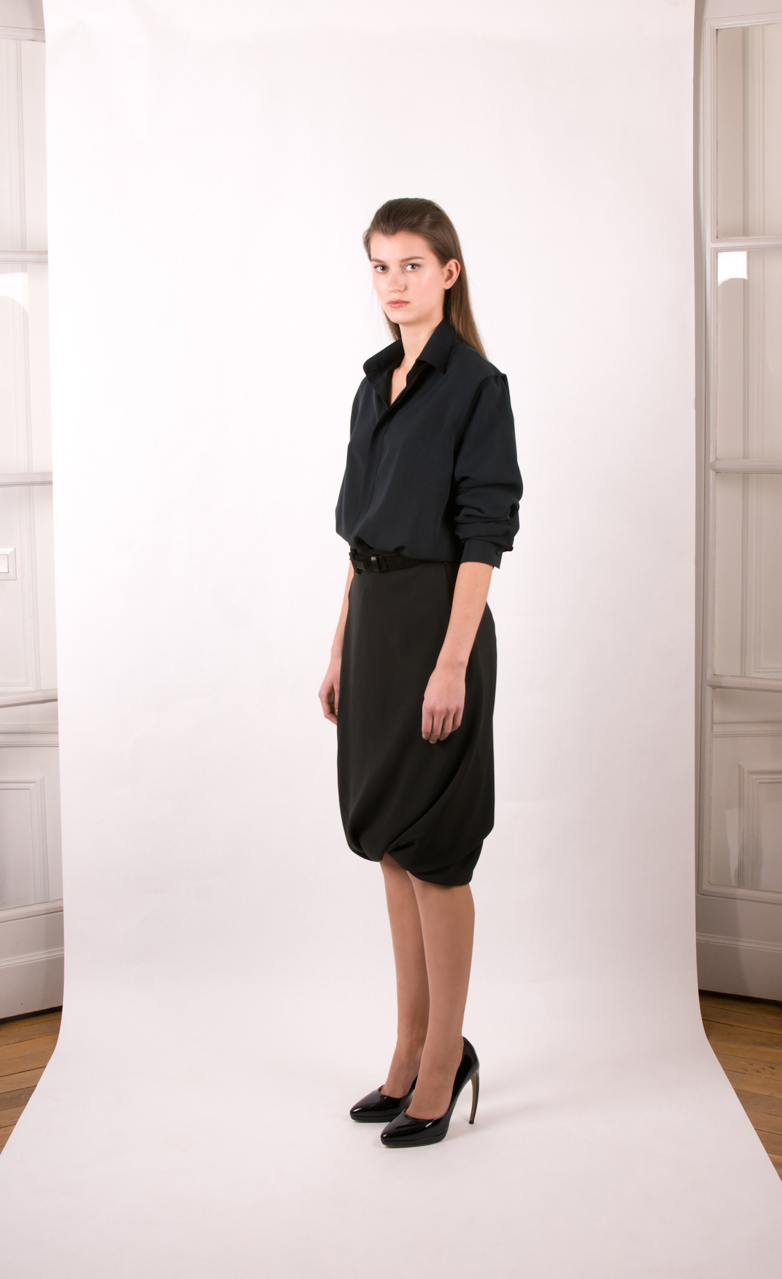For this new collection, Gustavo Lins begins a synthesis of the codes that have formed his philosophy over the seasons: kimonos and drapes, jacket sleeves with “saber” seams, twists and spirals inspired by the musculature of the human body. All her garments are designed for comfort and generous volume. To create this soft, sensual universe, Gustavo Lins carefully selects materials from traditional French and Italian Maisons: cashmeres, wools, cotton canvas, silks… Architecture is omnipresent, interpreted by the highly identified inverted “T” that has graphically marked the collections since the brand’s creation.