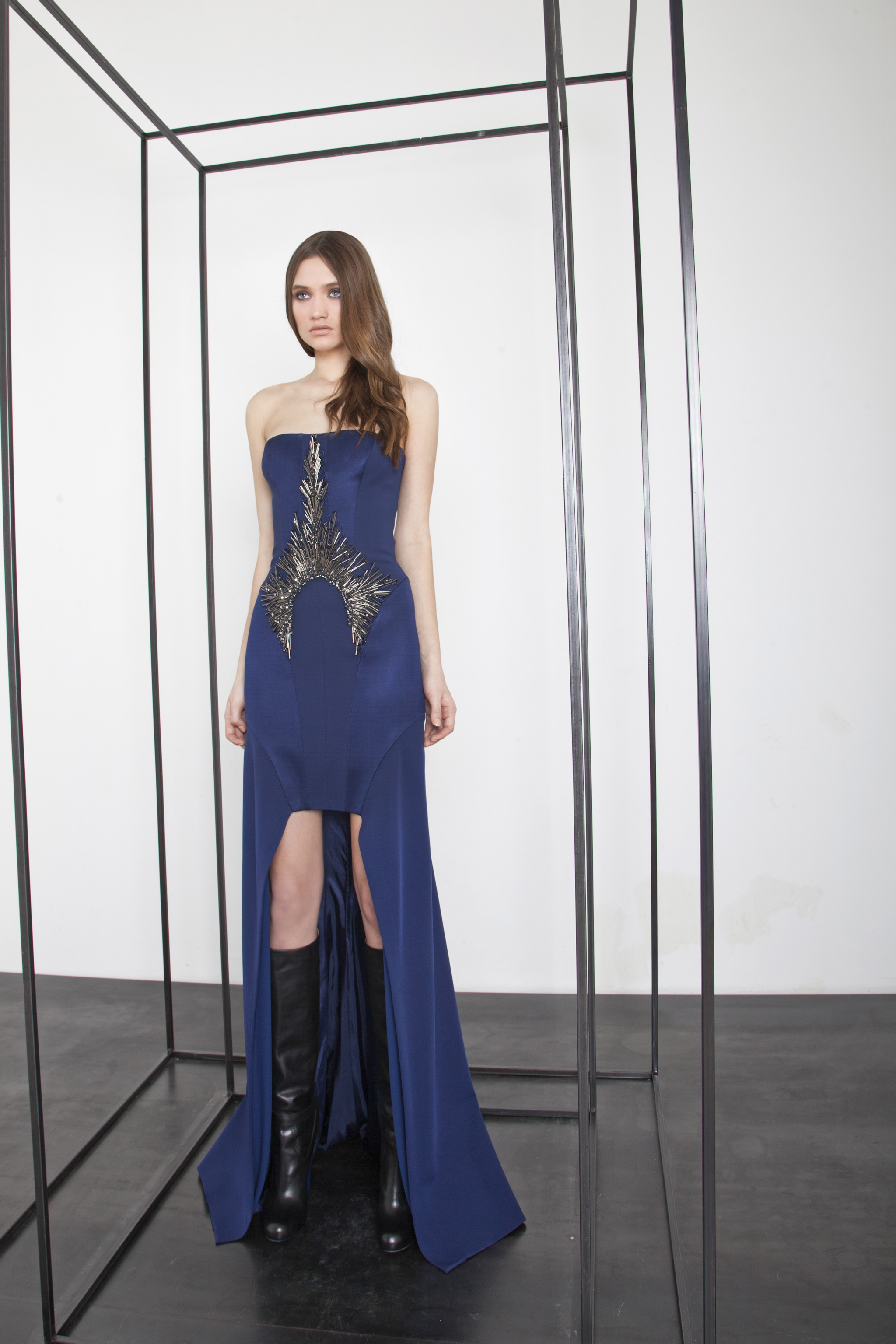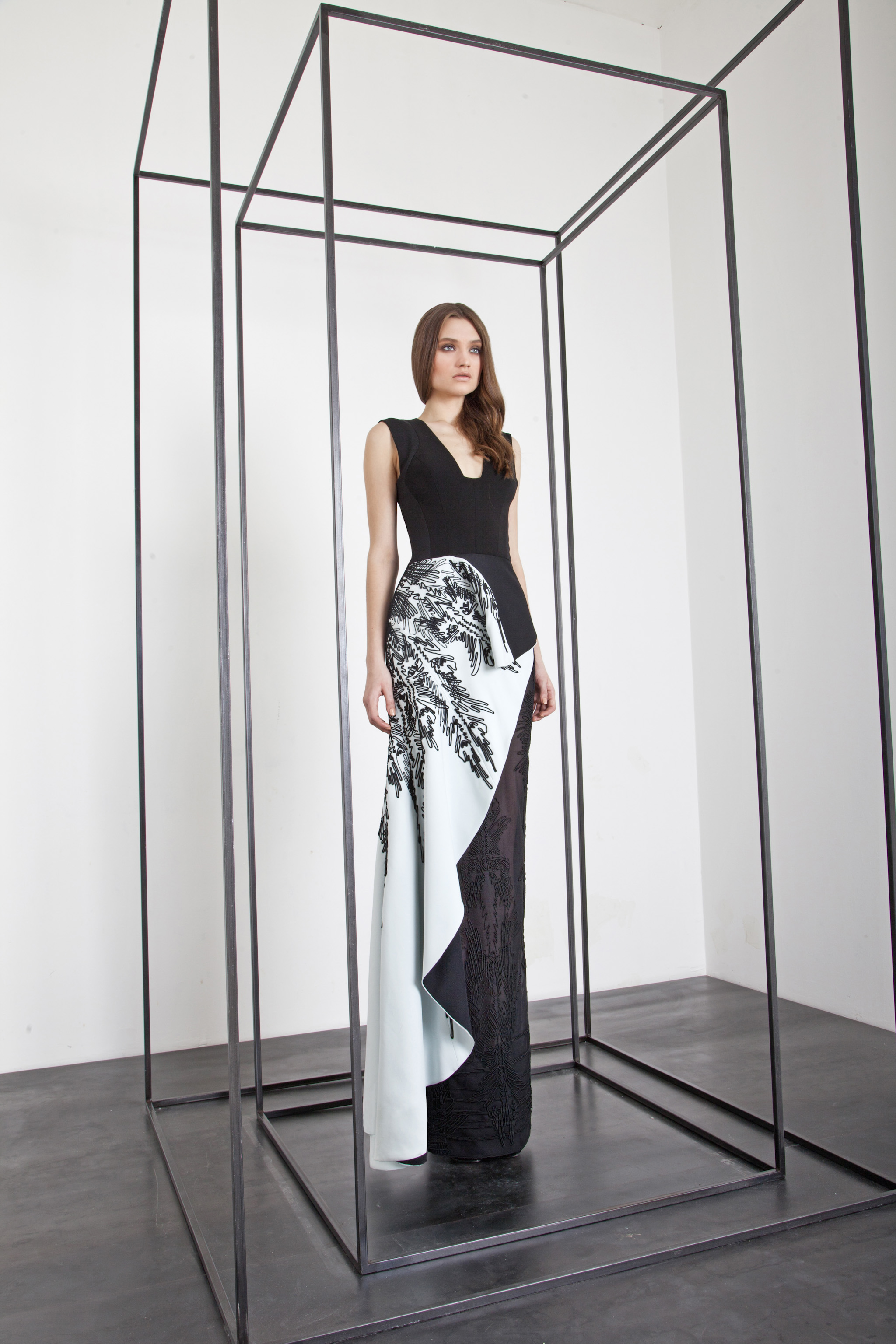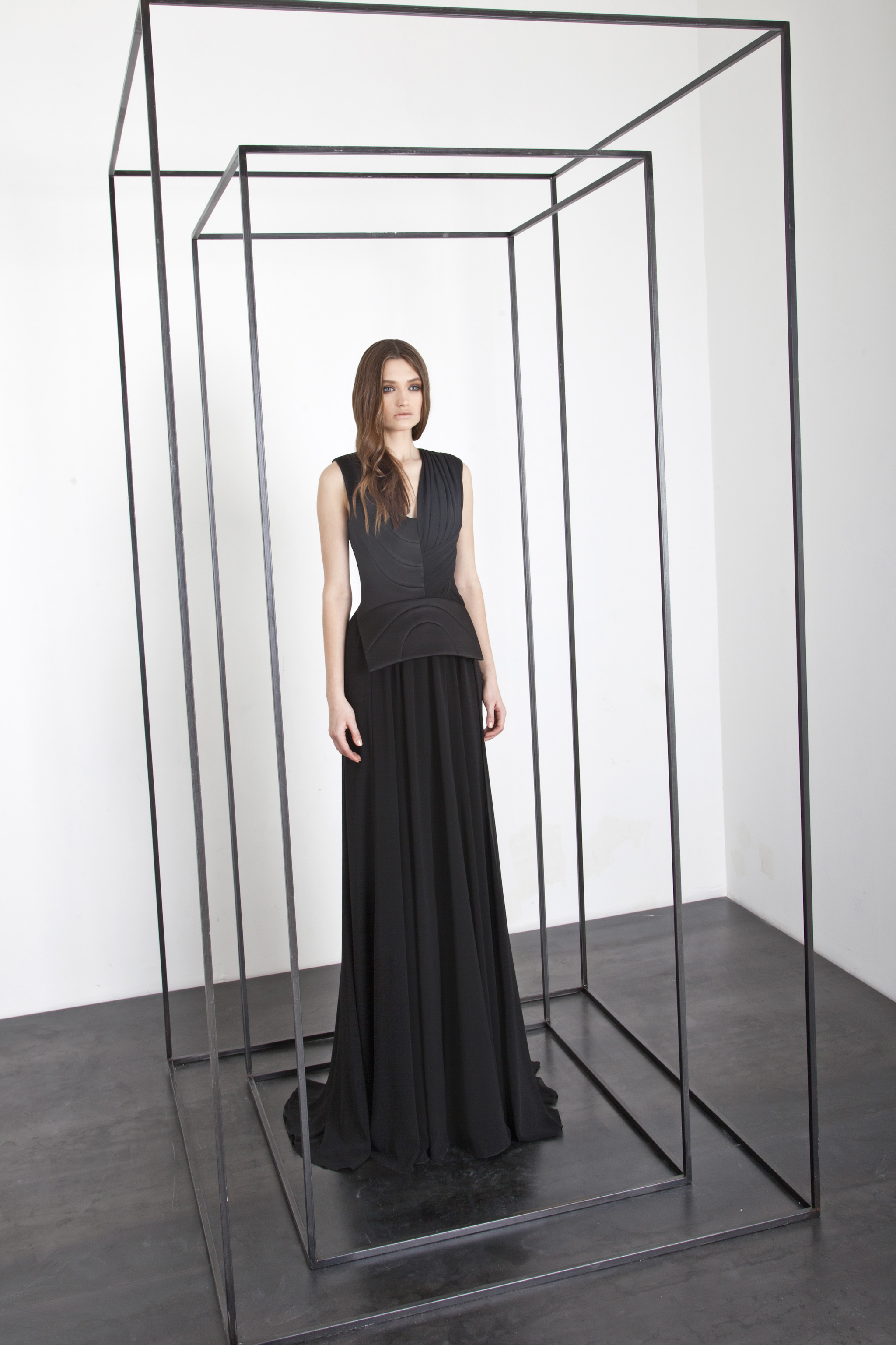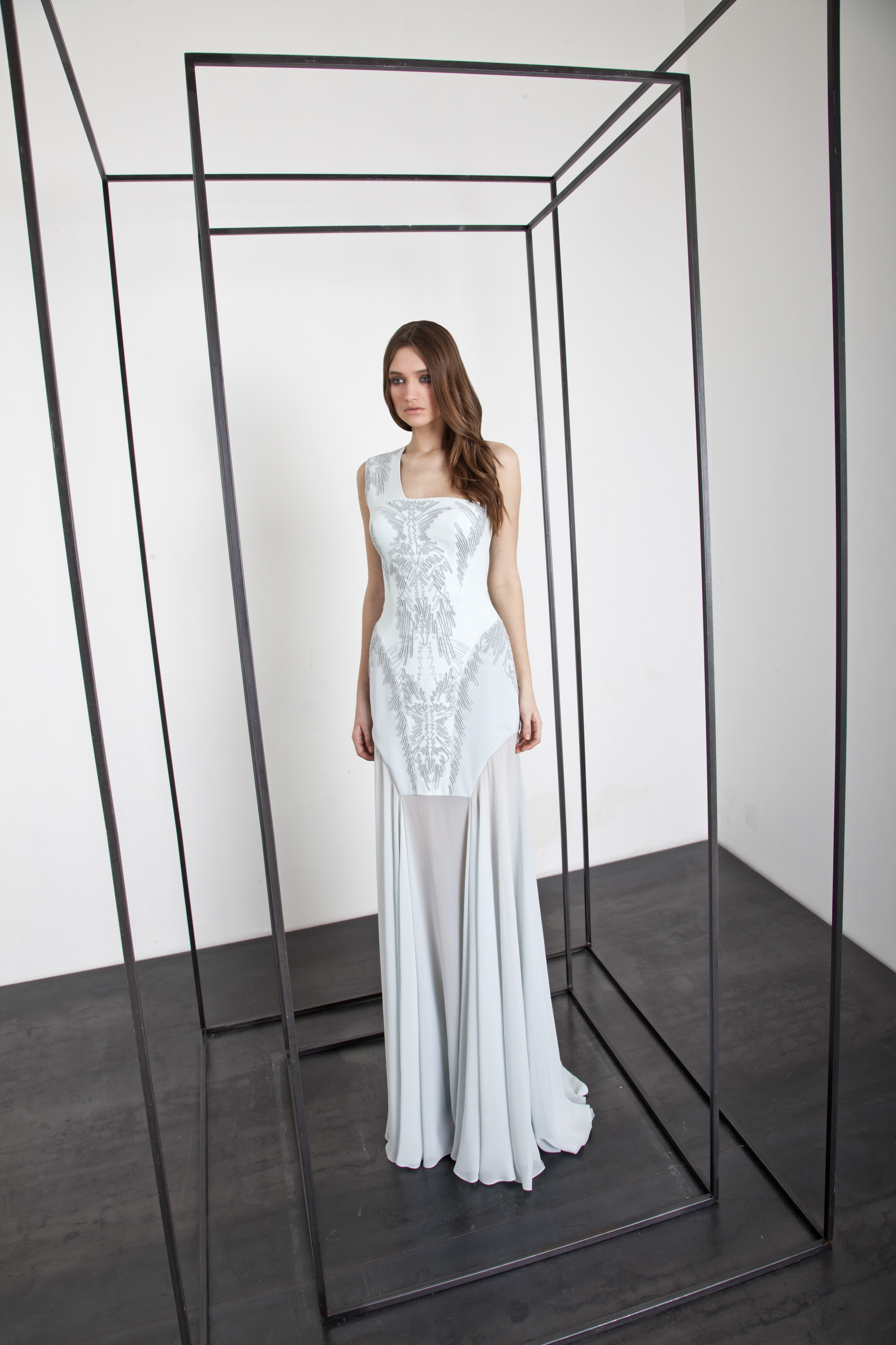 The power and brilliance of metal contrasts with the fluidity of materials. The Basil Soda woman is a modern-day Amazon.