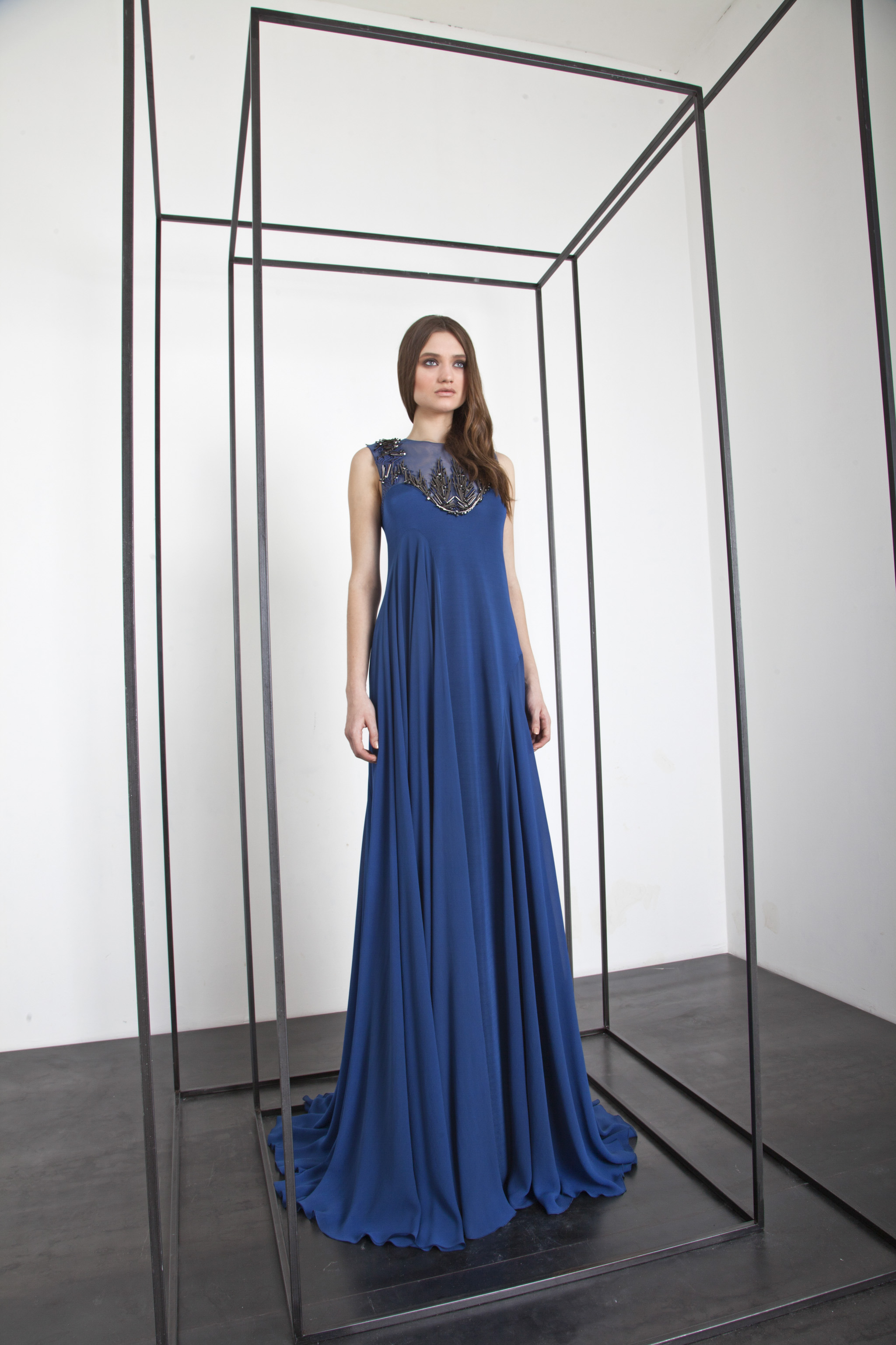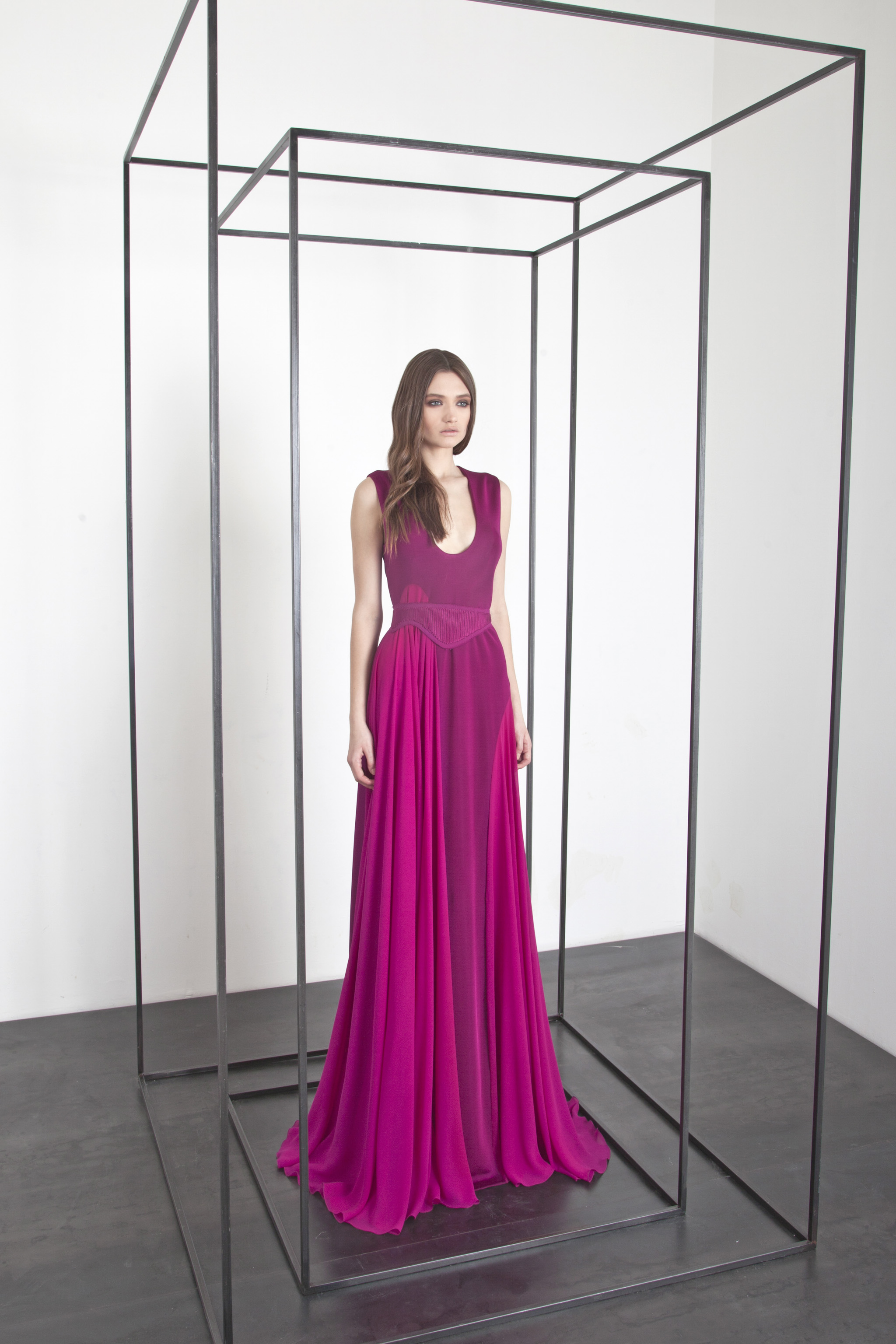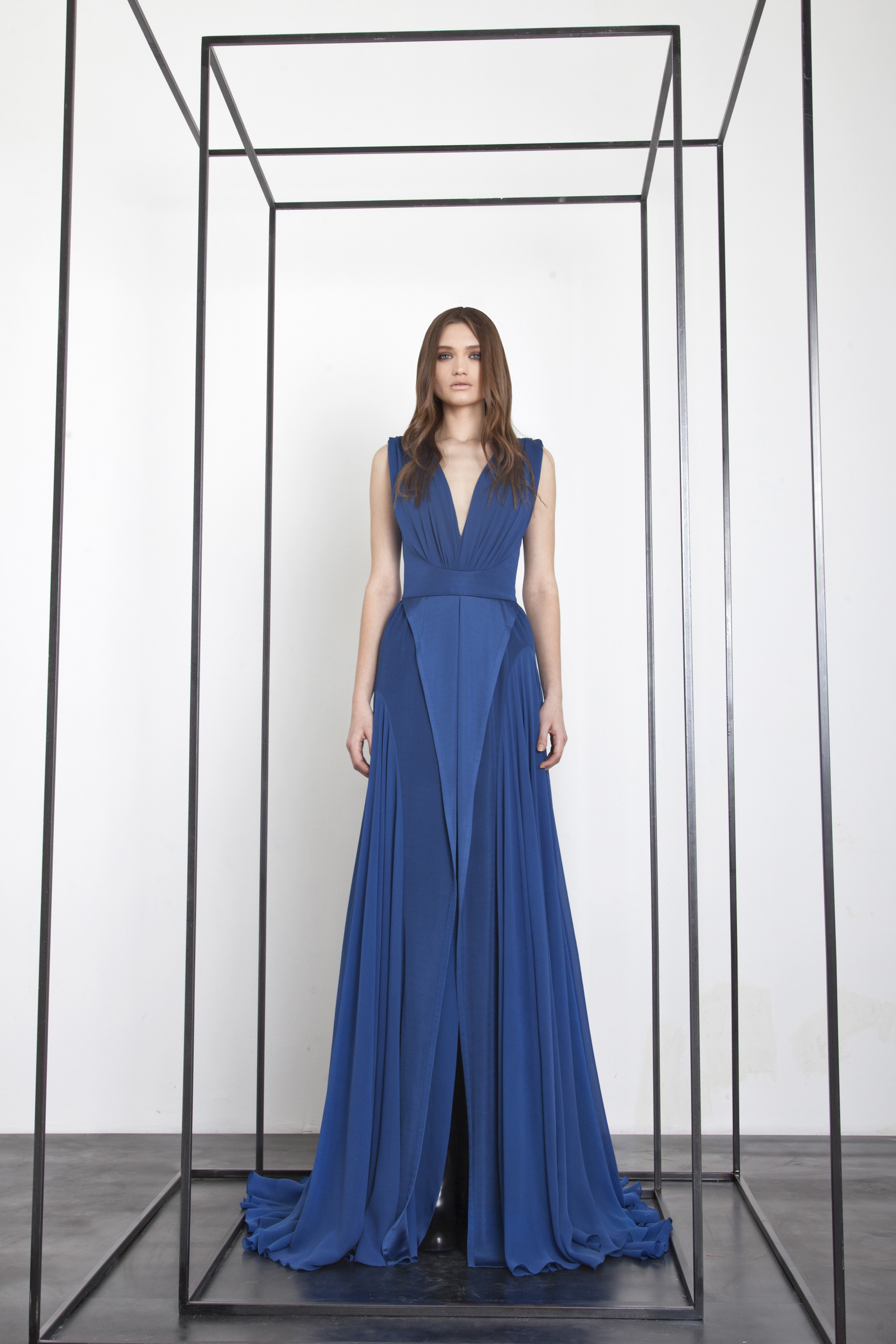 The power and brilliance of metal contrasts with the fluidity of materials. The Basil Soda woman is a modern-day Amazon.