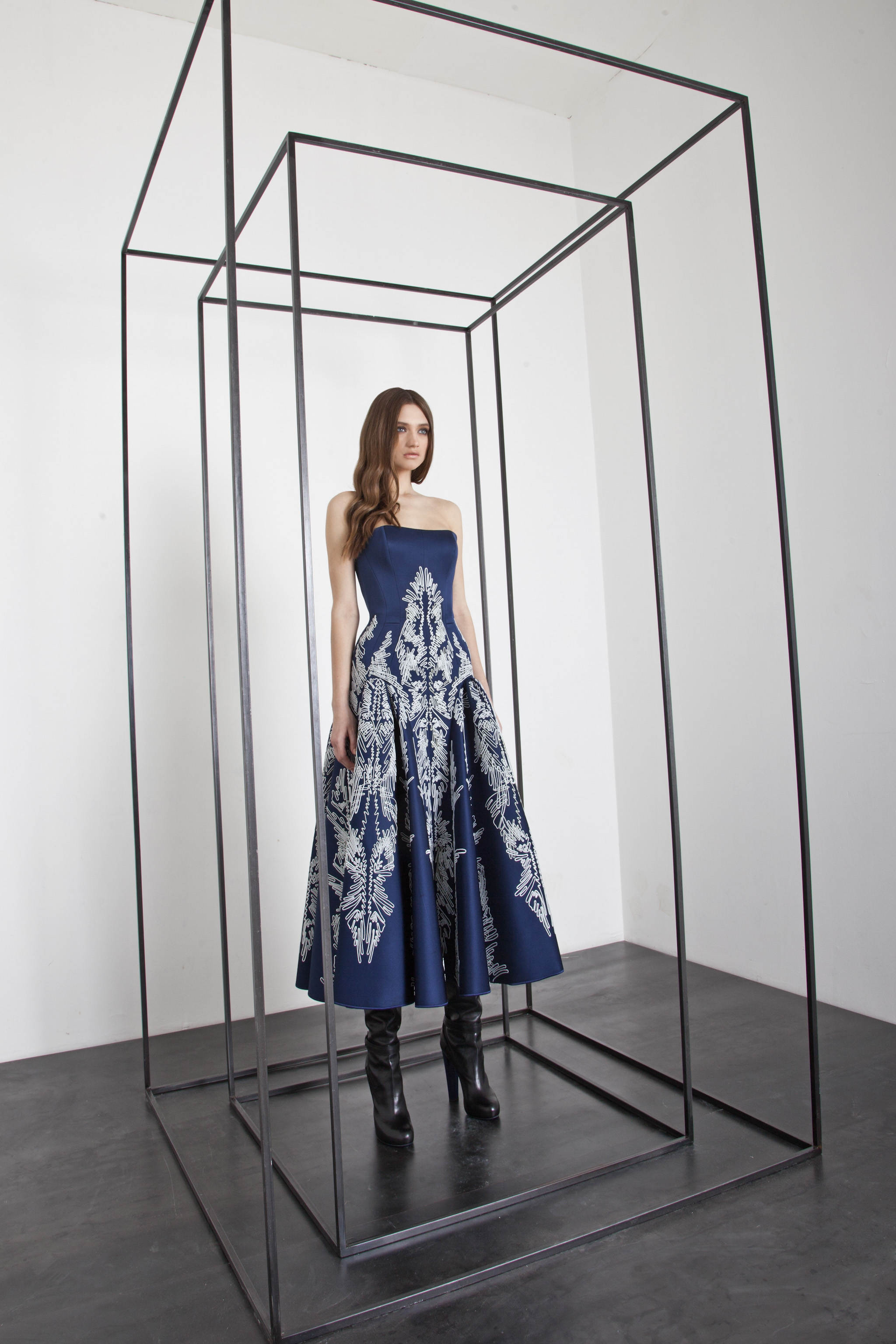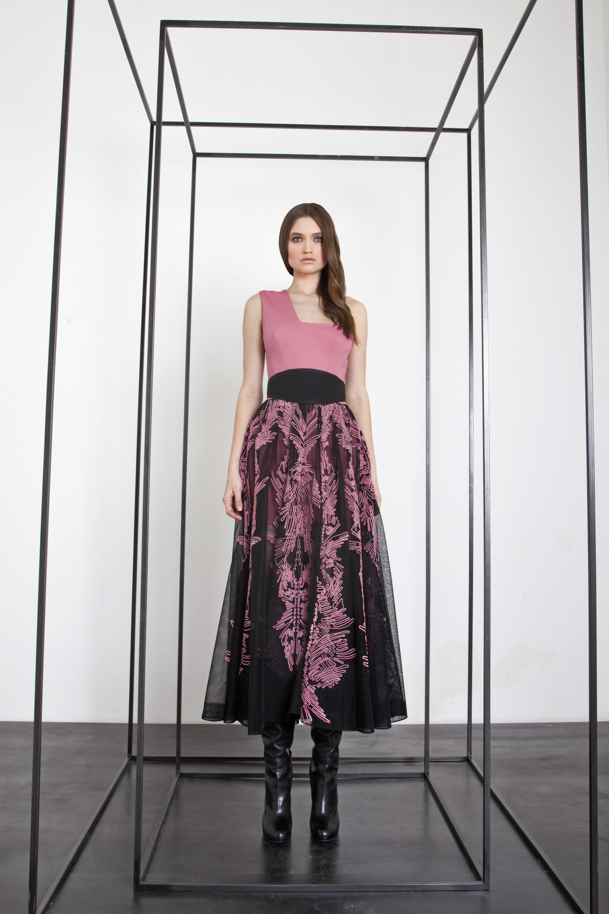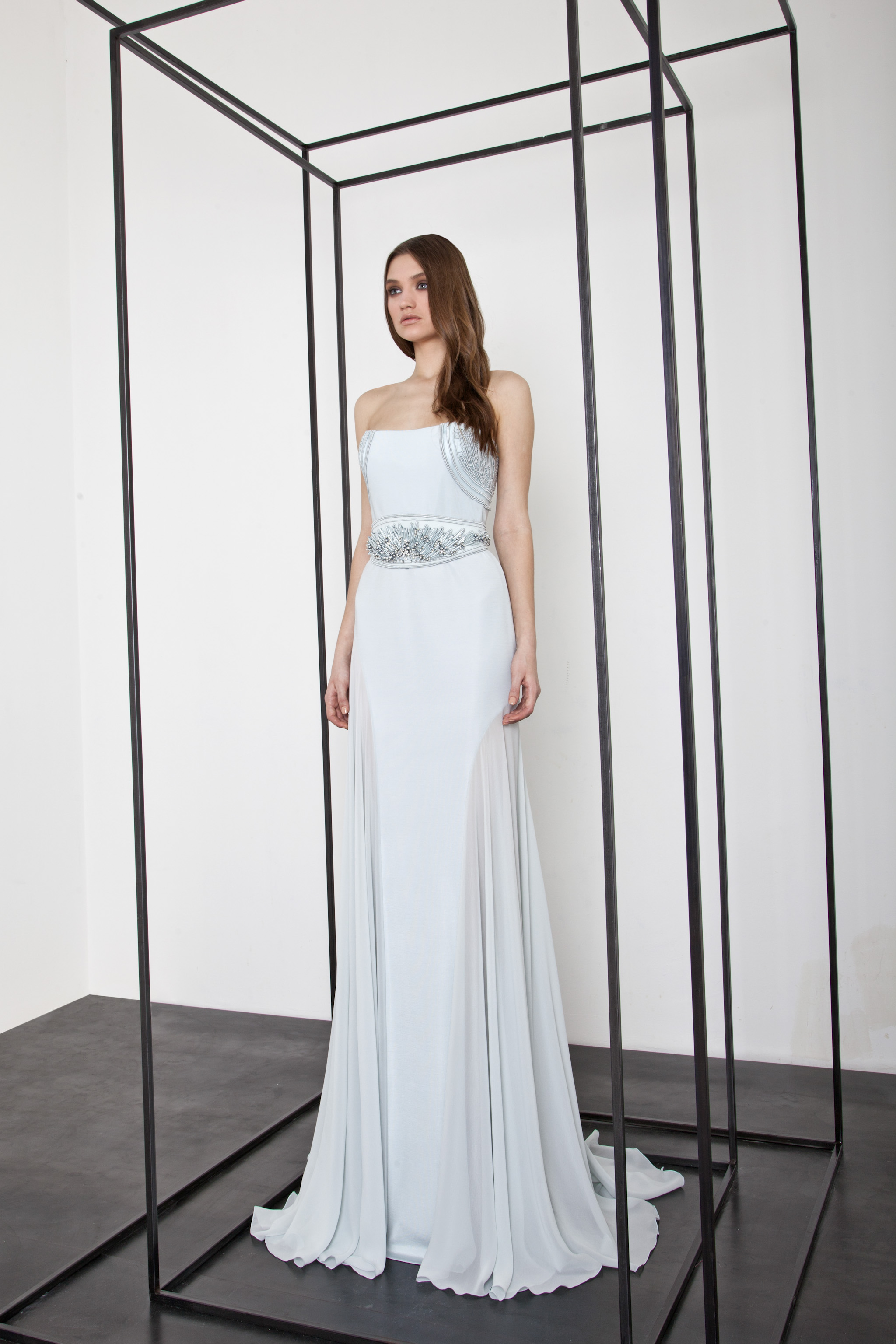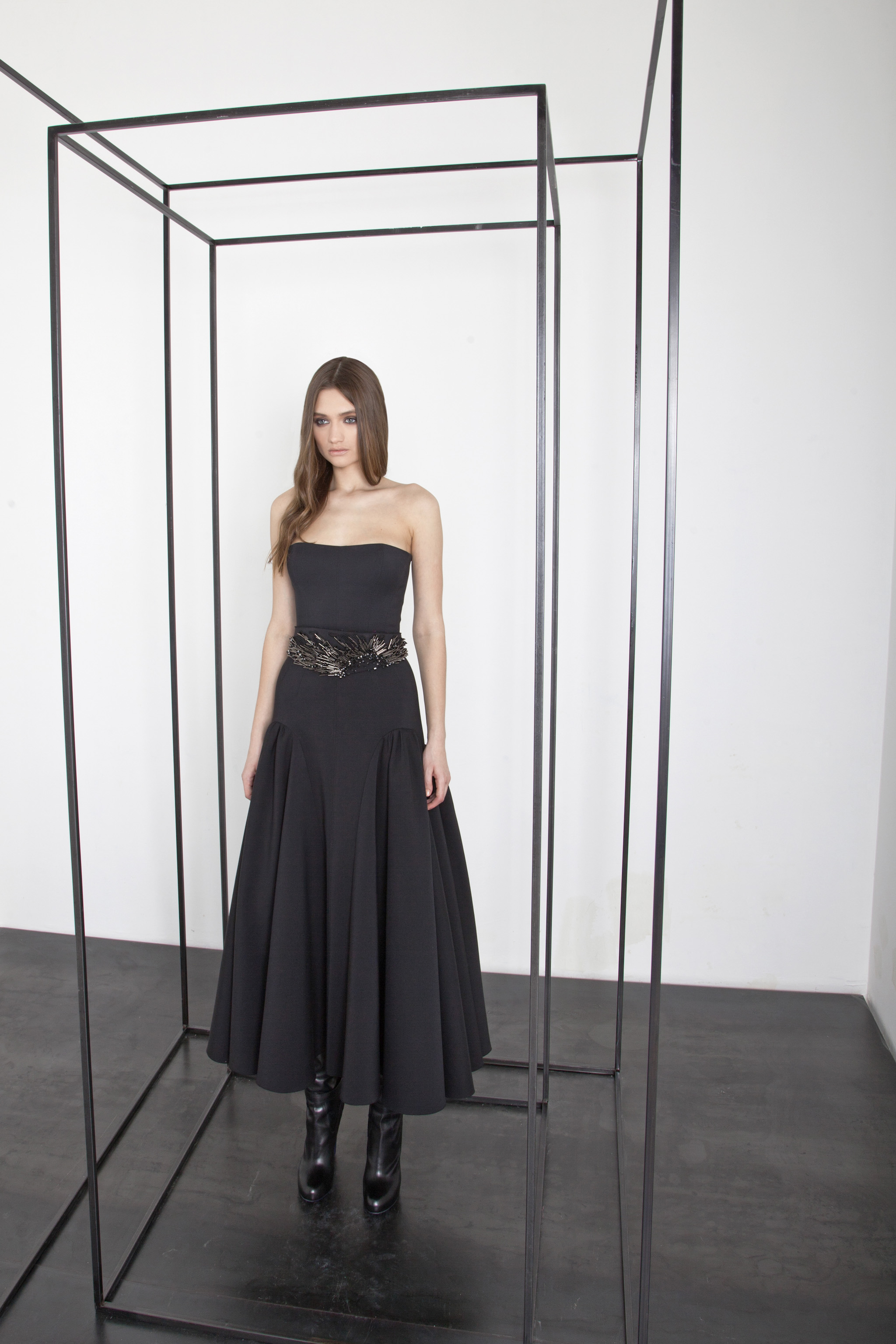 The power and brilliance of metal contrasts with the fluidity of materials. The Basil Soda woman is a modern-day Amazon.