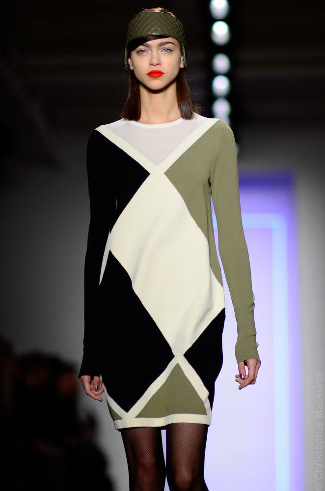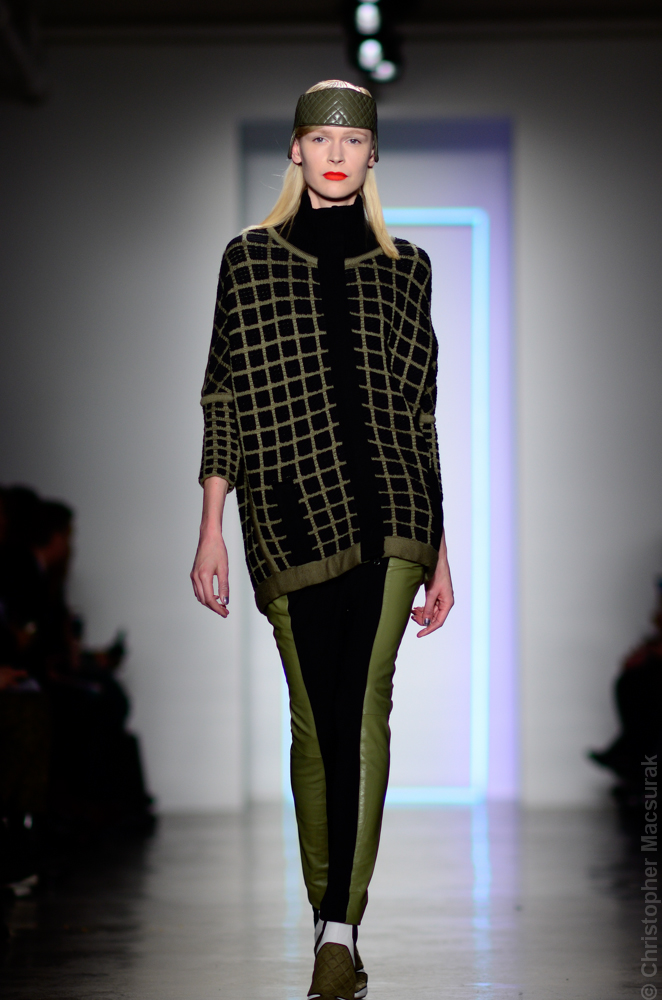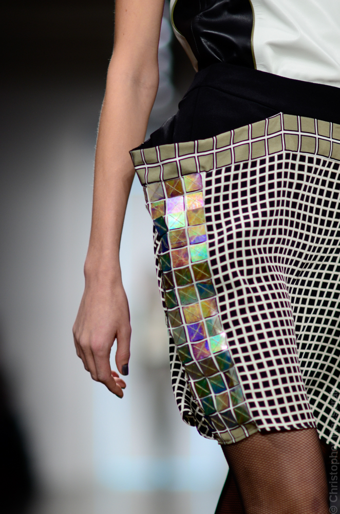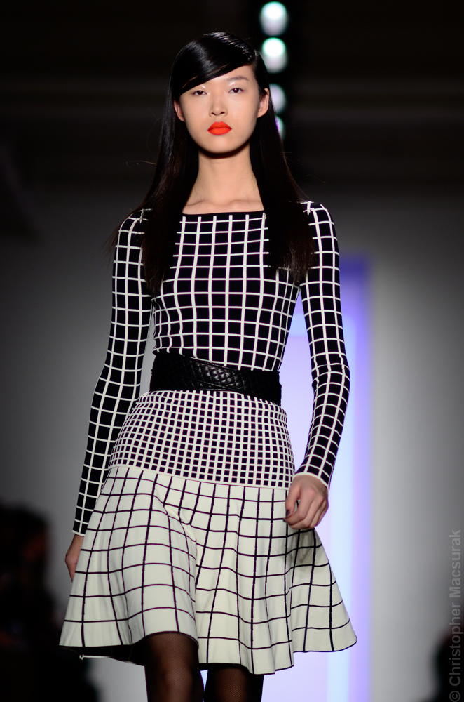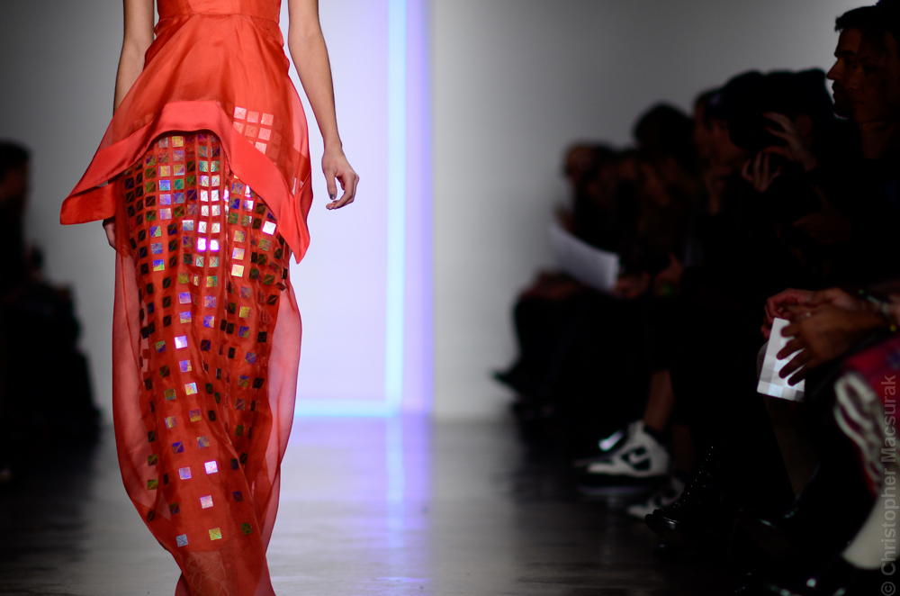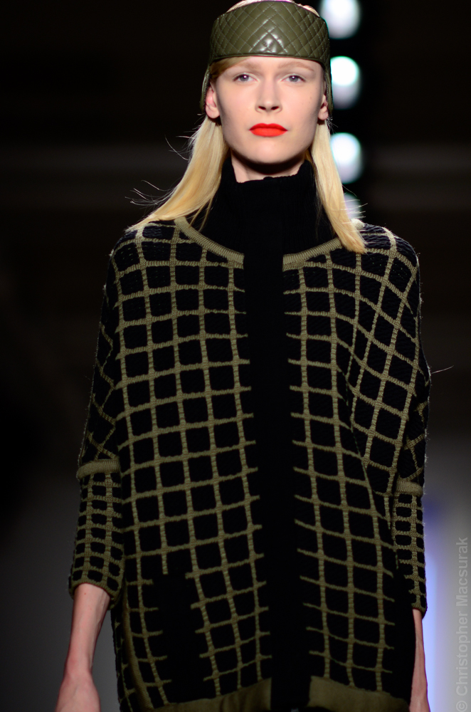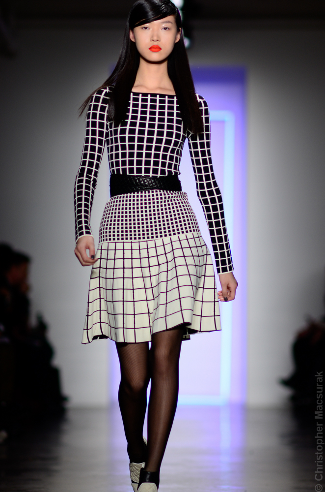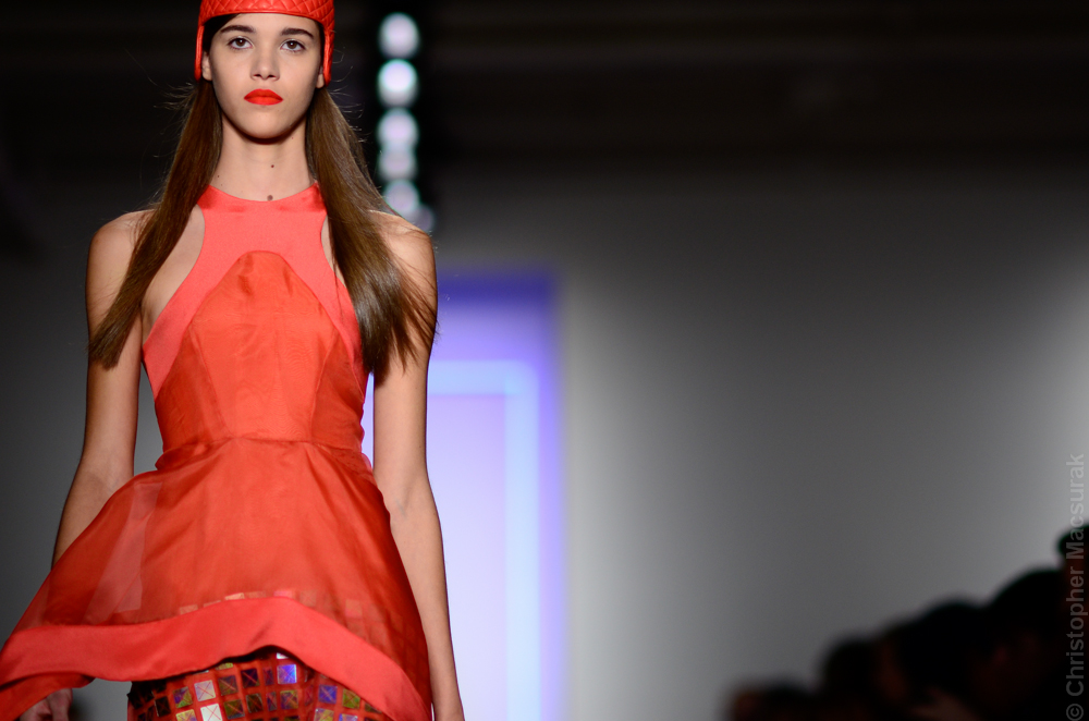 Ohne Titel designers Flora Gill and Alexa Adams presented a graphic, stylized collection at New York Fashion Week. The geometry of the silhouettes is reinforced by the use of contrasting red, white and black.