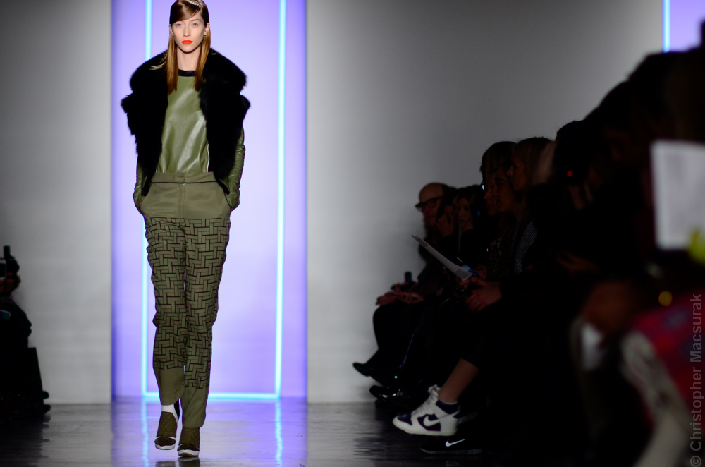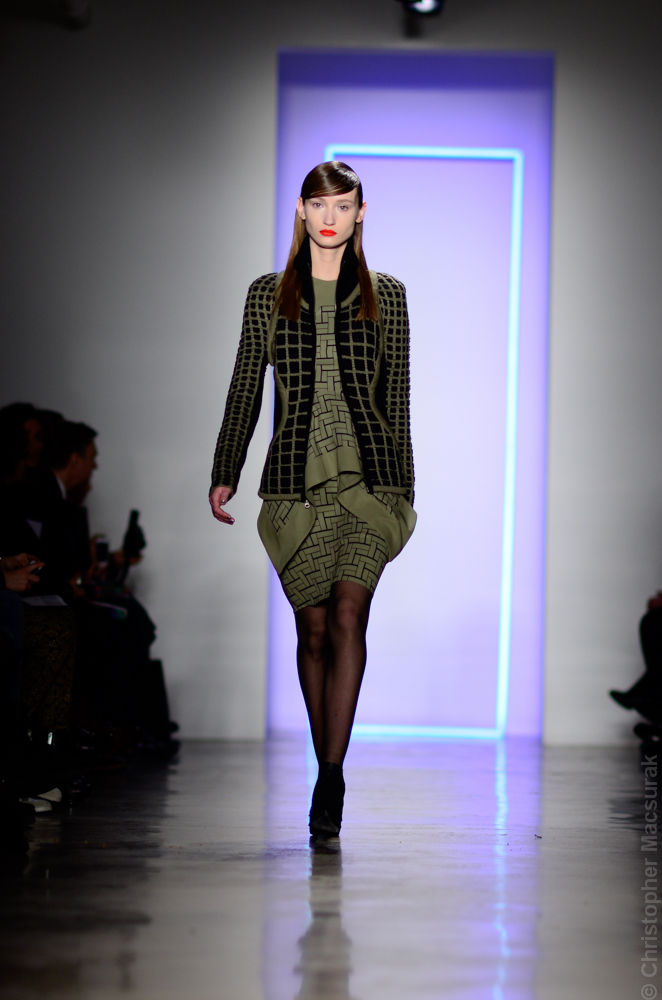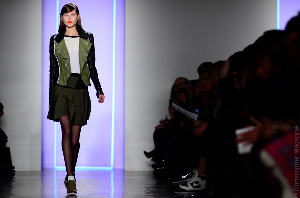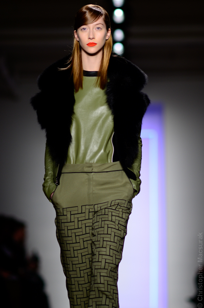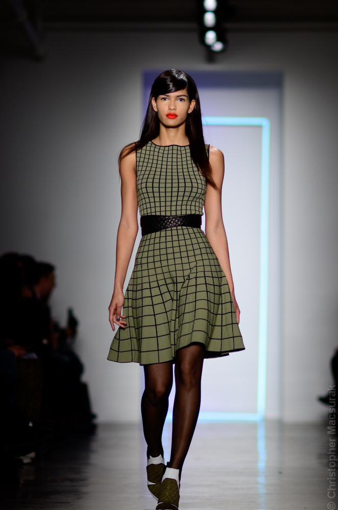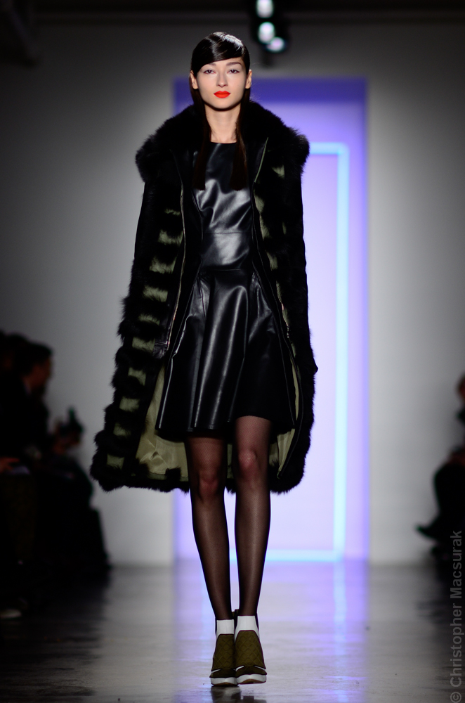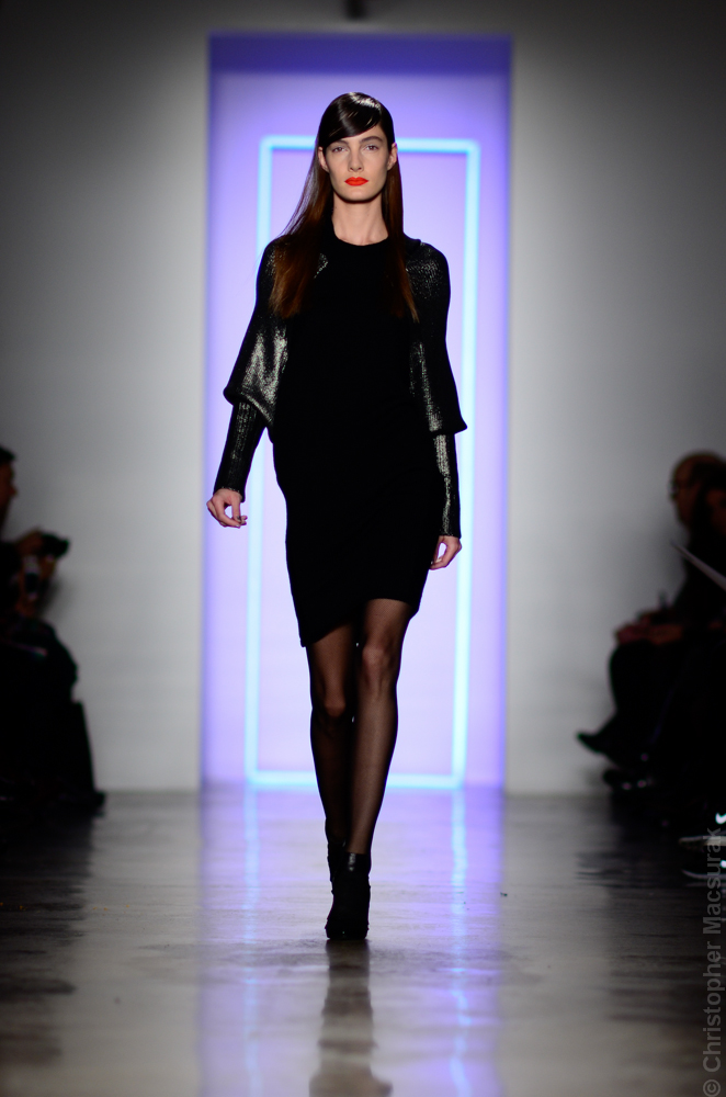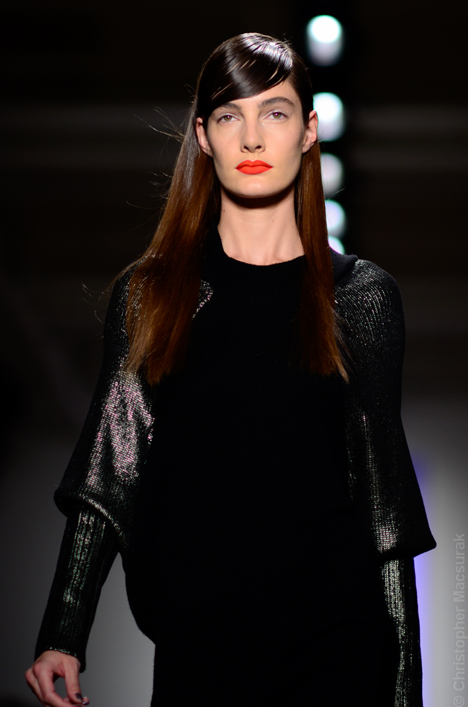 Ohne Titel designers Flora Gill and Alexa Adams presented a graphic, stylized collection at New York Fashion Week. The geometry of the silhouettes is reinforced by the use of contrasting red, white and black.