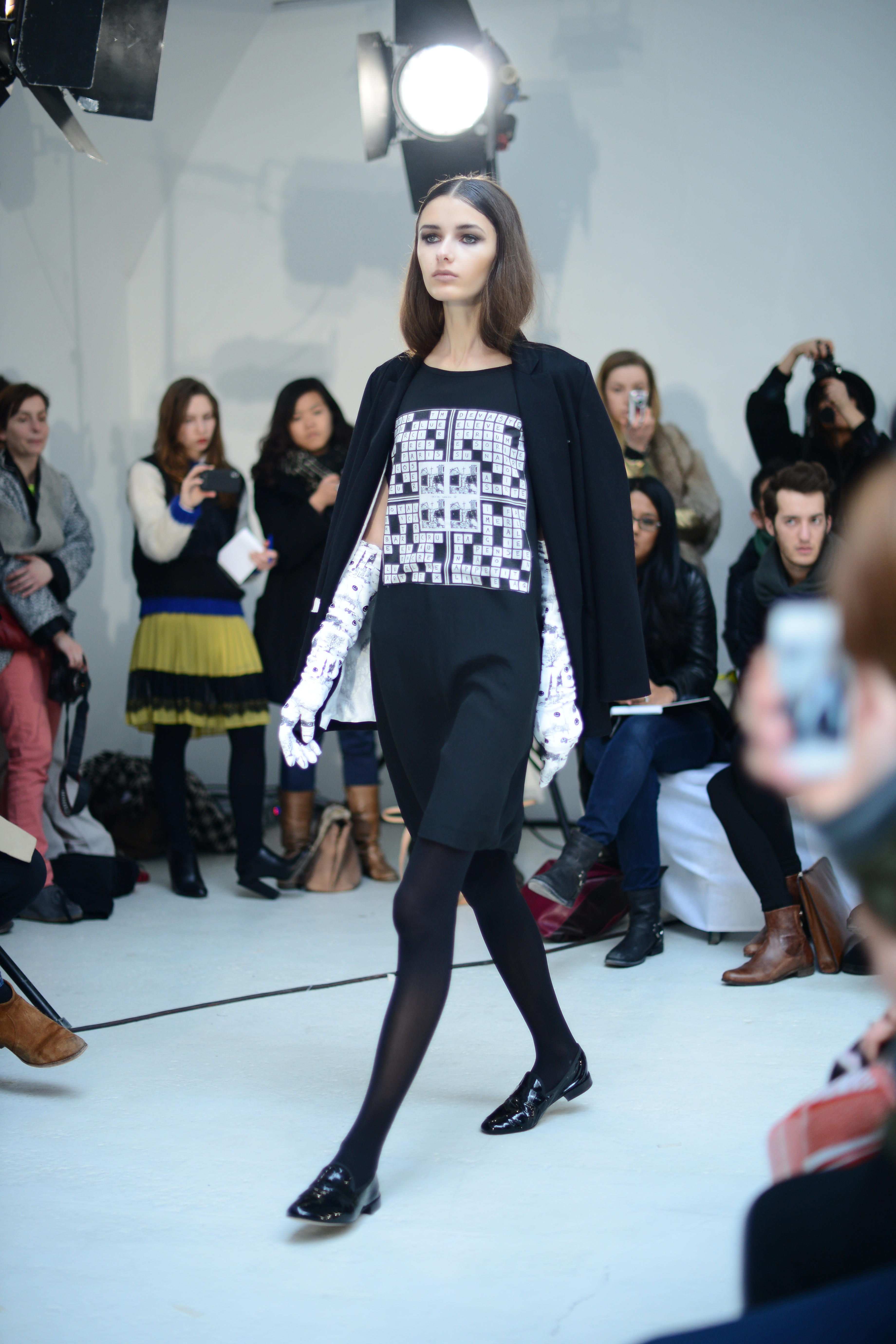 Monochrome as usual, the duo behind Dévastée, Ophélie Klère and François Alary, chose this season to emphasize cuts that are very androgynous (if not downright masculine). As a result, coats are precisely tailored, and houndstooth prints are legion at Dévastée (in the show’s opening, at least).