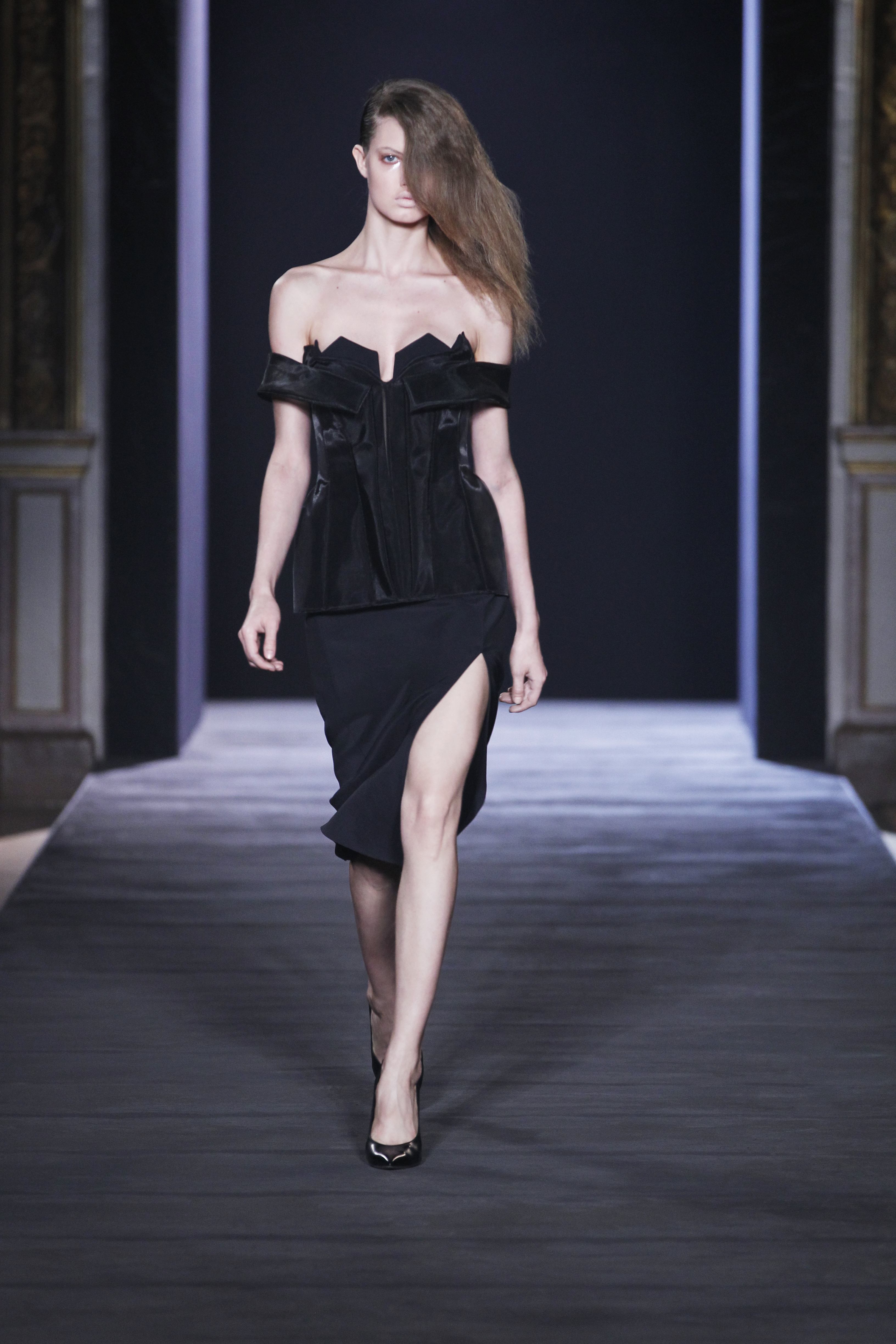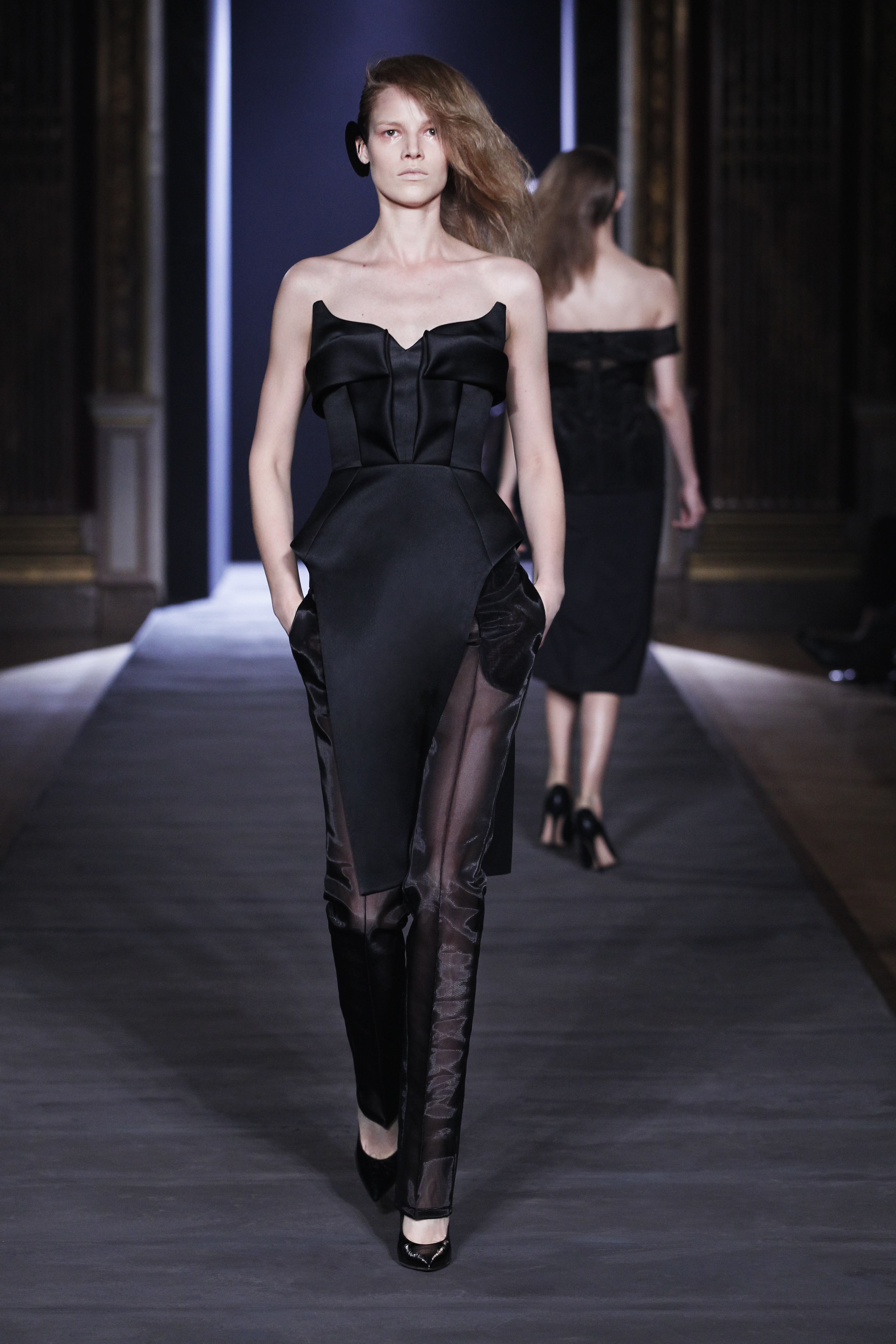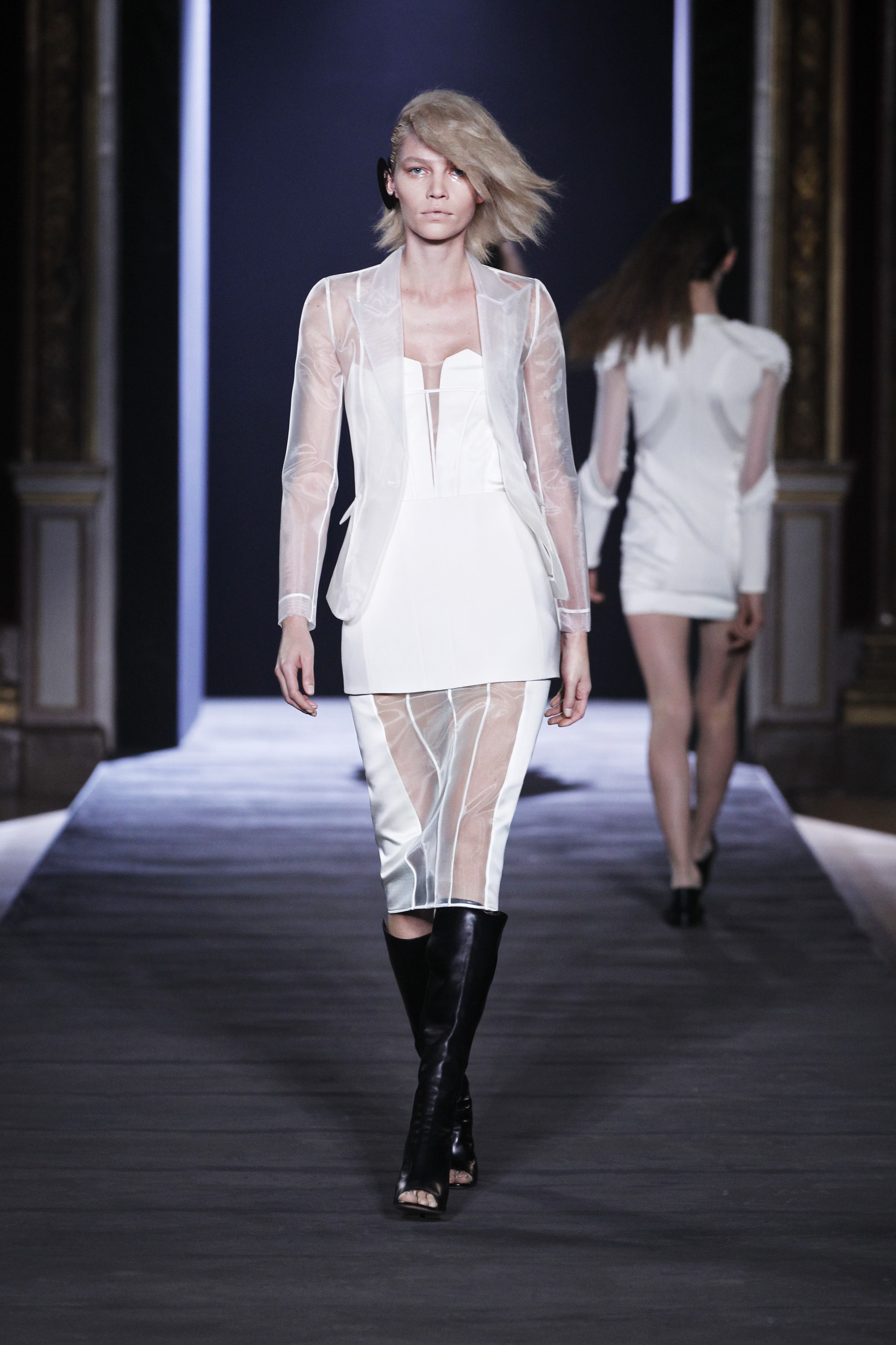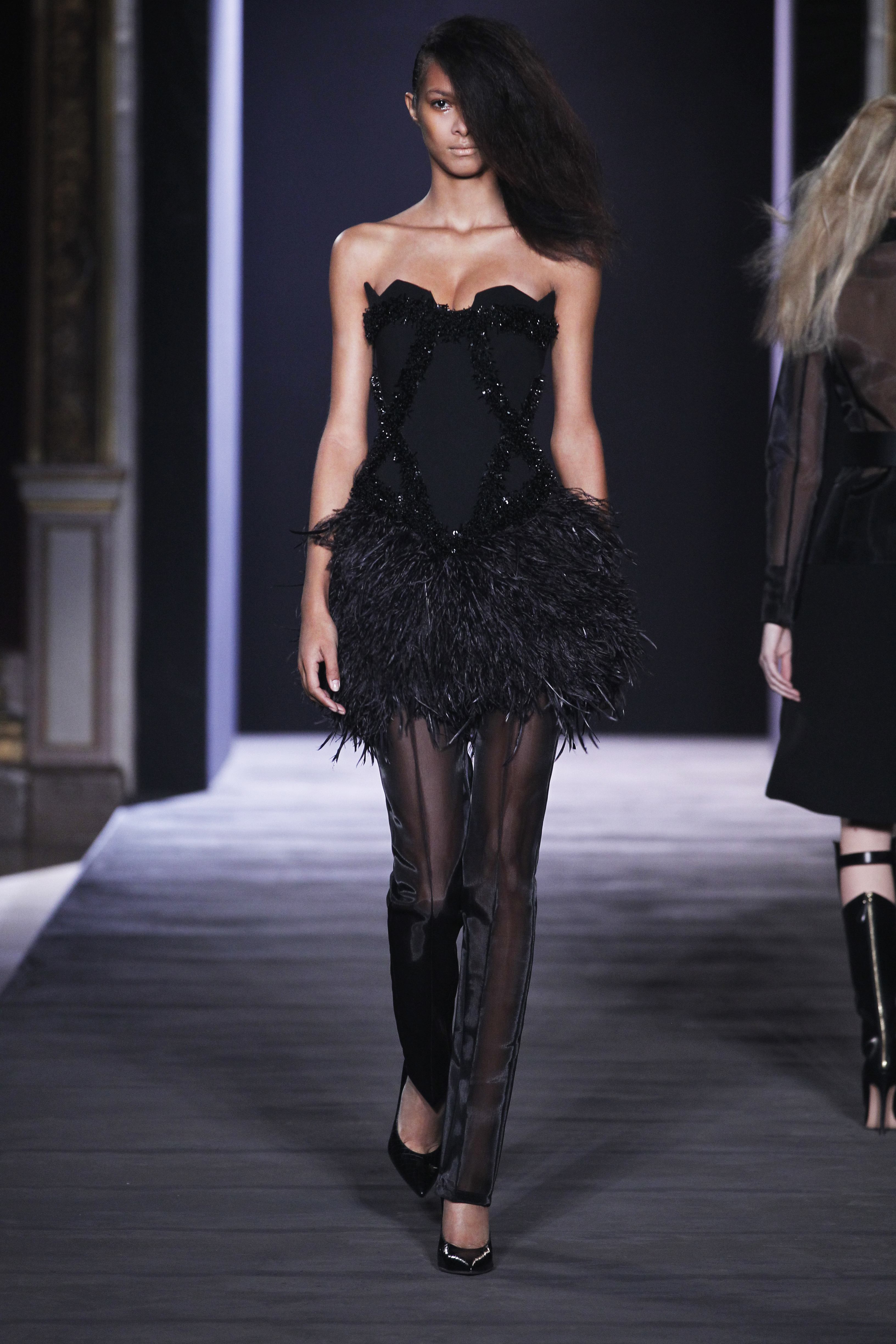 Dresses? They come in two versions, either short and seductive, or long and theatrical. Transparency is used to suggest without showing too much on certain outfits, and the mix of materials is very present.