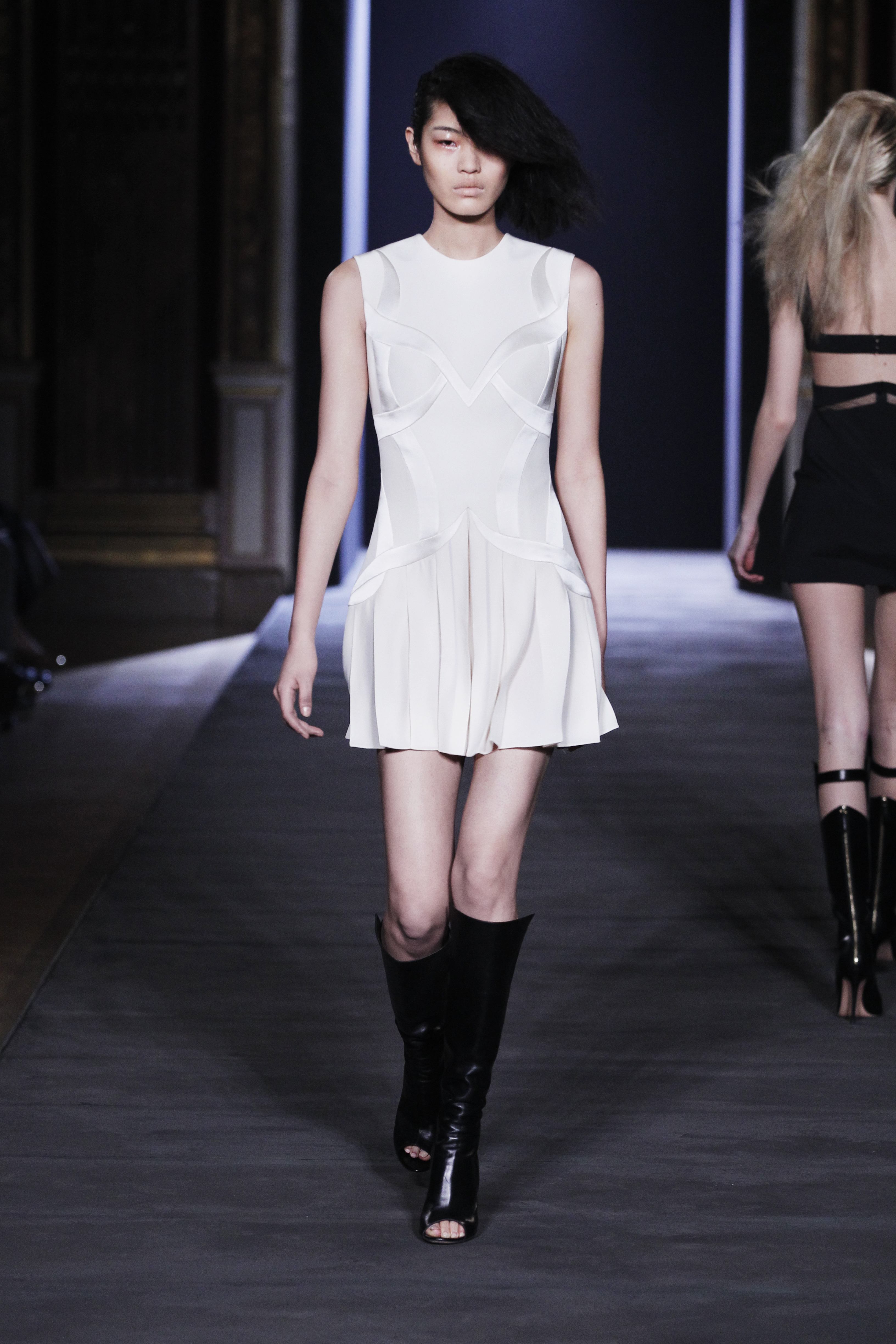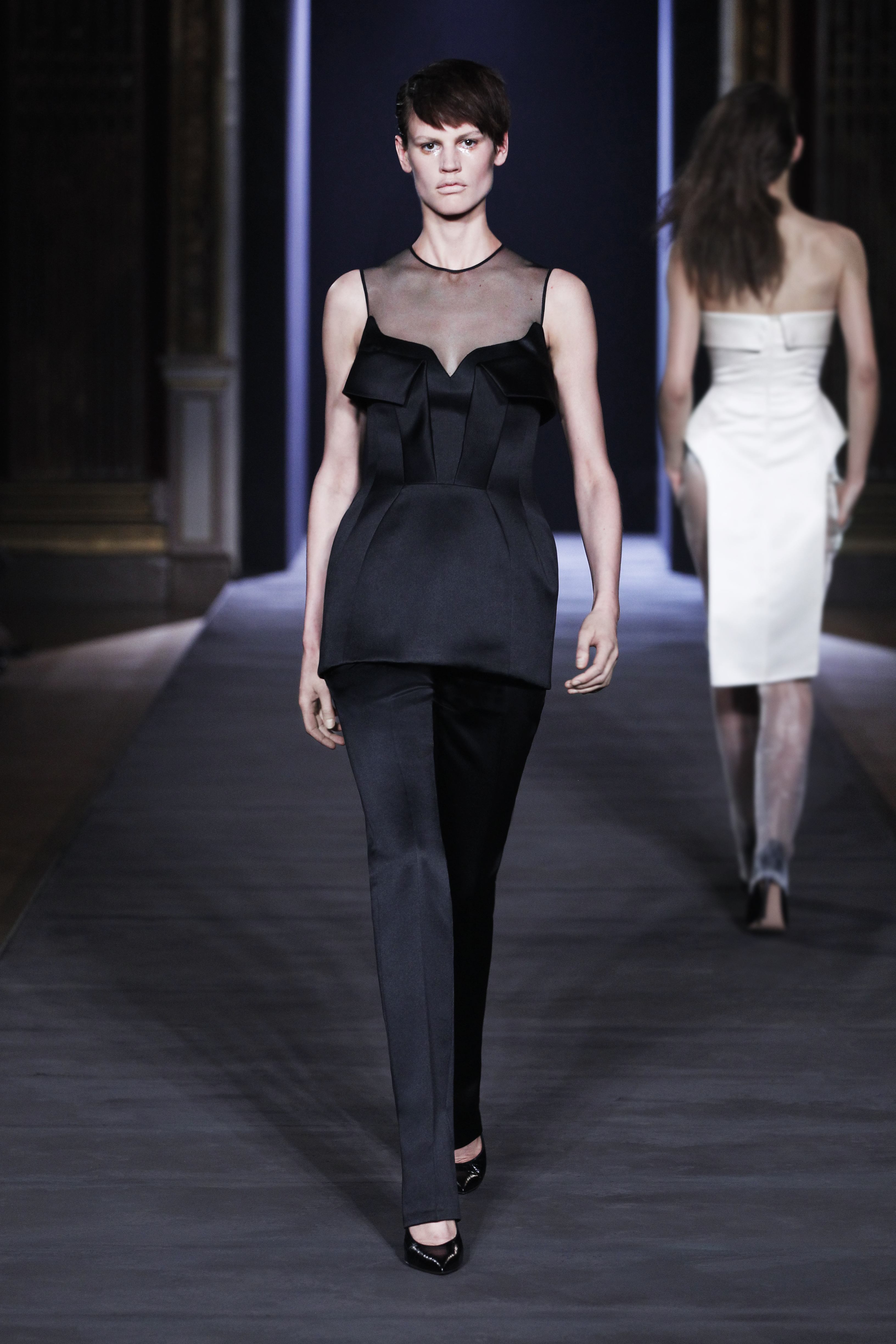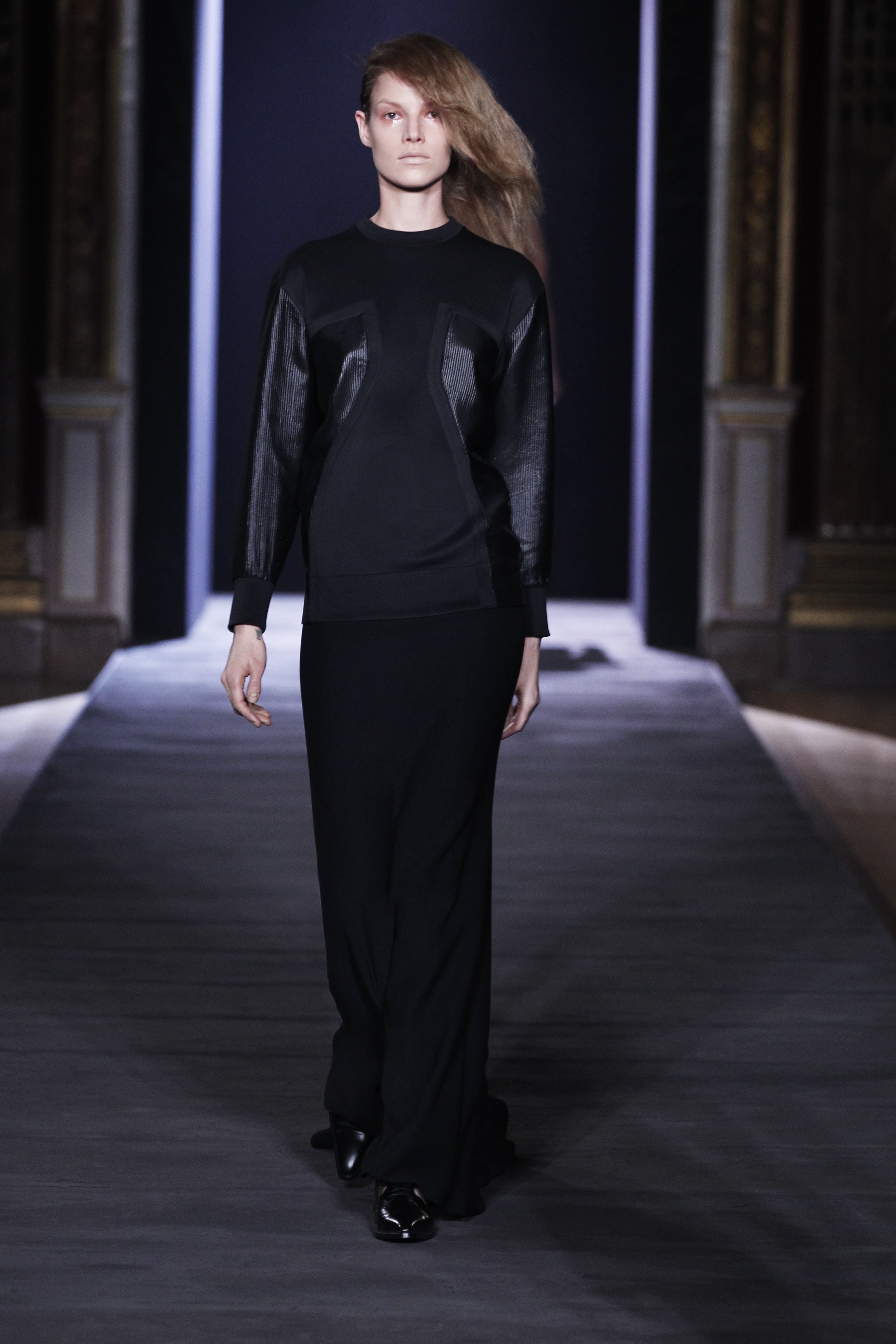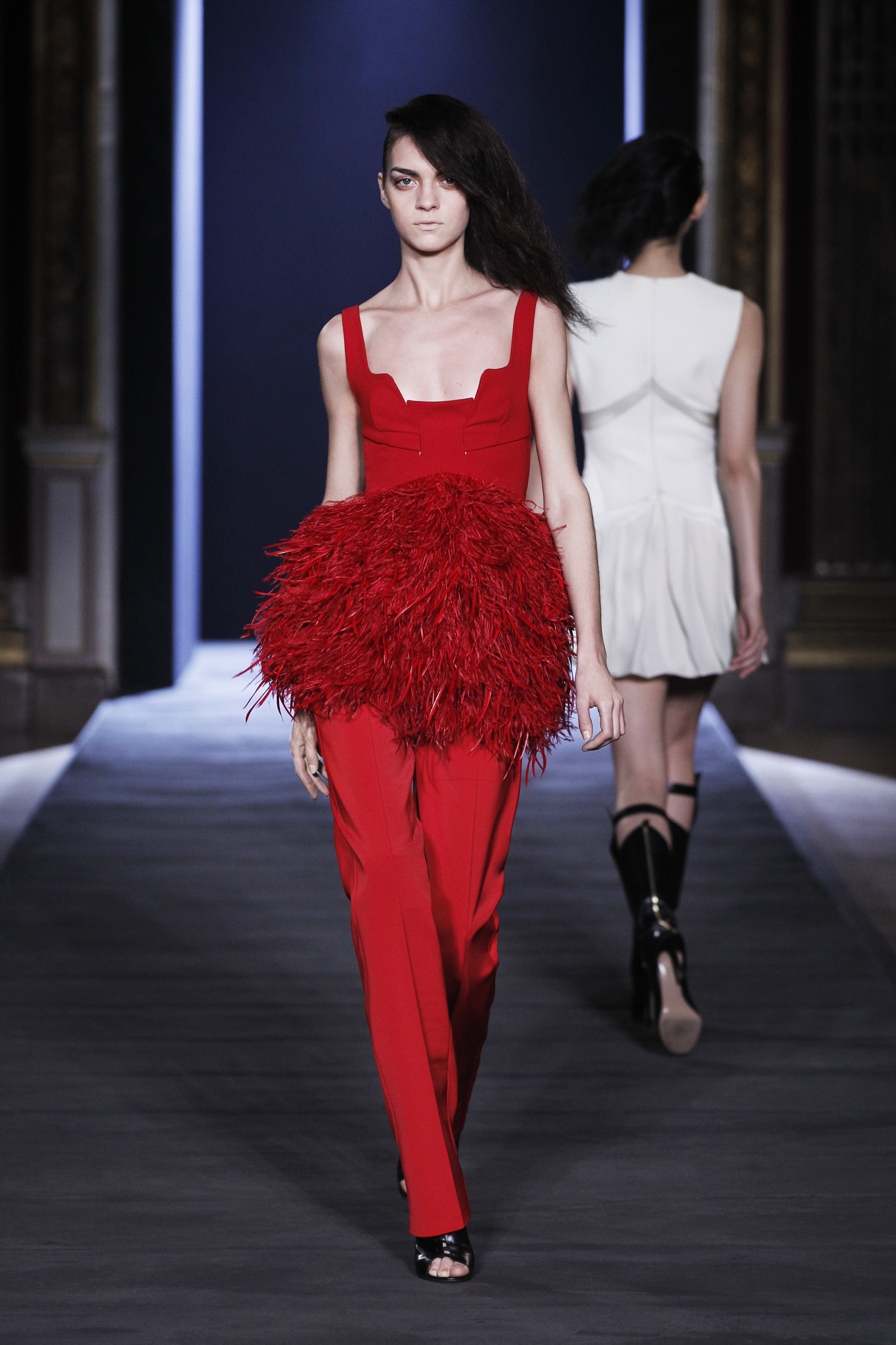 Dresses? They come in two versions, either short and seductive, or long and theatrical. Transparency is used to suggest without showing too much on certain outfits, and the mix of materials is very present.
