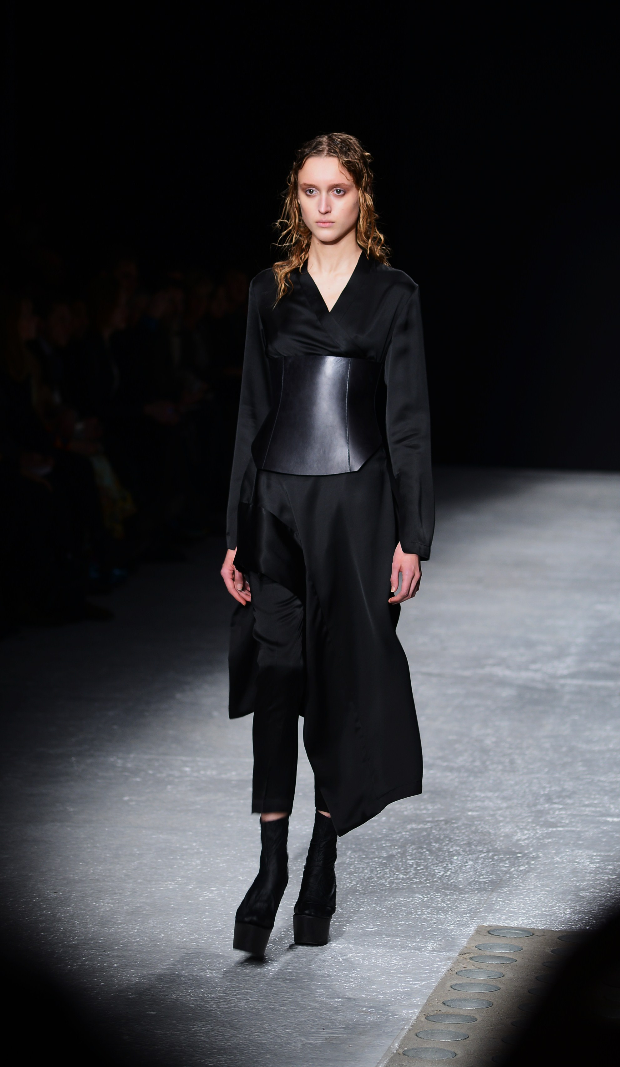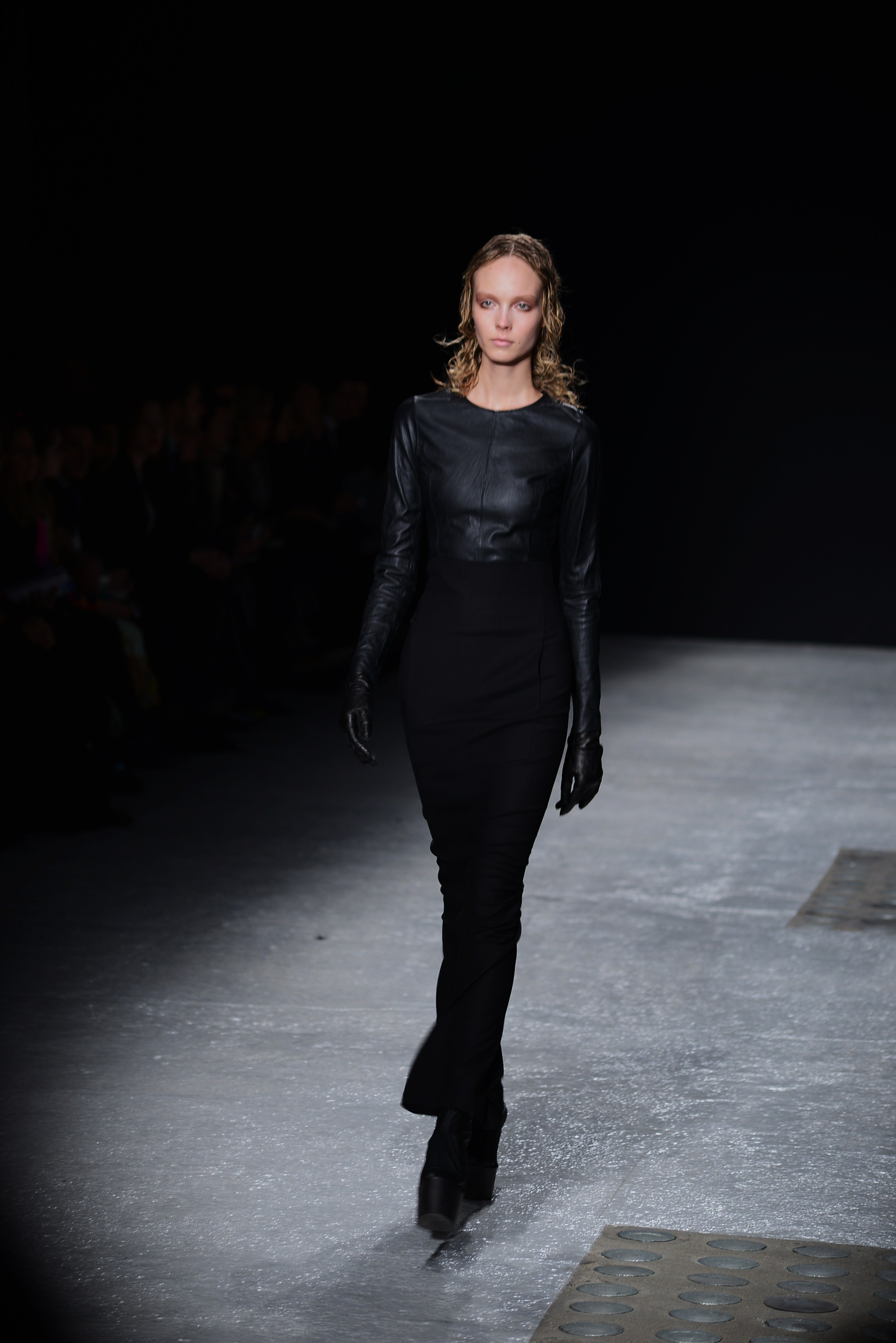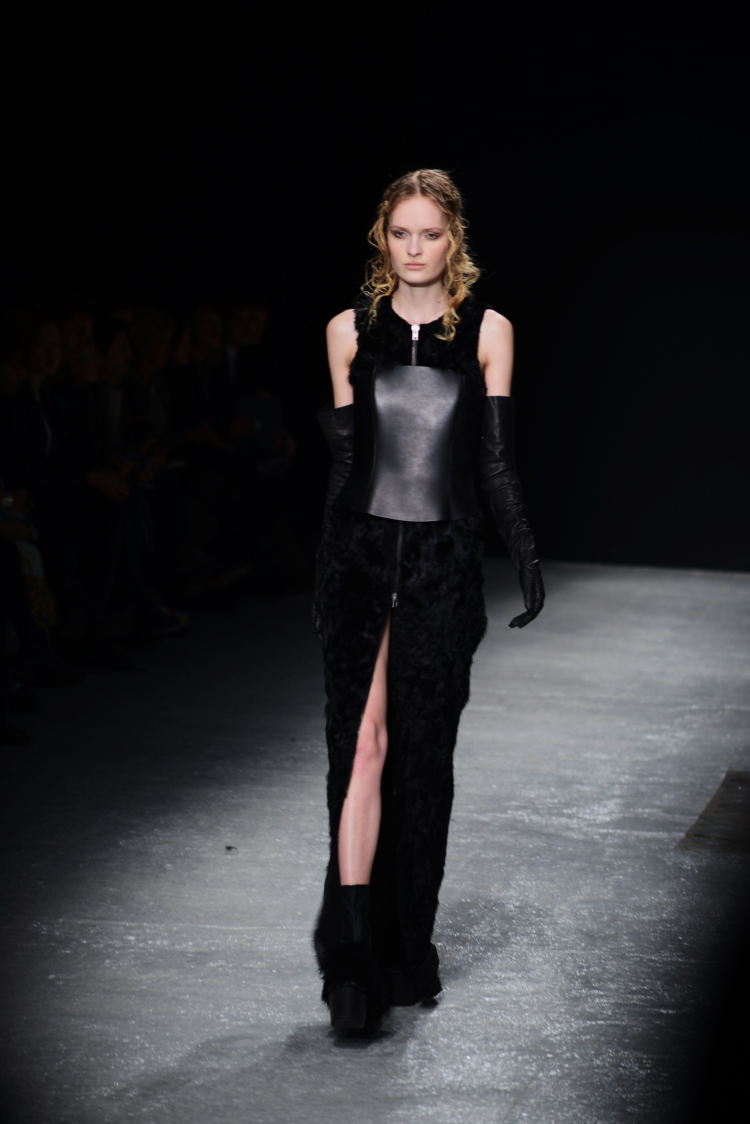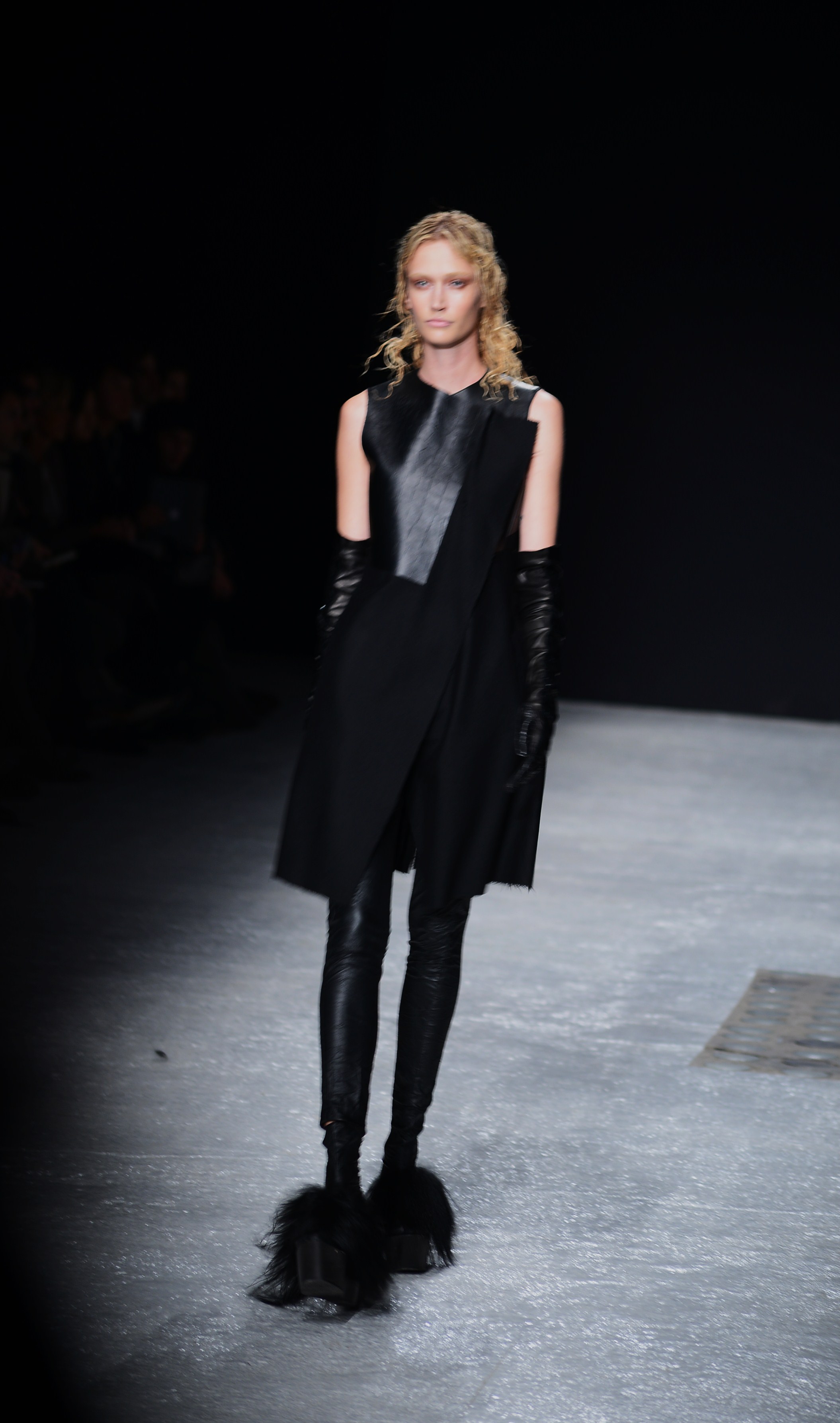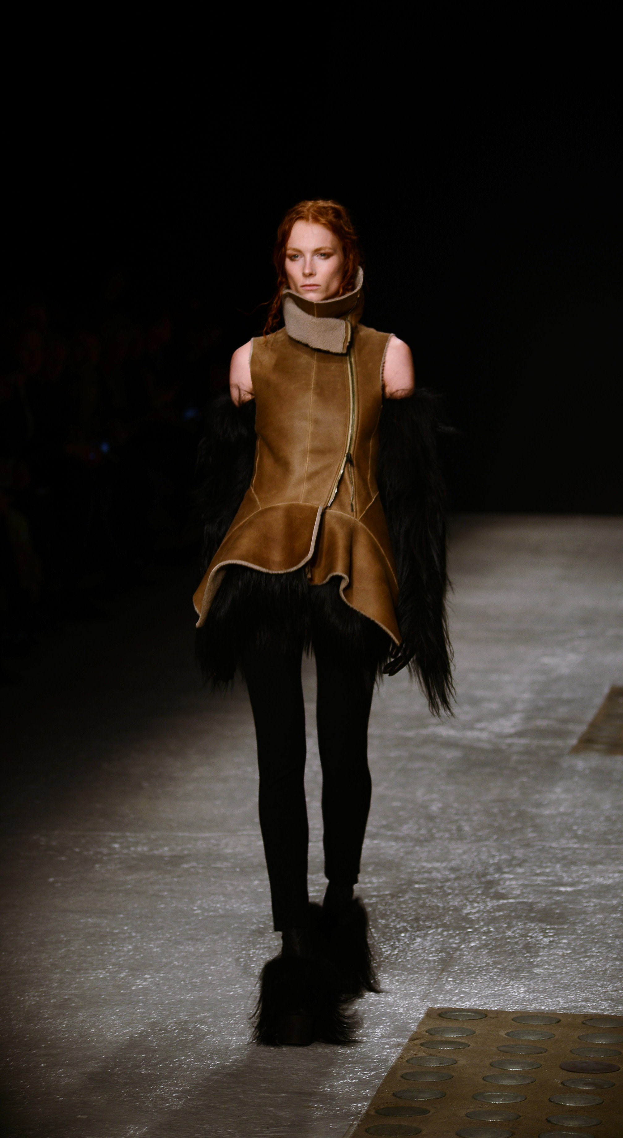 The first part of the show is based on raw materials: fur and shearling. Black was the dominant color, although we saw a few earthy hues here and there, so materials intermingled and yokes were a staple of the outfits.