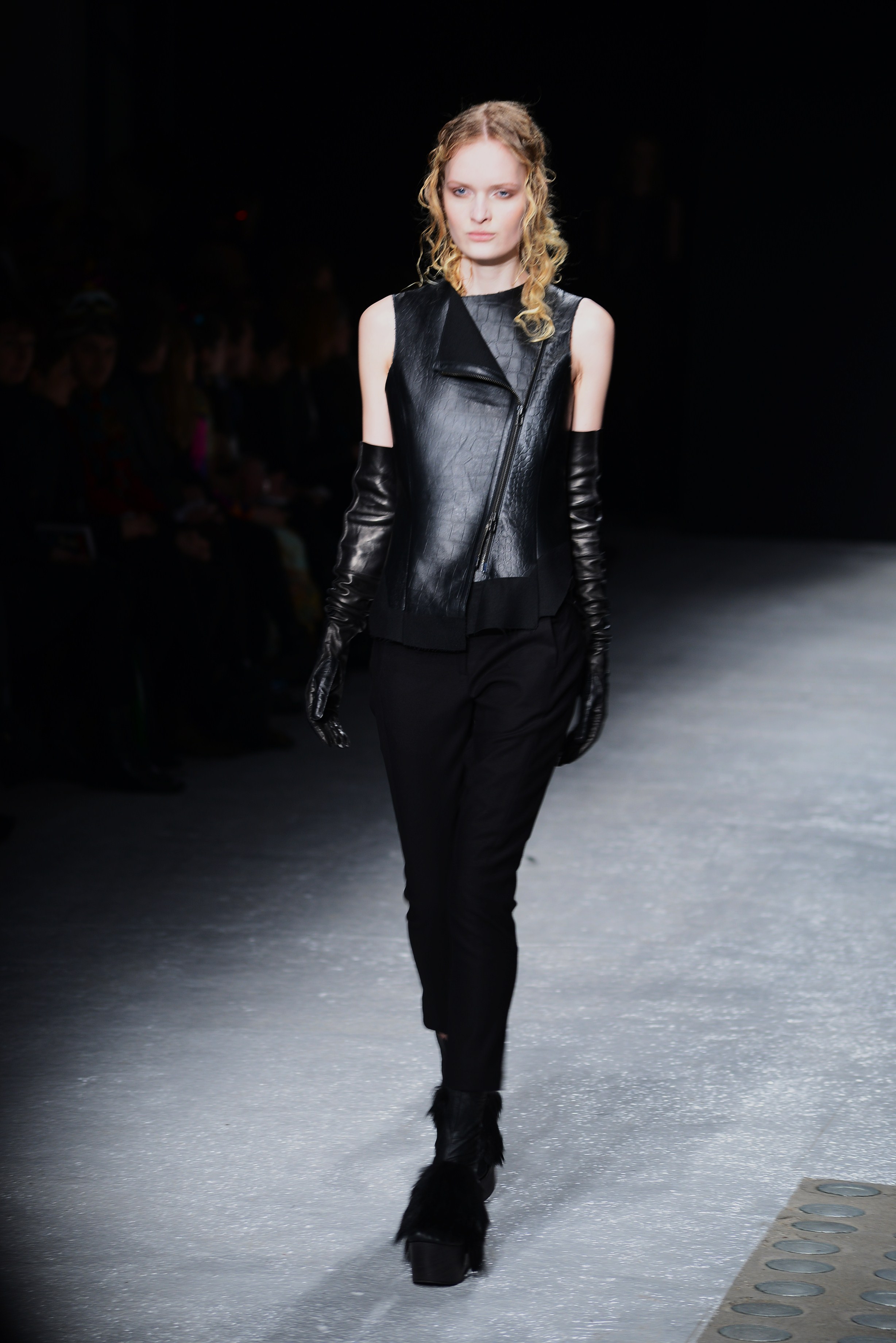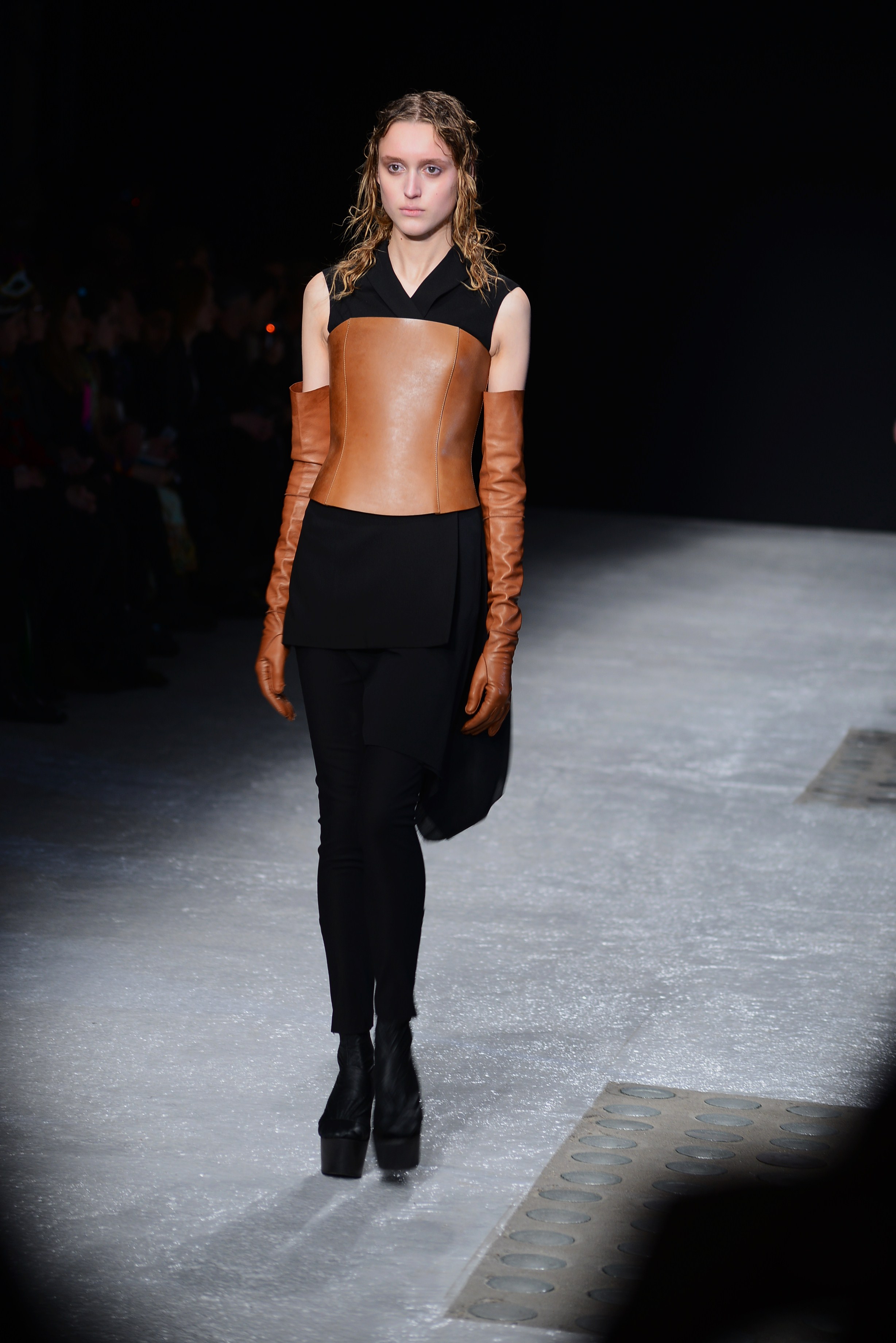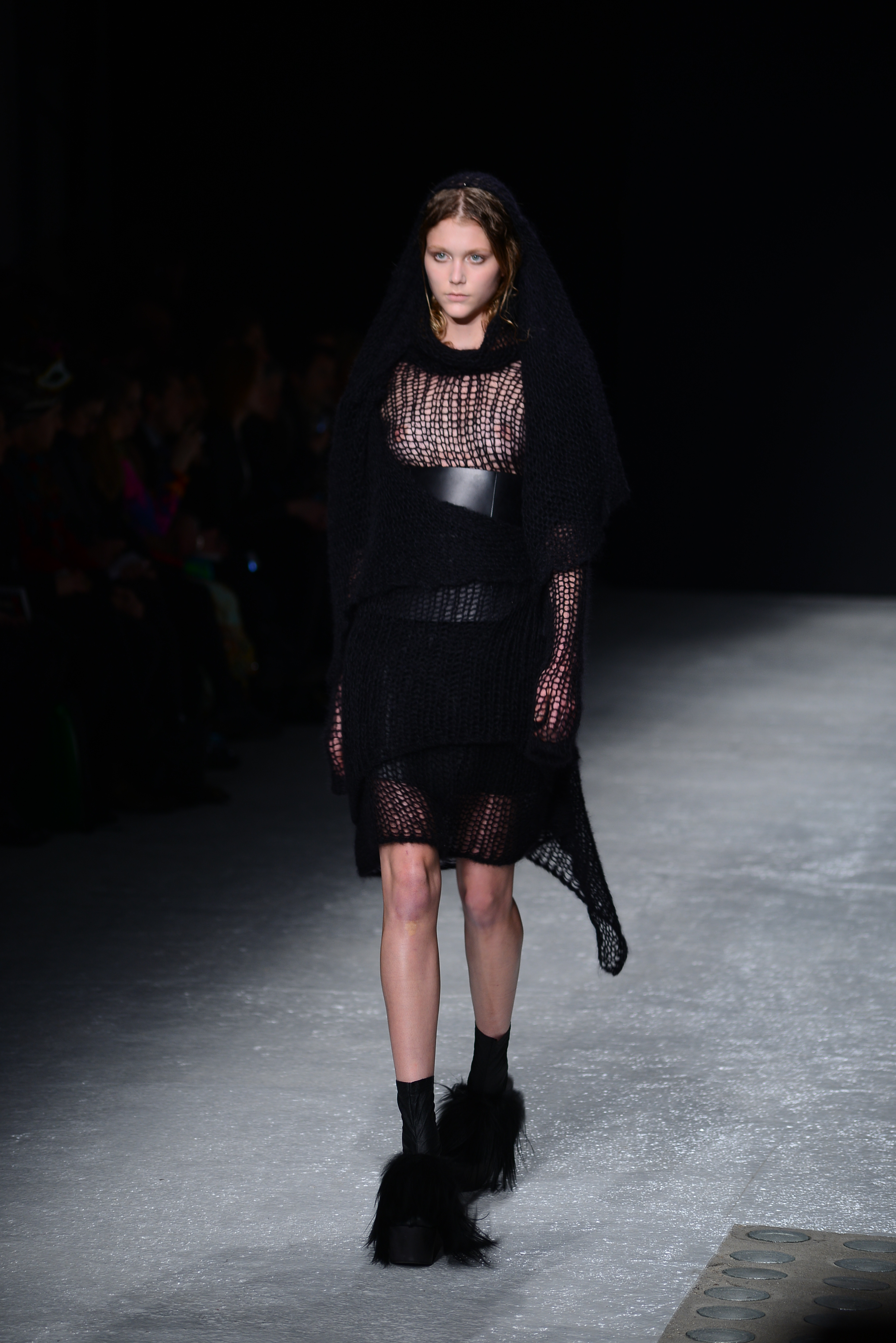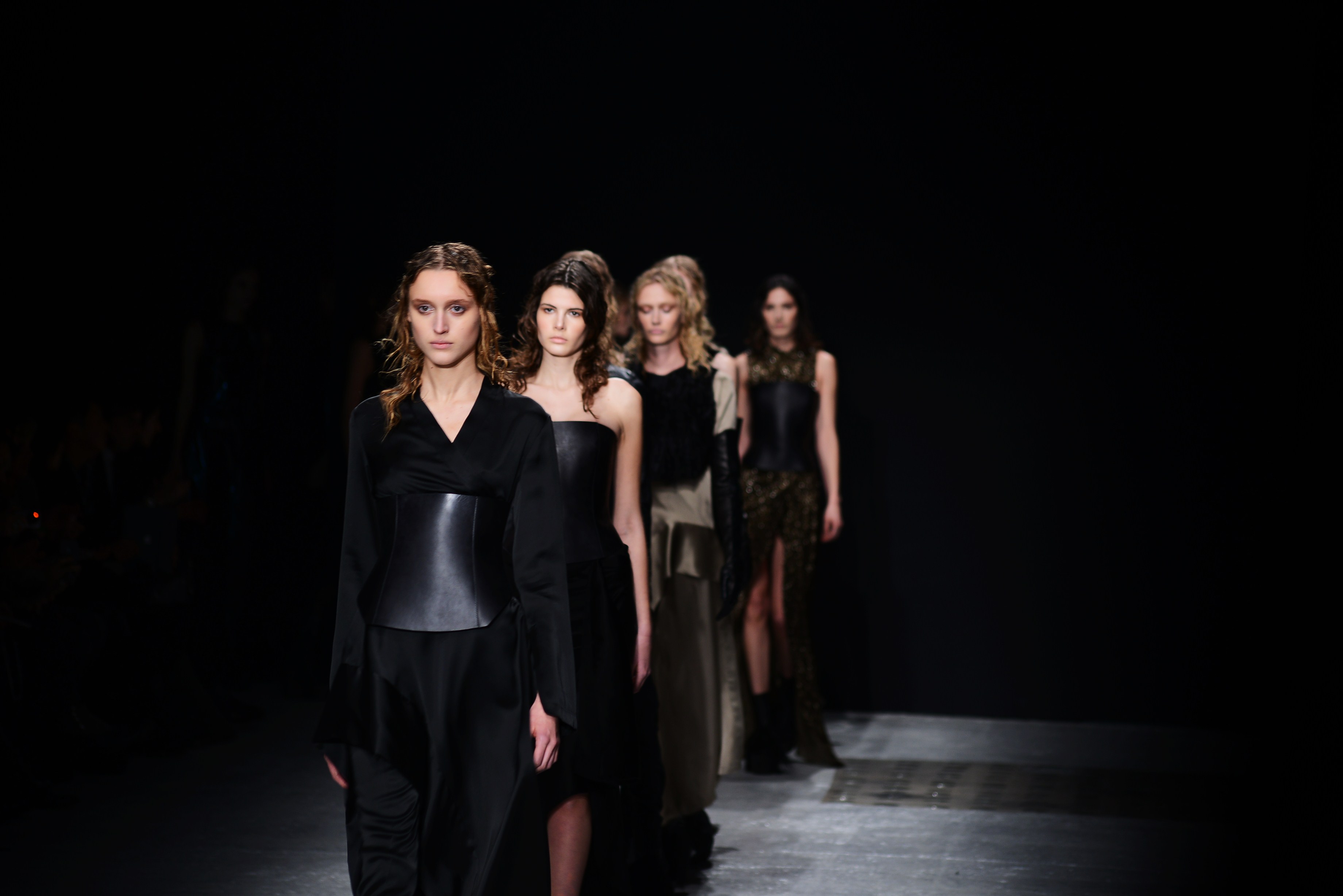 The first part of the show is based on raw materials: fur and shearling. Black was the dominant color, although we saw a few earthy hues here and there, so materials intermingled and yokes were a staple of the outfits.