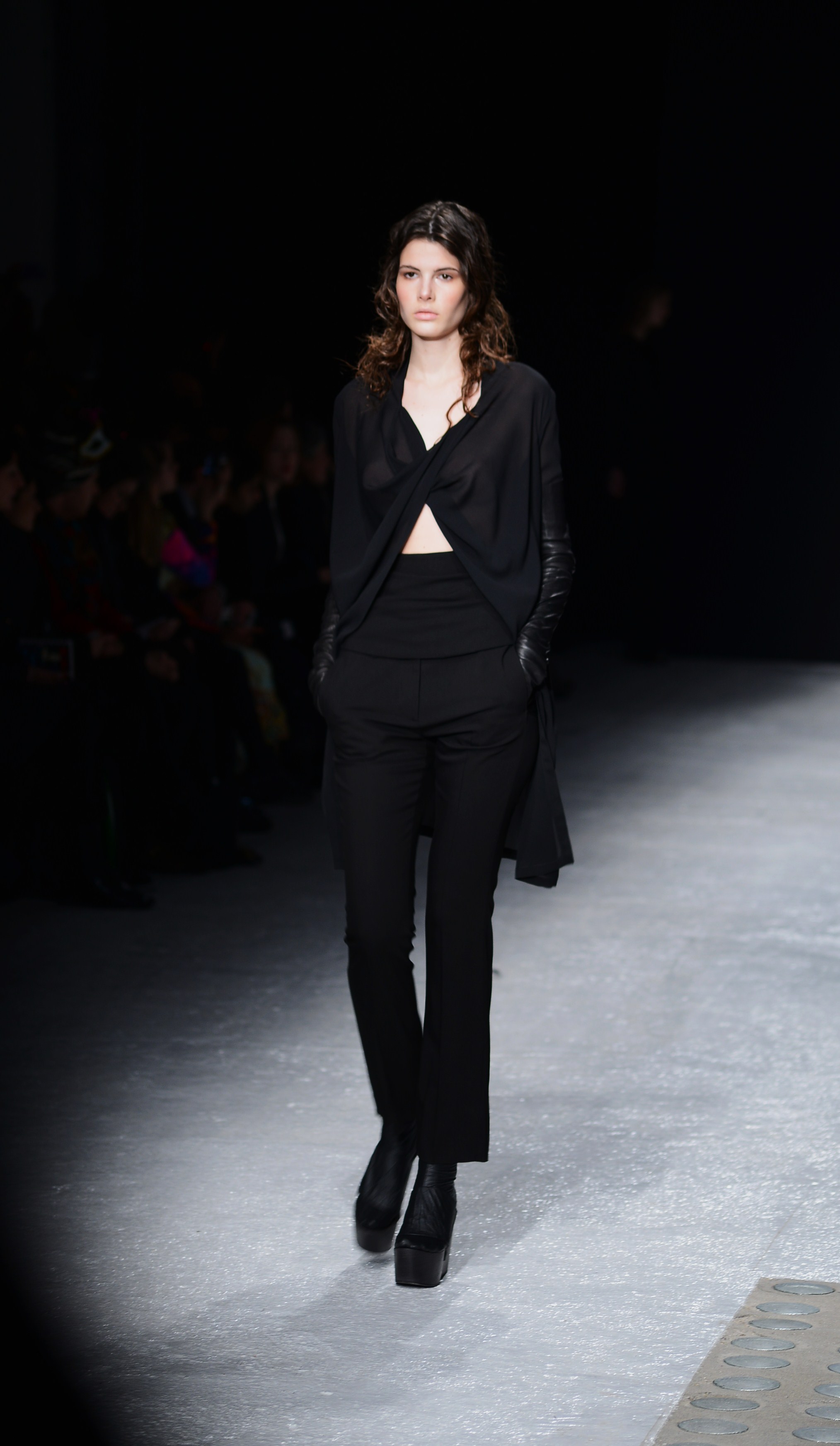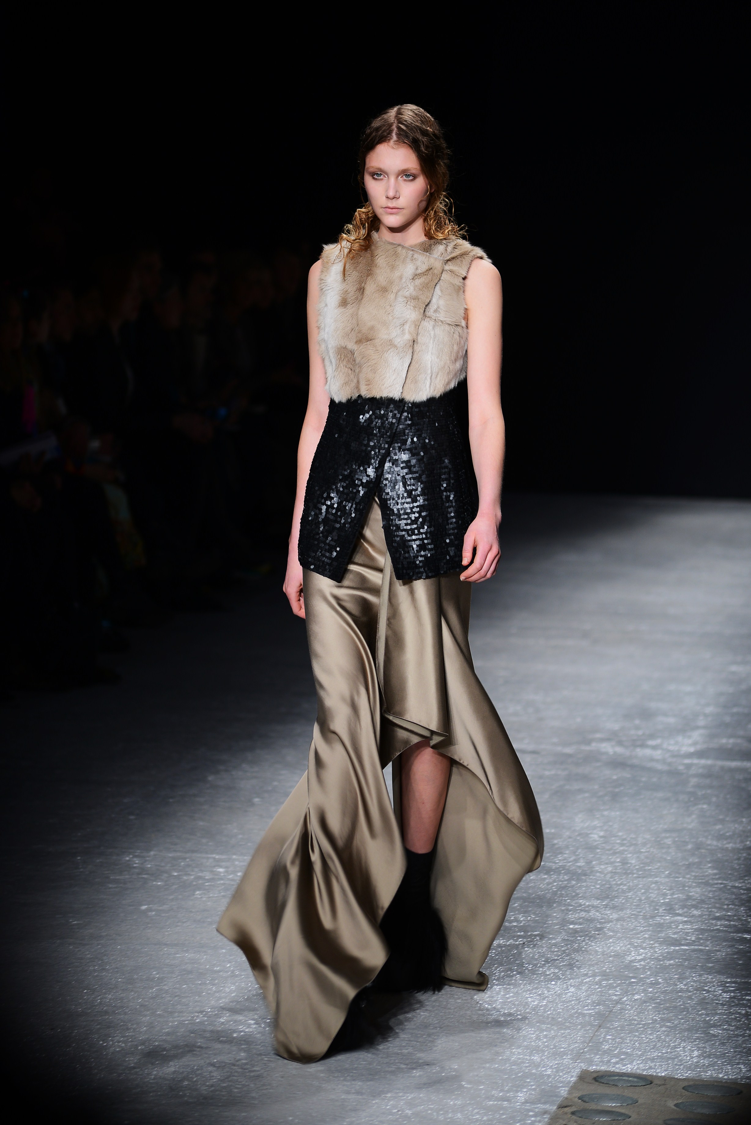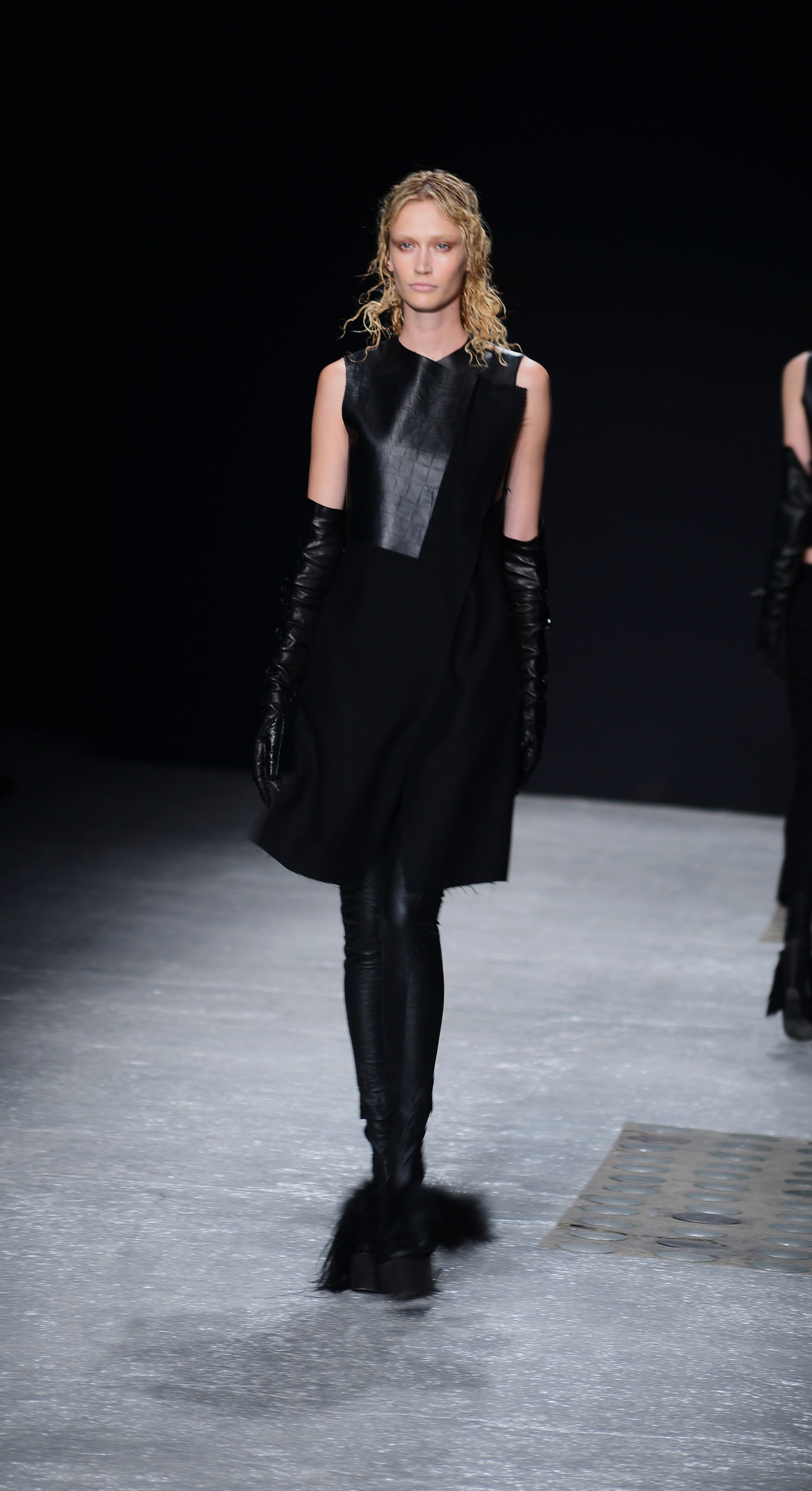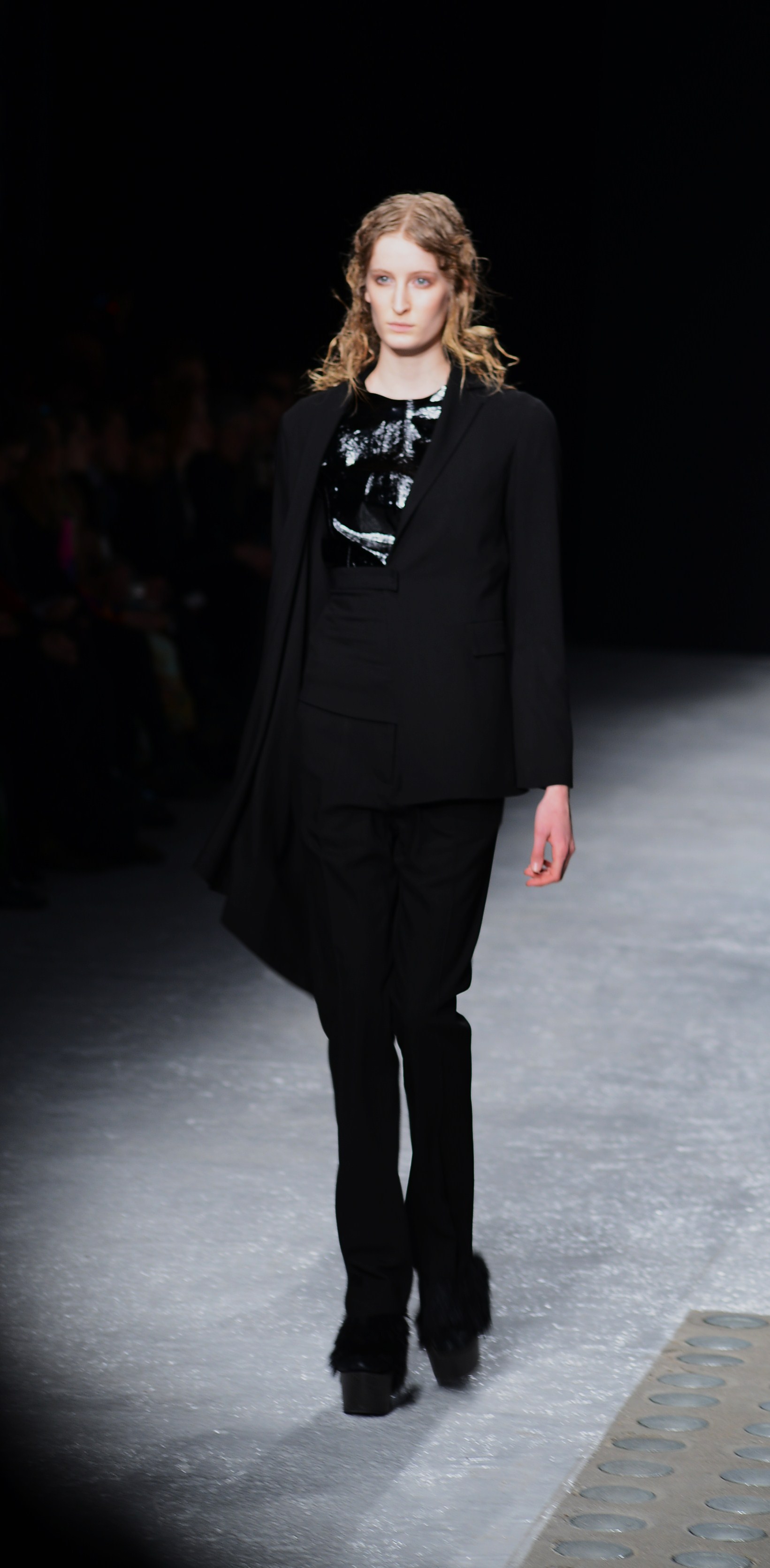 A mix of materials: that’s how to sum up the fall/winter 2013/2014 collection by the Peachoo+Krejberg duo in two words. In fact, it’s almost as if two collections were presented at the same show: one for daytime, the other for evening.