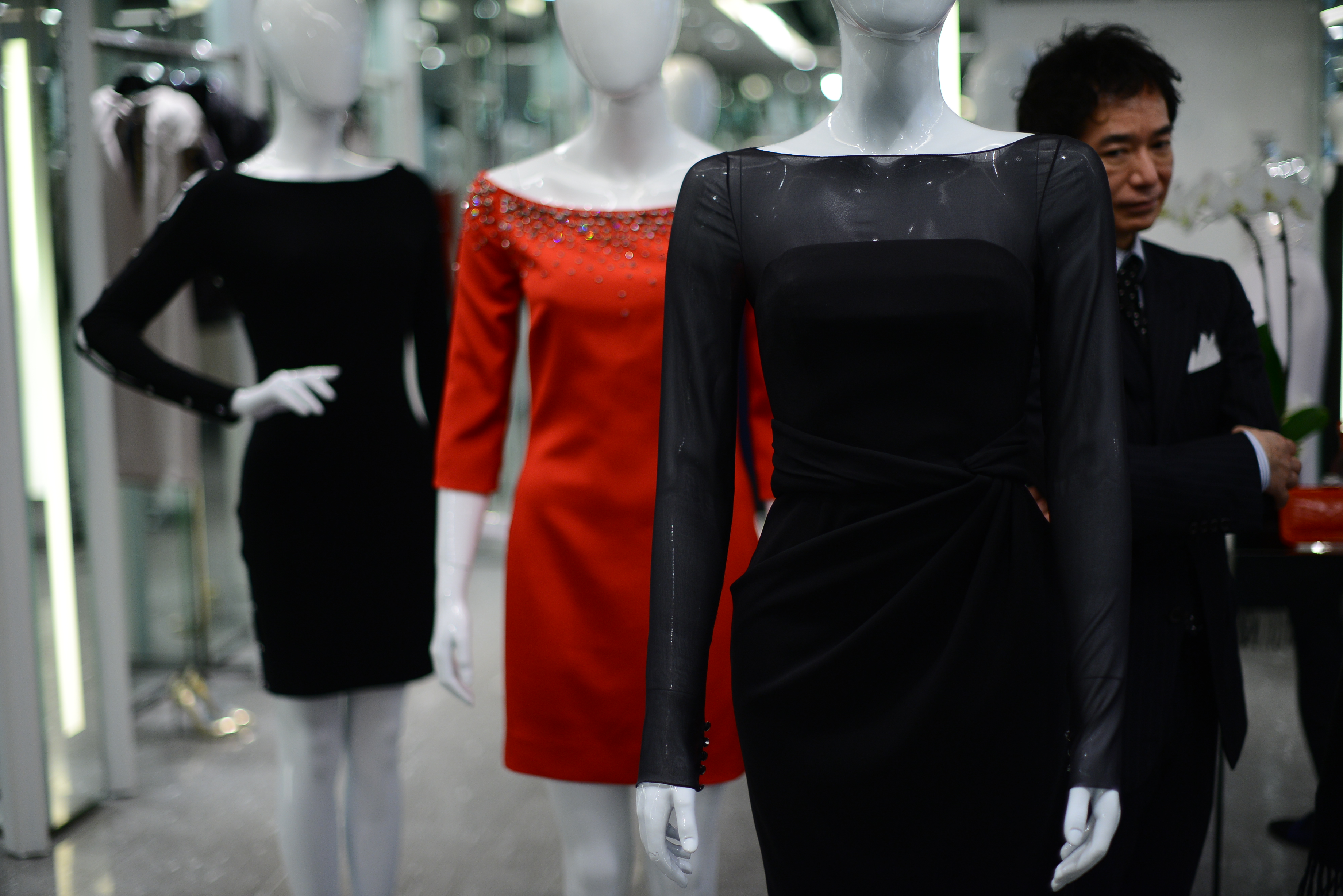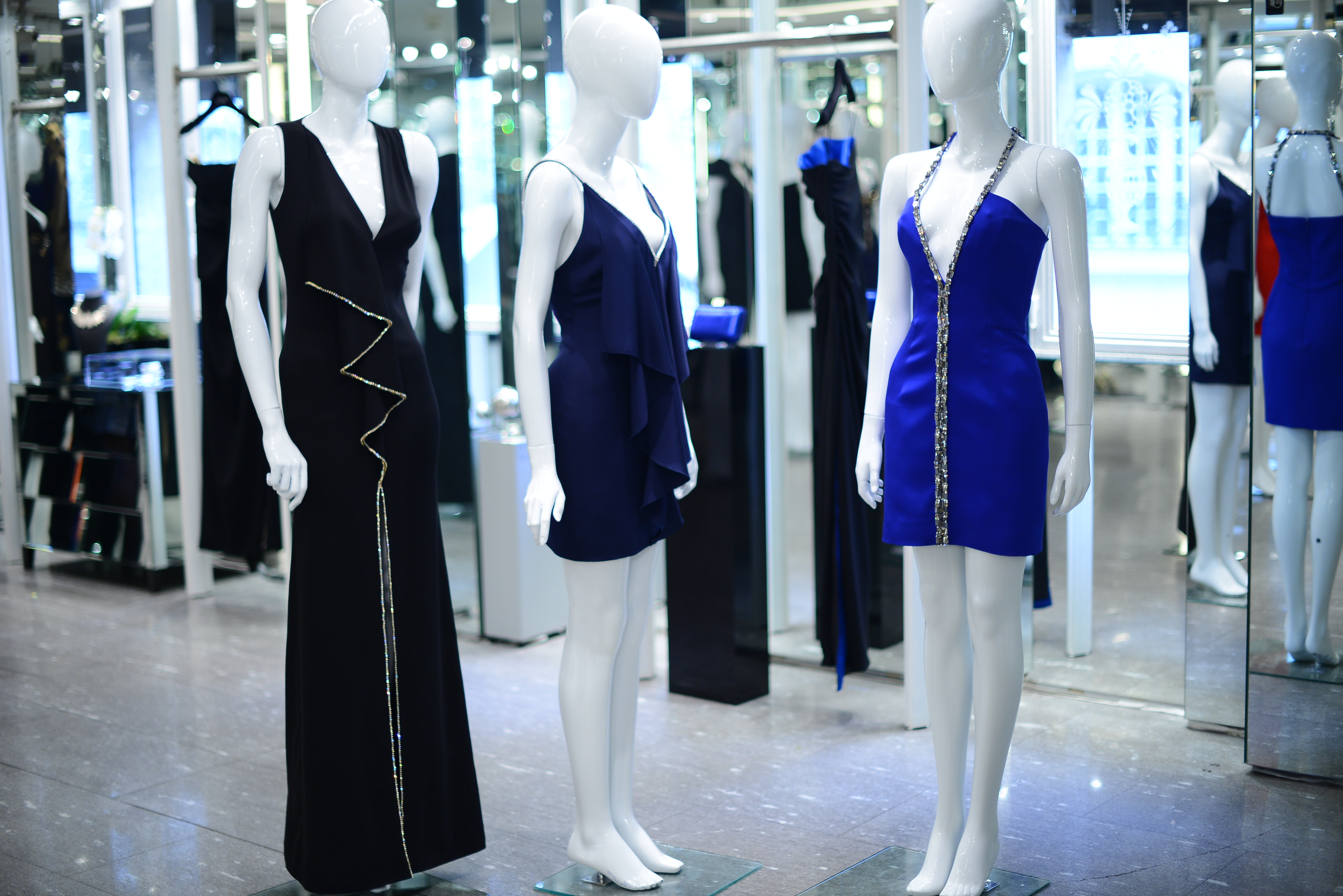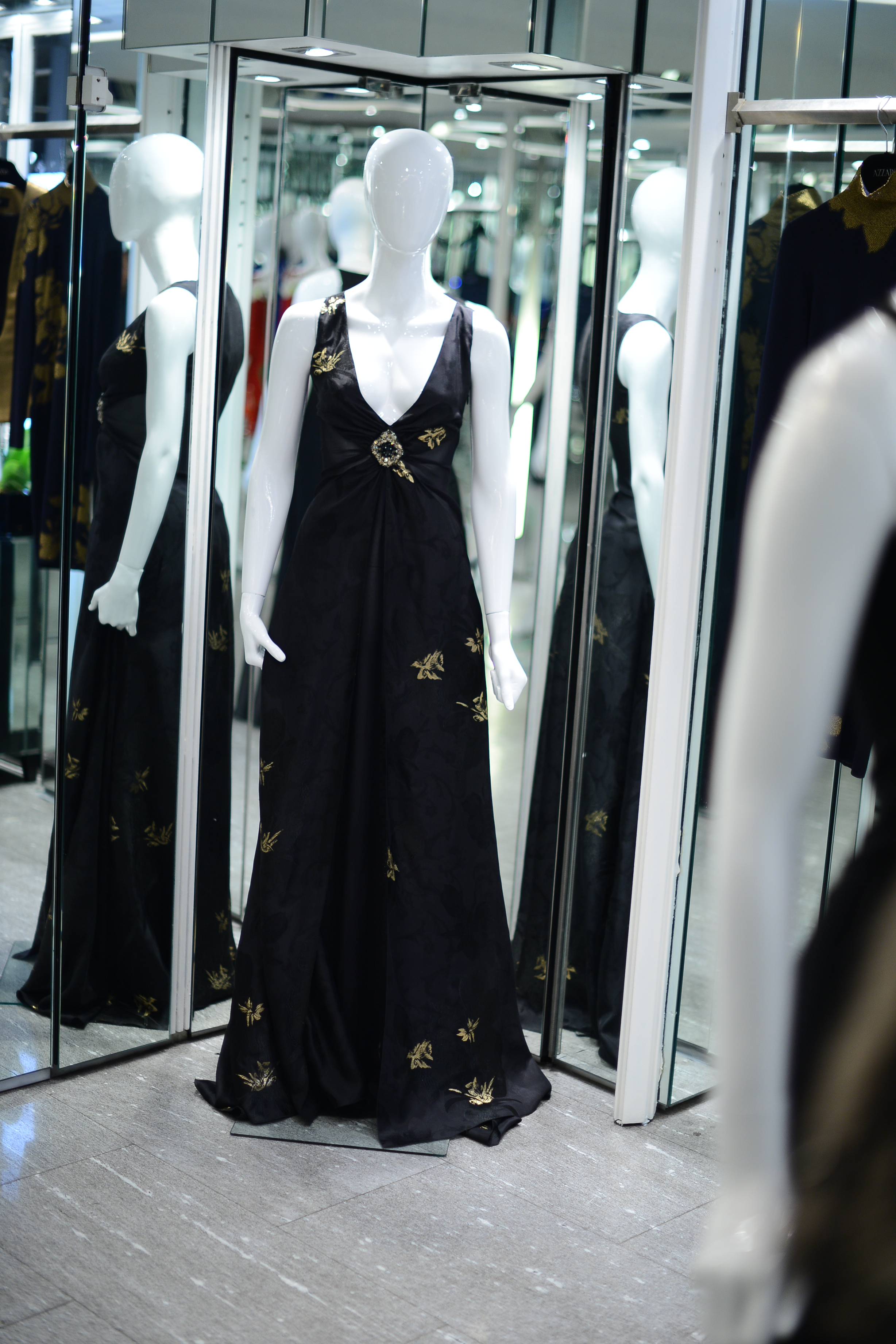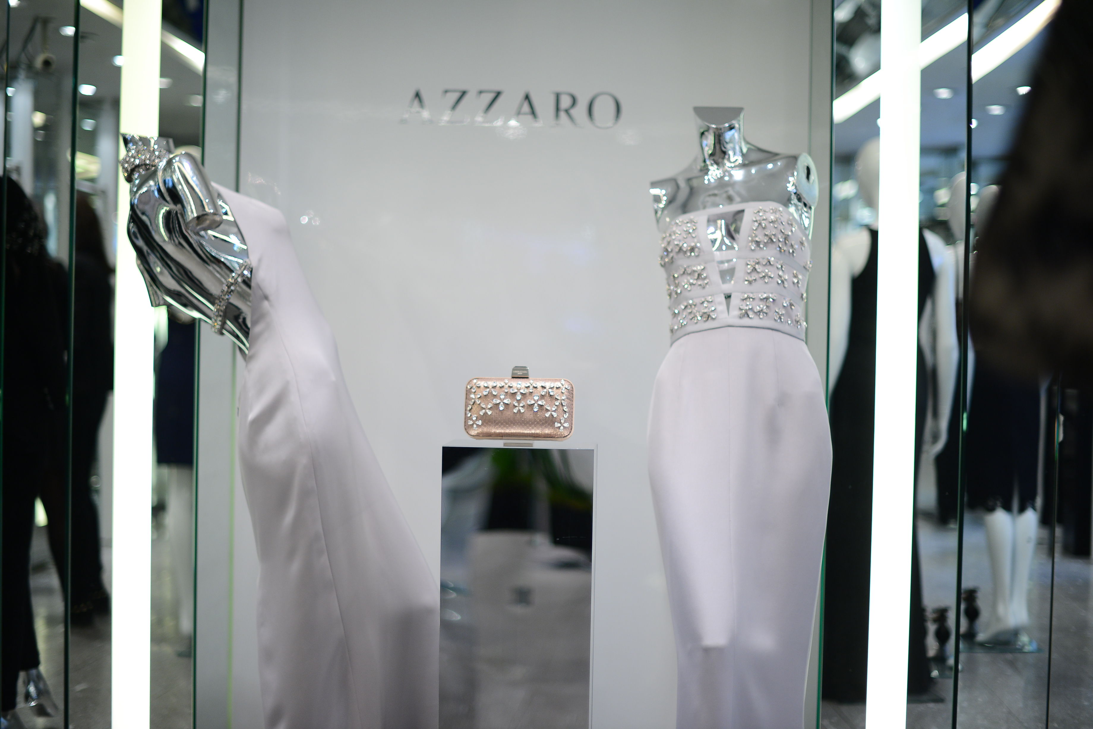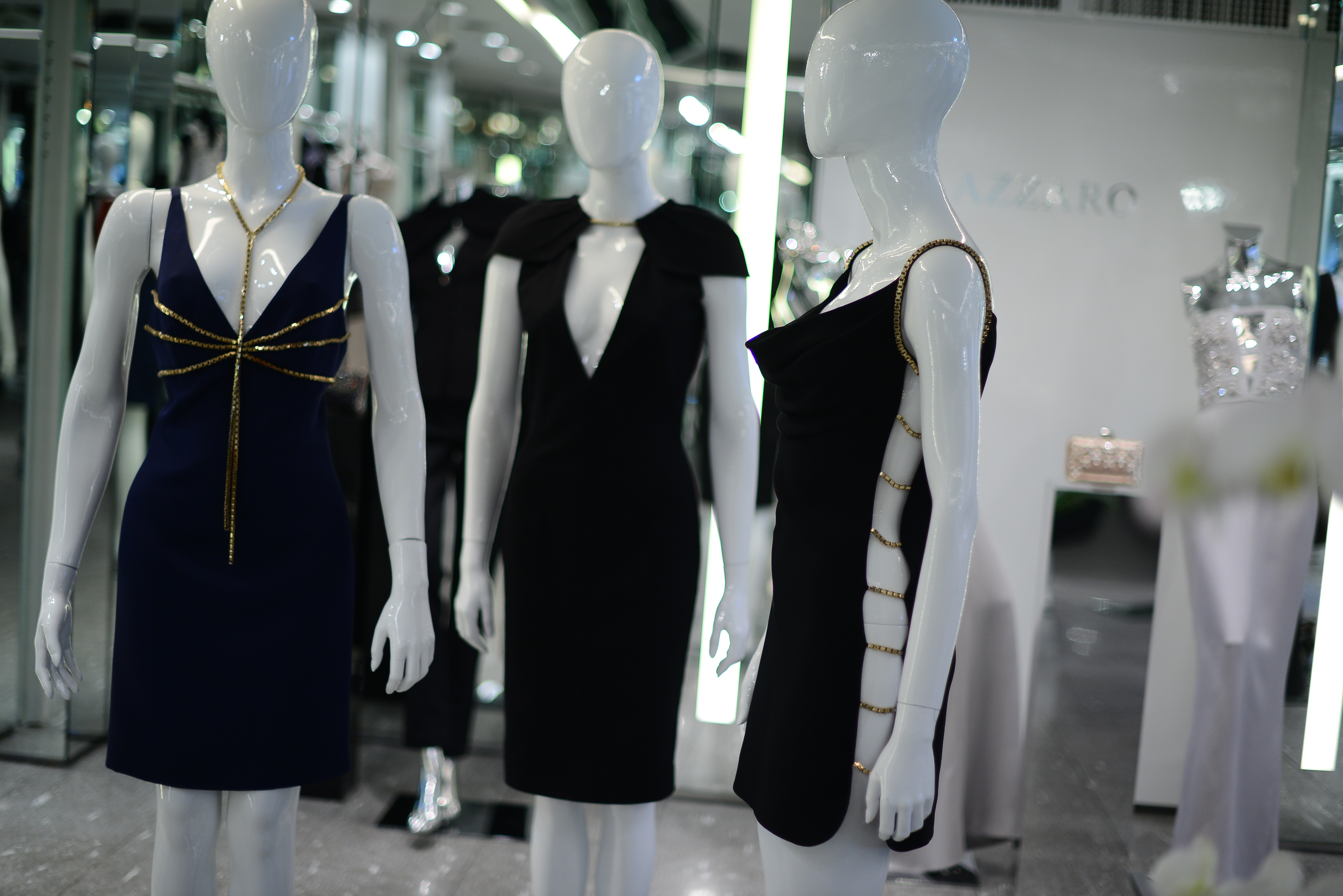 The color palette is dark, and there should be no competition between the crystals used on the garments, the cuts and the garish colors. So Azzaro opts for finesse and good taste, rather than showiness and arrogance.