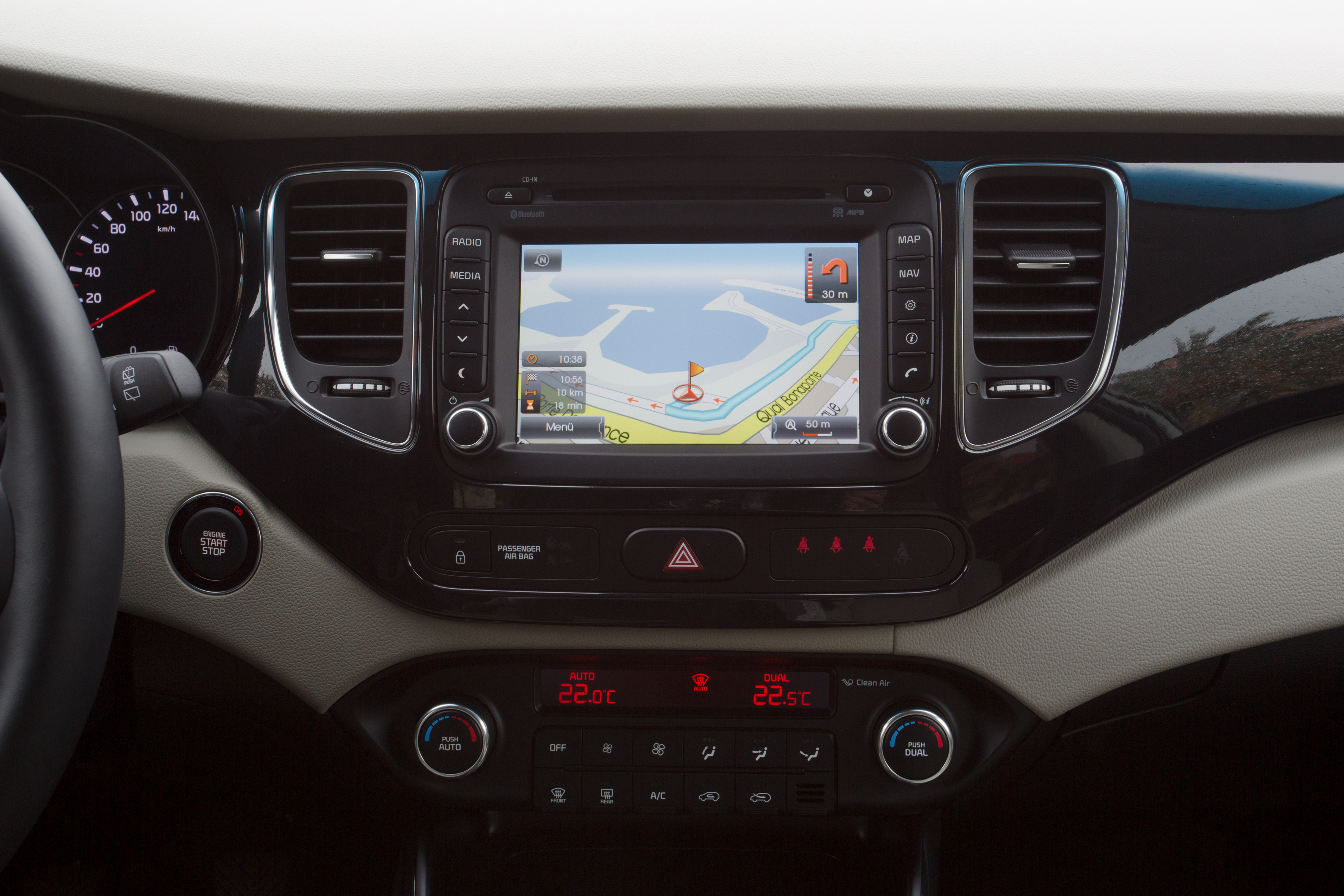 In keeping with the brand’s stylistic direction, the new Kia Carens boasts an elegant, sporty design, thanks in particular to its receding roofline, which sets it apart from the competition. Beneath its bold, dynamic lines, Kia’s new MPV offers a comfortable, spacious and functional interior for up to 7 people.