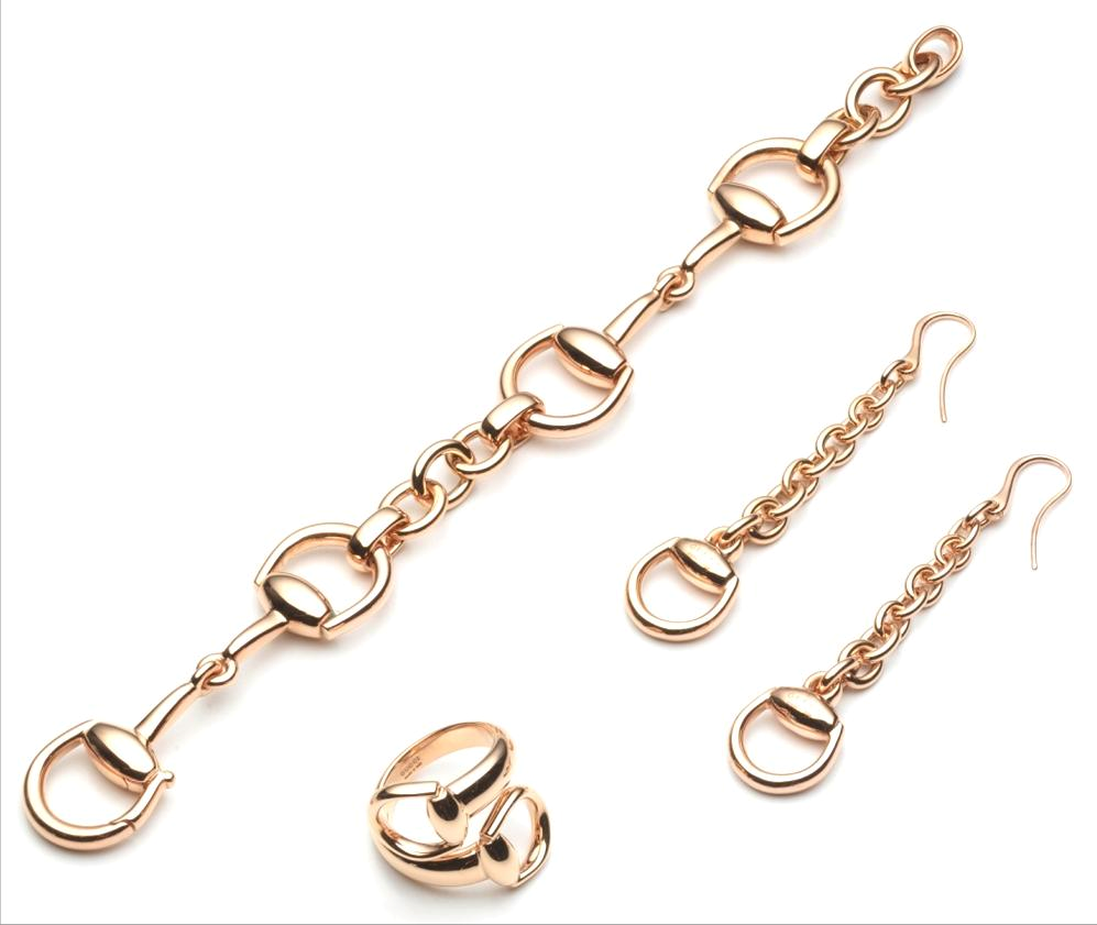 Gold wires, studs and even bites on bracelets, the equestrian world so dear to the House of Gucci is constantly brought to mind through fine jewelry details. The caged pieces (bracelets, pendants, earrings) are of extreme finesse and precision.