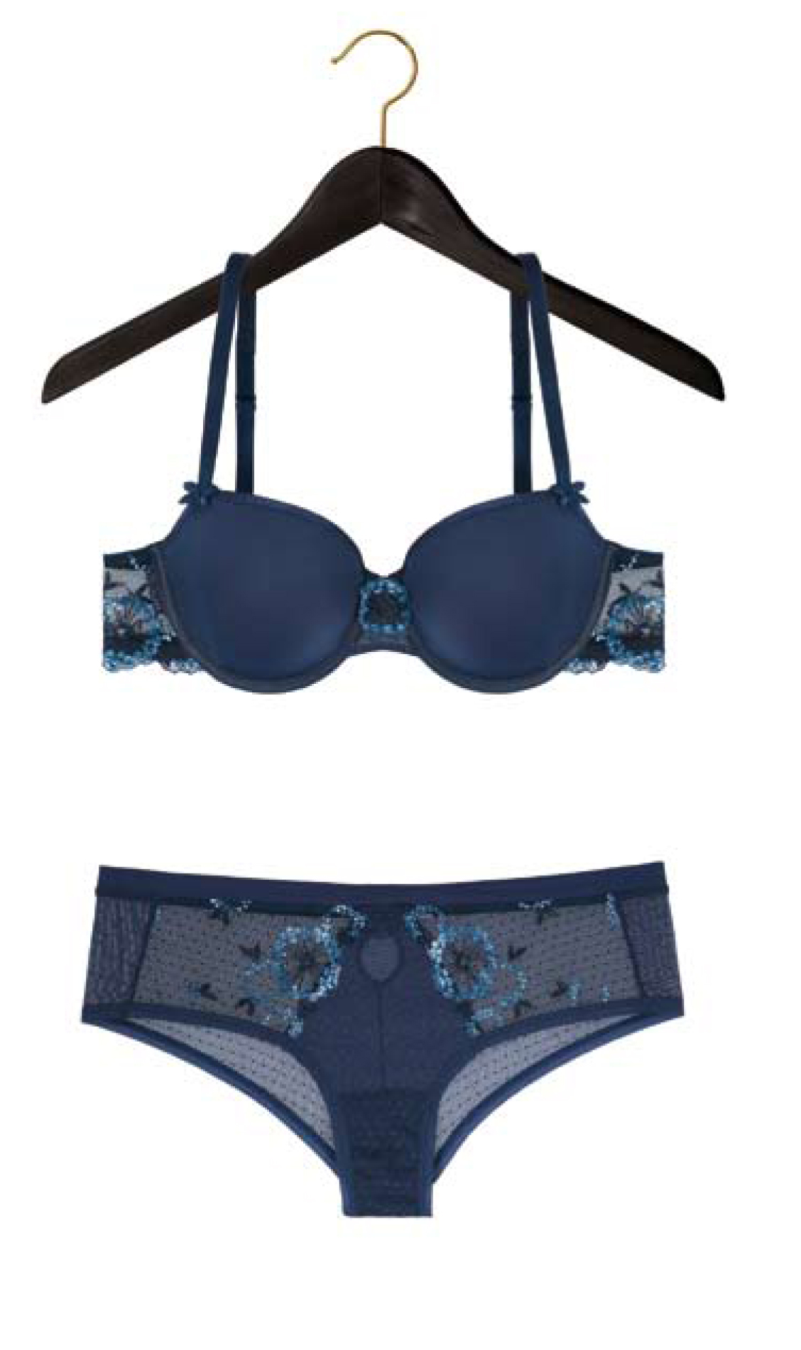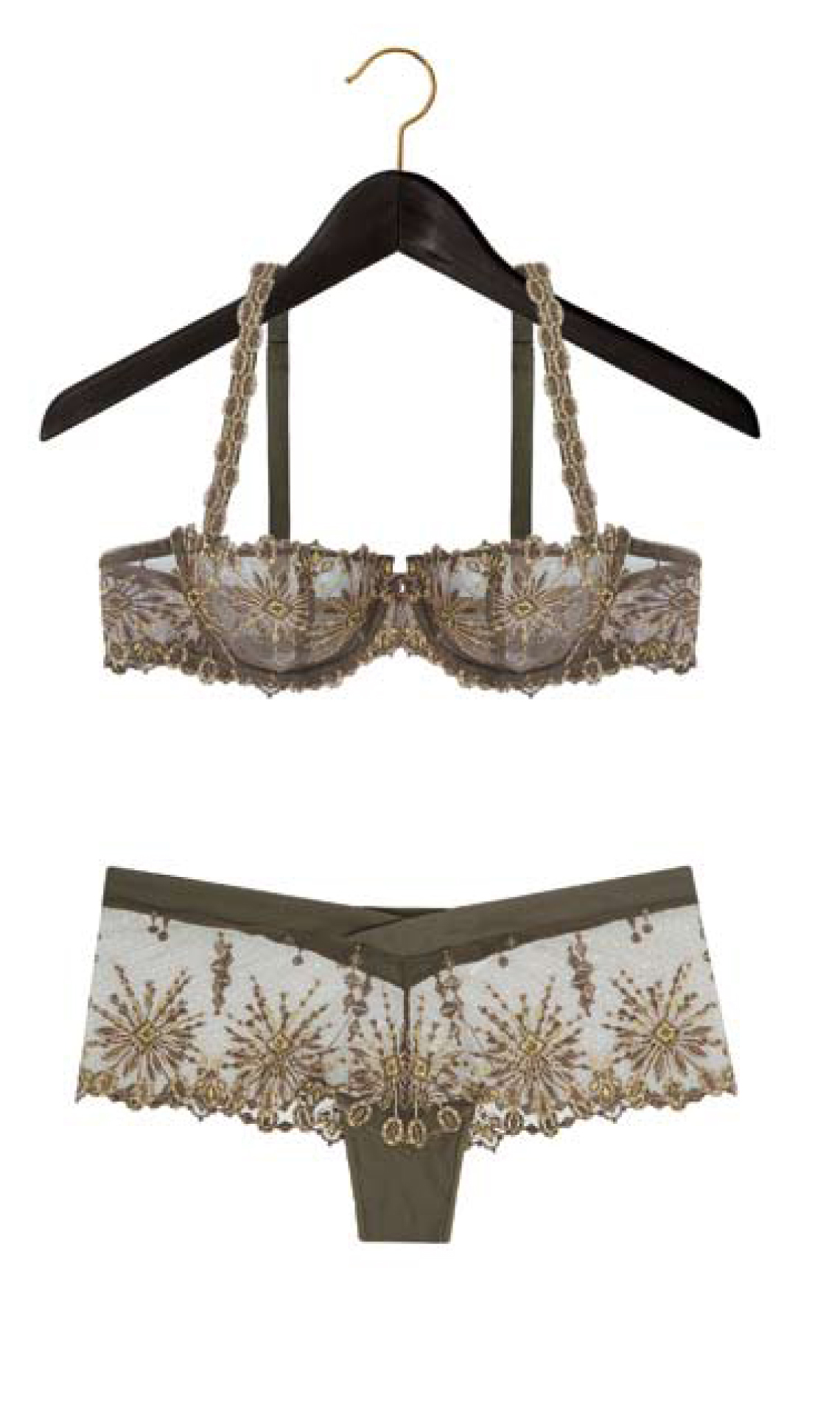 A journey that begins in Paris, with seductive reds featuring Chantelle classics, strawberry and the new lightweight “so light” line. Then a first stop in New York, where casual chic resonates with refined design, graphic lines and ultra-soft lace. A second stop in Prague, a muted harmony of greens tinged with intense reflections, a precious material between leather and mineral, punctuated by the colors of ancient metals on an embroidered line as delicate as ever. And a final stop in Shanghai of light and shadow, the depth of polka blue with the seductive new “opera” line, the mystery of violet electrified by touches of brilliance. These memories of capital cities will be linked this winter to the touch of the noblest materials, the feel of impeccable cuts and Chantelle’s always-perfect décolletés.