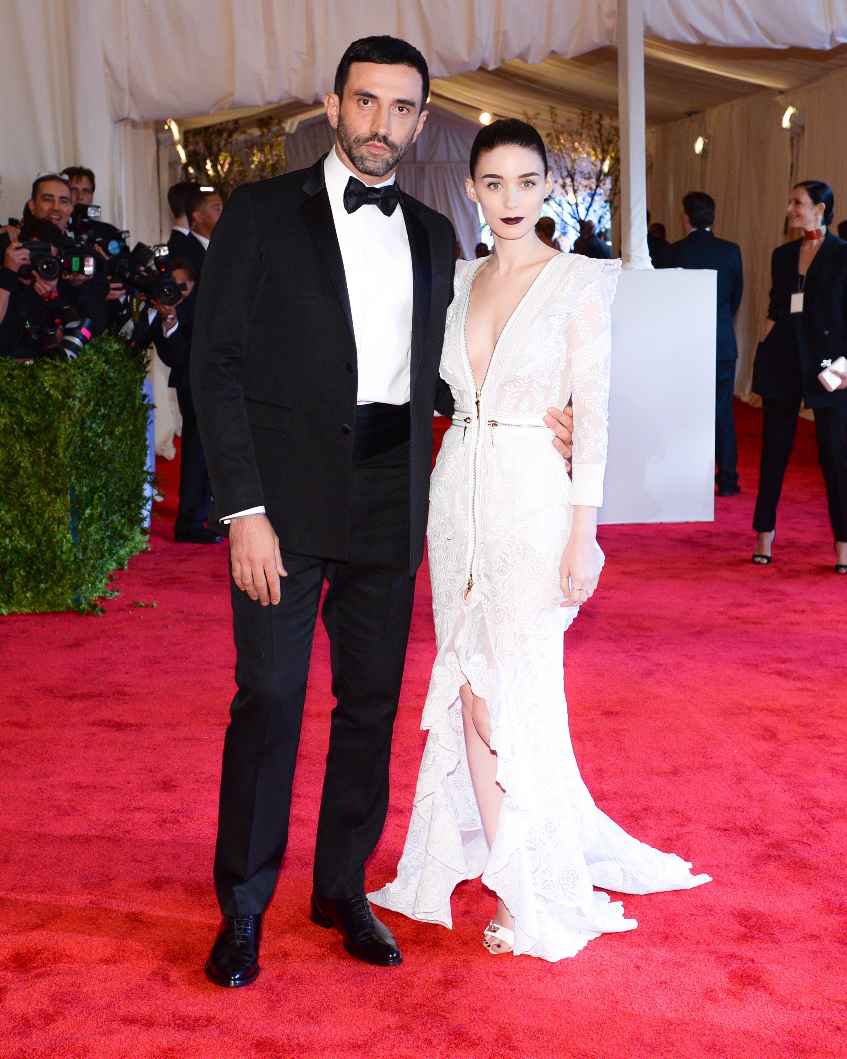 accompanied by her boy-friend Brahim Zaibat , also in Givenchy. Amanda Seyfried on the arm of director Pedro Almodovar, but also Rooney Mara and Carine Roitfled in a black lace and embroidered chiffon dress, adorned with a bambi on the bust, and singer Florence Welch from the group Florence and the Machine, rapper Franck Ocean was also on hand in a tuxedo with satin details. Cara Delevingne and Sienna Miller, dressed by Burberry in studded outfits specially designed by Christopher Bailey. model Coco Rocha for her part was dressed in a sublime Emmanuel Ungaro gown, and singer Gwen Stefani in a Maison Martin Margiela creation. Oscar winner Jennifer Lawrence in Dior Vintage and Dior Joalerie. Emma Robert, Jaime King, Maggie Gyllenhaal in Bulgari. Heidi Klum, Christina Ricci, Georgina Chapman, Keren Graig and Nora Zehetner wore Harry Winston’s high jewelry creations.