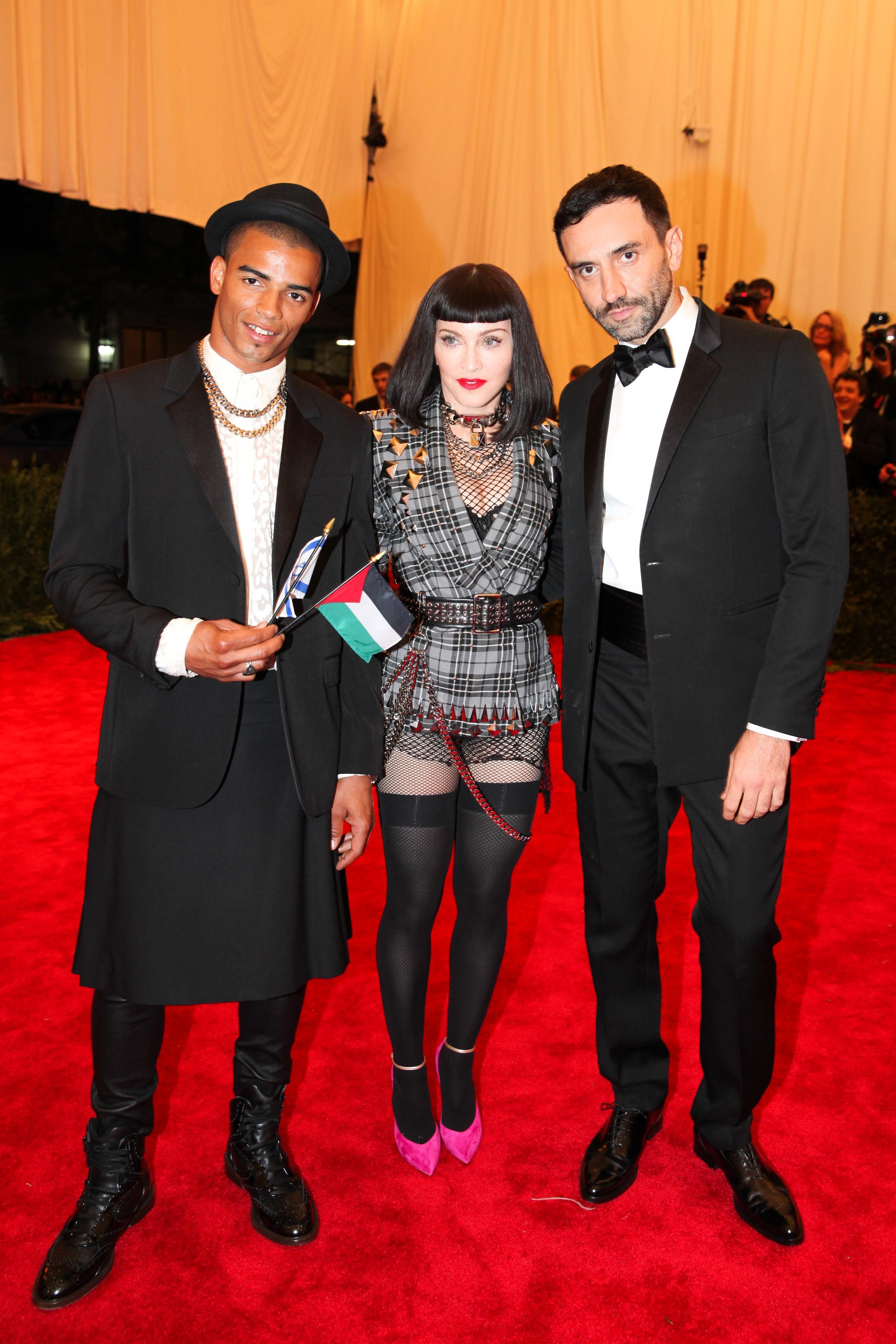 In keeping with this theme, Beyoncé was the mistress of the evening, wearing a gown with baroque motifs by Riccardo Tisci for Givenchy. Tisci has also dressed Kanye West and Kim Kardashian in a floral-print sheath dress , Madonna
