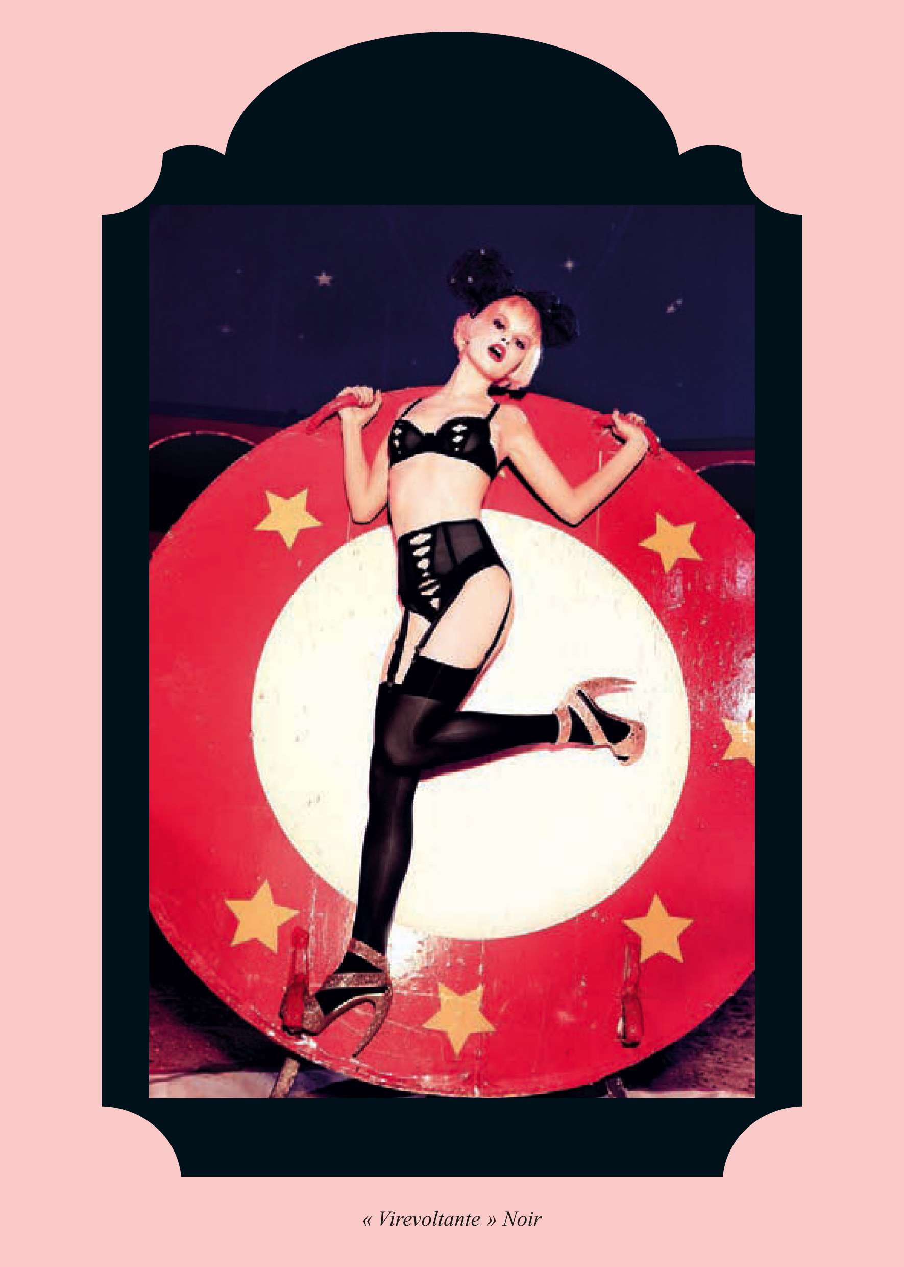 Chantal Thomass, the undisputed queen of French luxury lingerie, needs no introduction. Chic, glamorous collections that are always an ode to femininity. This year, the circus theme takes center stage: lace, silk, satin, bows and ultra-feminine motifs are applied to bras, basques, corsets, garter belts, tights and stockings. These creations create a rock’n’roll but also burlesque atmosphere, for an uninhibited circus bursting with sensuality and femininity. Get a sneak preview of the next Autumn-Winter 2013 collection.