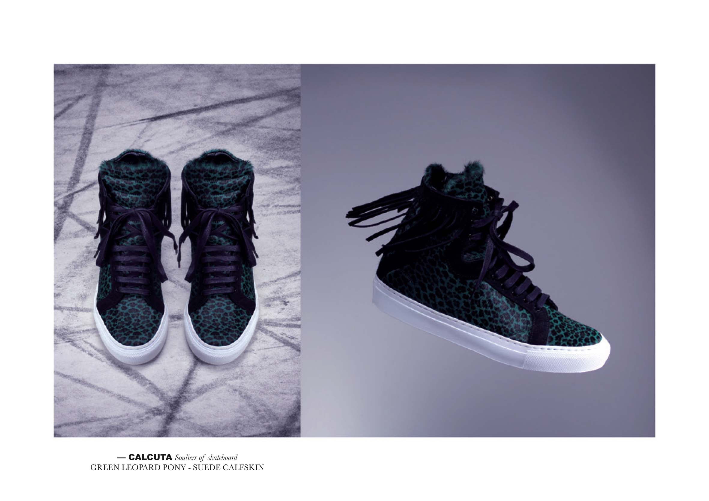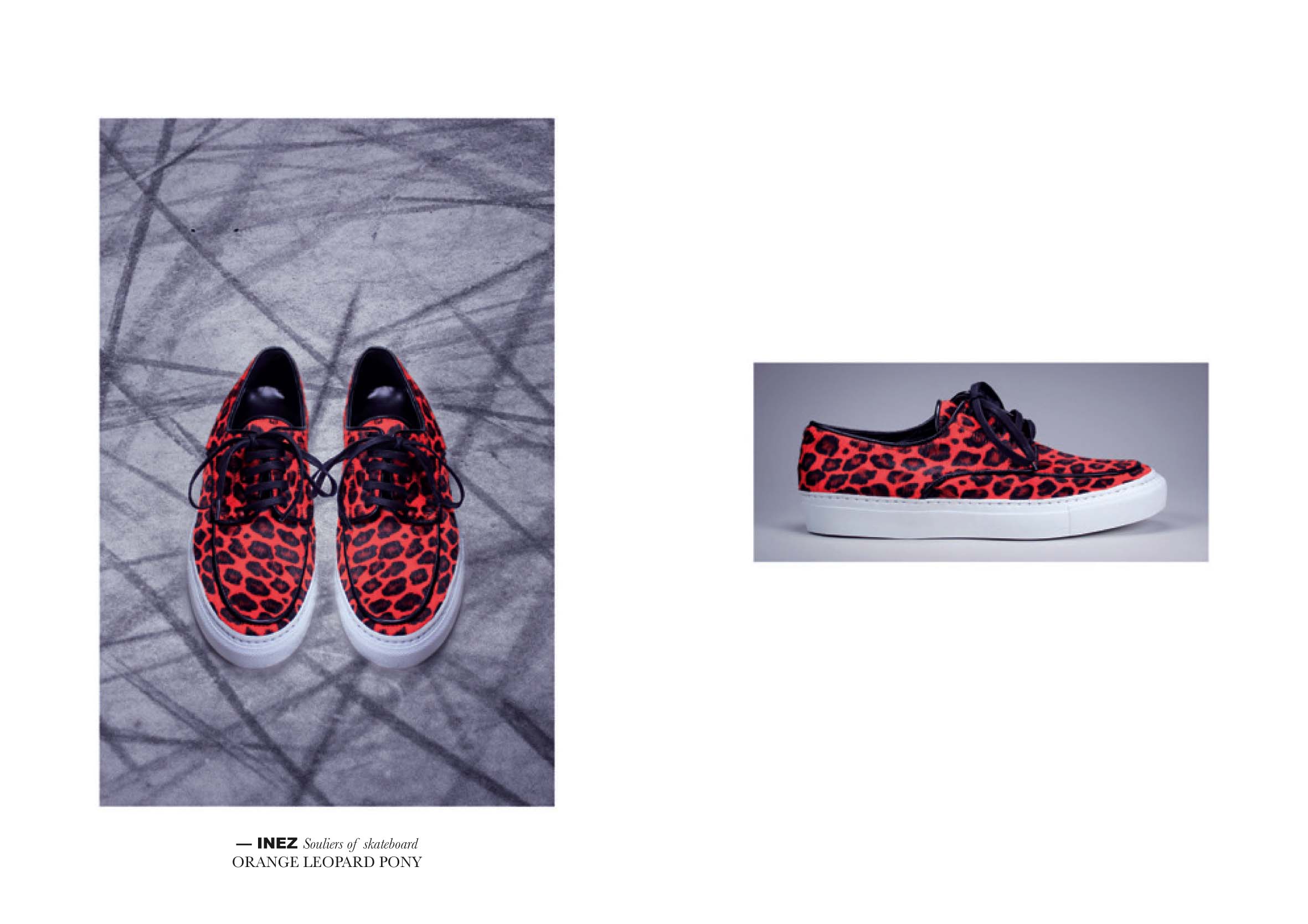 At just 23 years of age, Eugène Riconneaus, the young shoe designer always on his skateboard, continues to brilliantly materialize his skate culture and inspire us with his creations. In this new autumn-winter collection, the little prince of shoemakers asserts himself in his own two-dimensional universe: skate and fashion. Embellishing women’s feet more than ever, day and night, from skate shoes to perched high heels. The models in this collection elegantly marry the codes of skate counterculture with bangs and graphic leopard prints, transcribed onto refined leathers such as hair colt, box calf, chinchilla, ostrich feathers and kid suede. The dazzling fruit of the synergy of two antagonistic universes, the collection has already won over prestigious concept stores such as Colette, Tomorrowland, Harvey Nichols and Avenue 32, as well as many others we won’t have heard of yet.