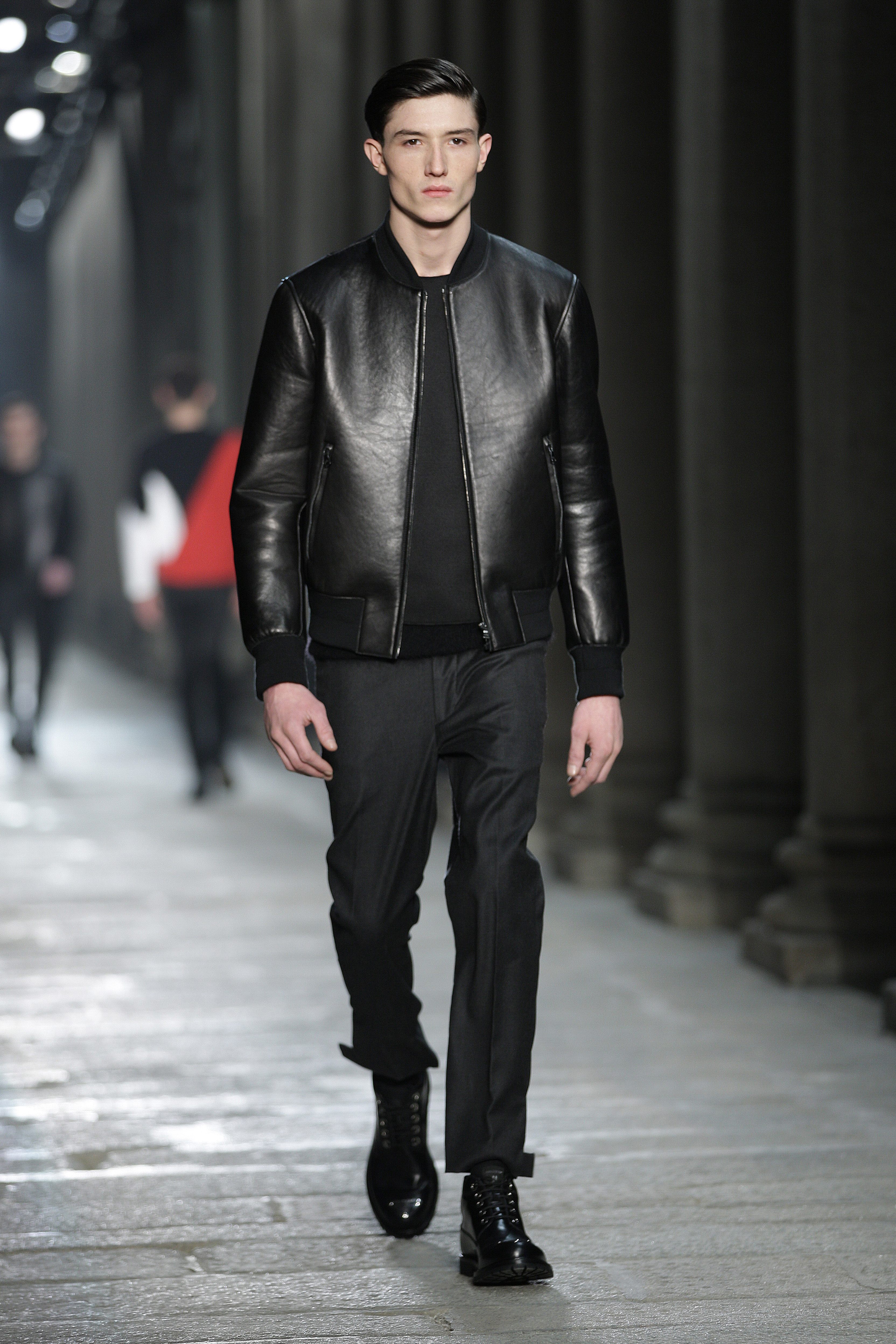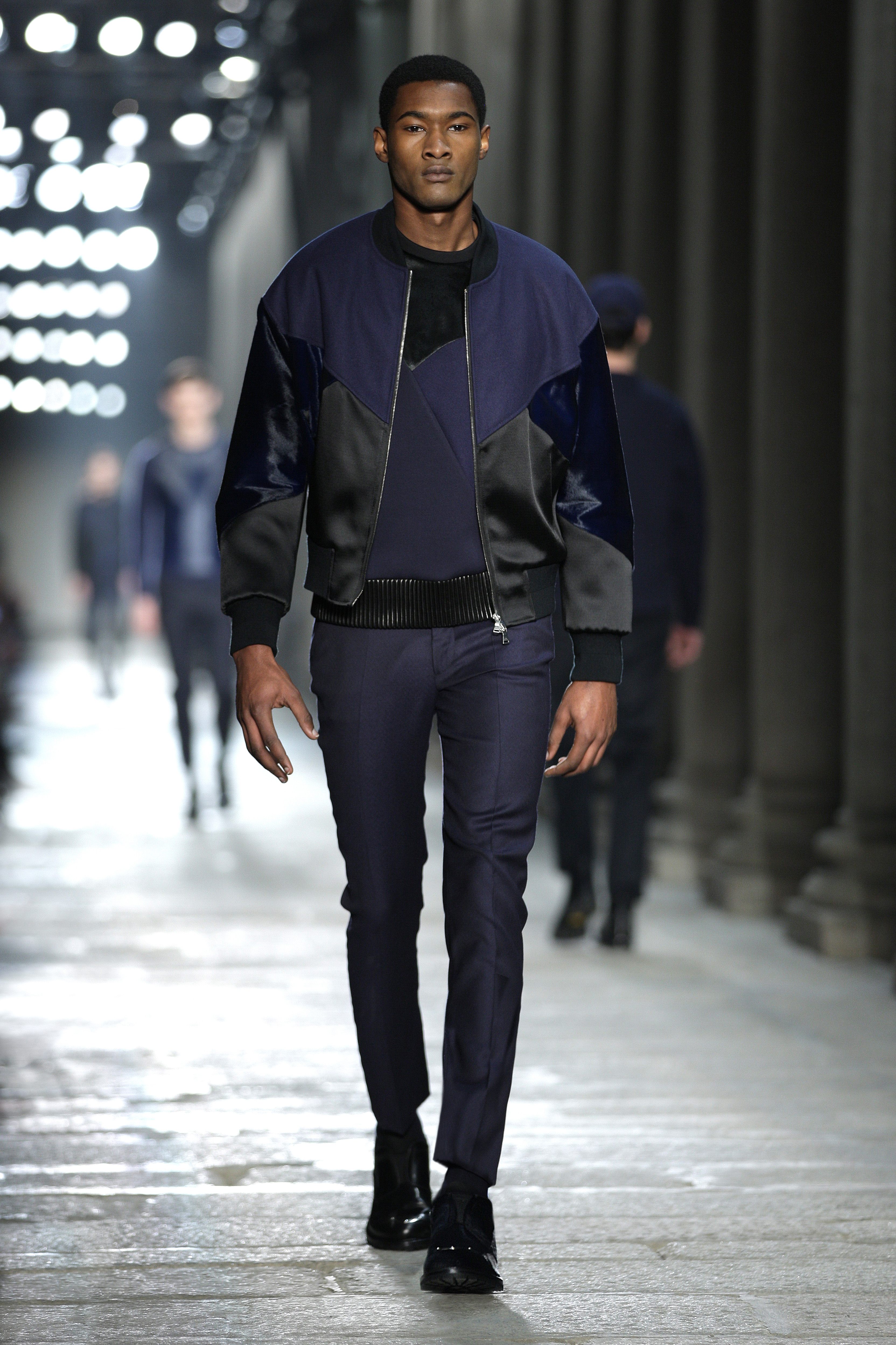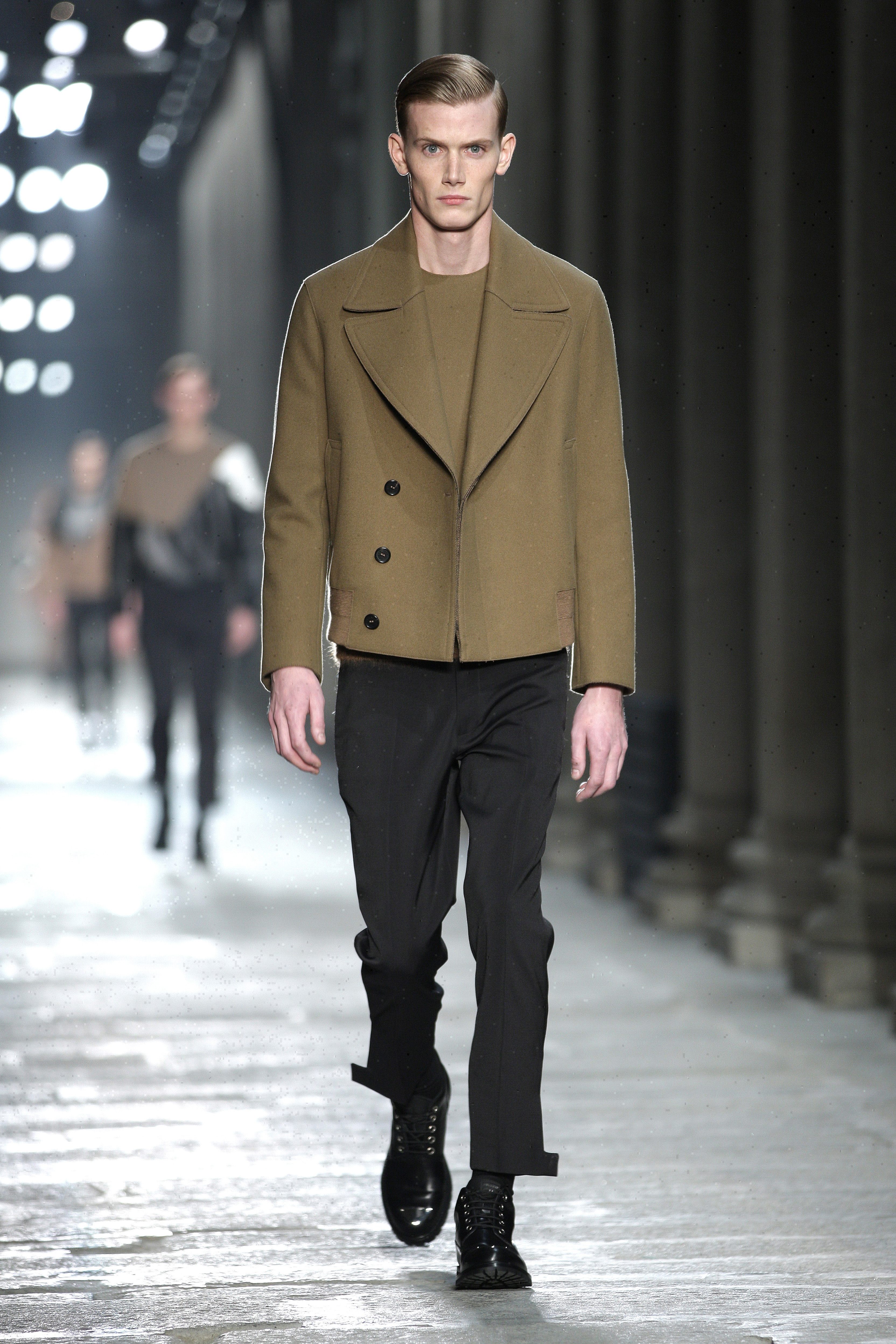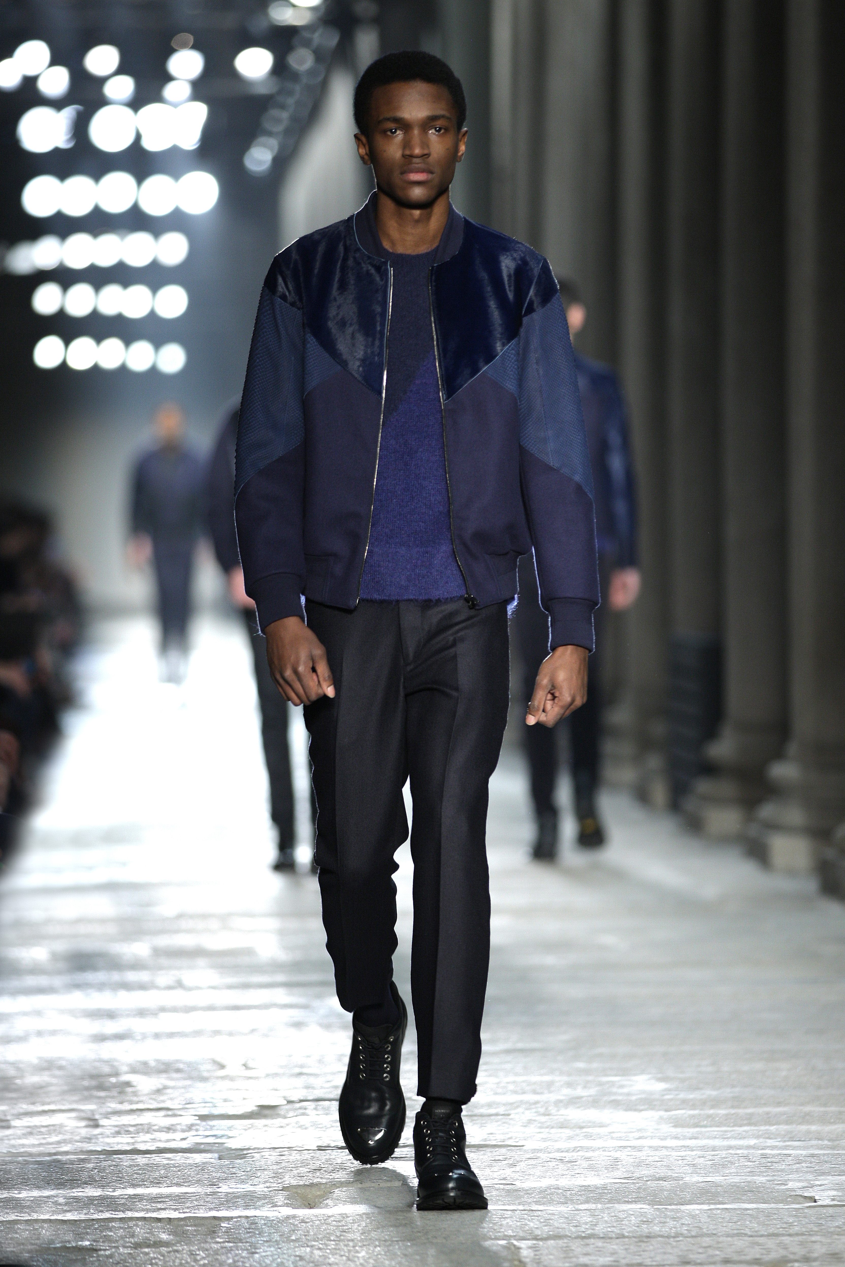 Simplicity doesn’t seem to be the only notion imbued with the Bauhaus movement; functionality is also at its heart. Bombers, sweaters and coats – these are the kind of clothes Neil Barrett offers that are beautiful and appropriate for winter, without falling into a rigorist aridity that would make the collection boring. What the color palette lacks in fantasy, Neil Barrett reinjects in shapes, fabric mixes and prints.