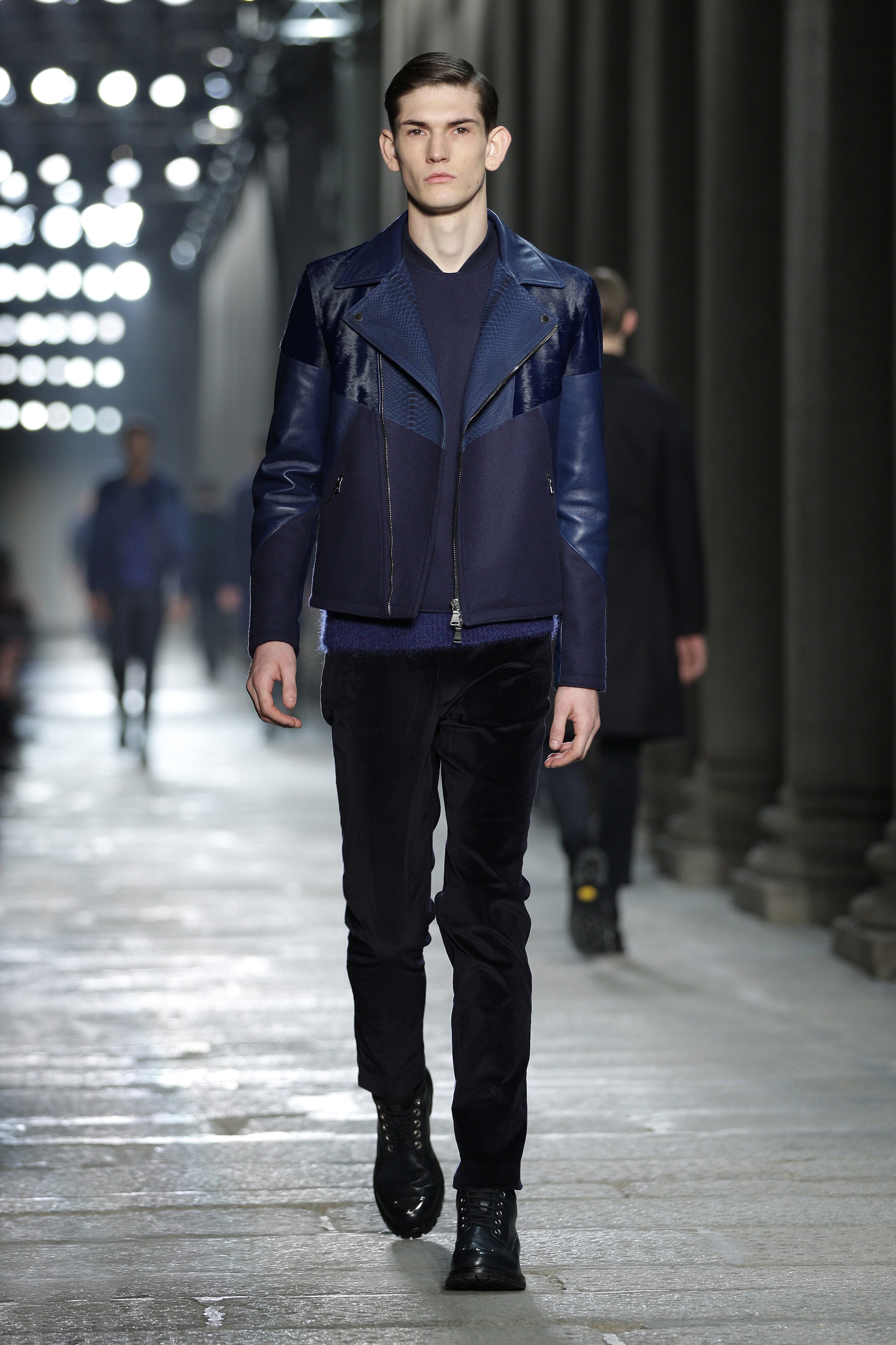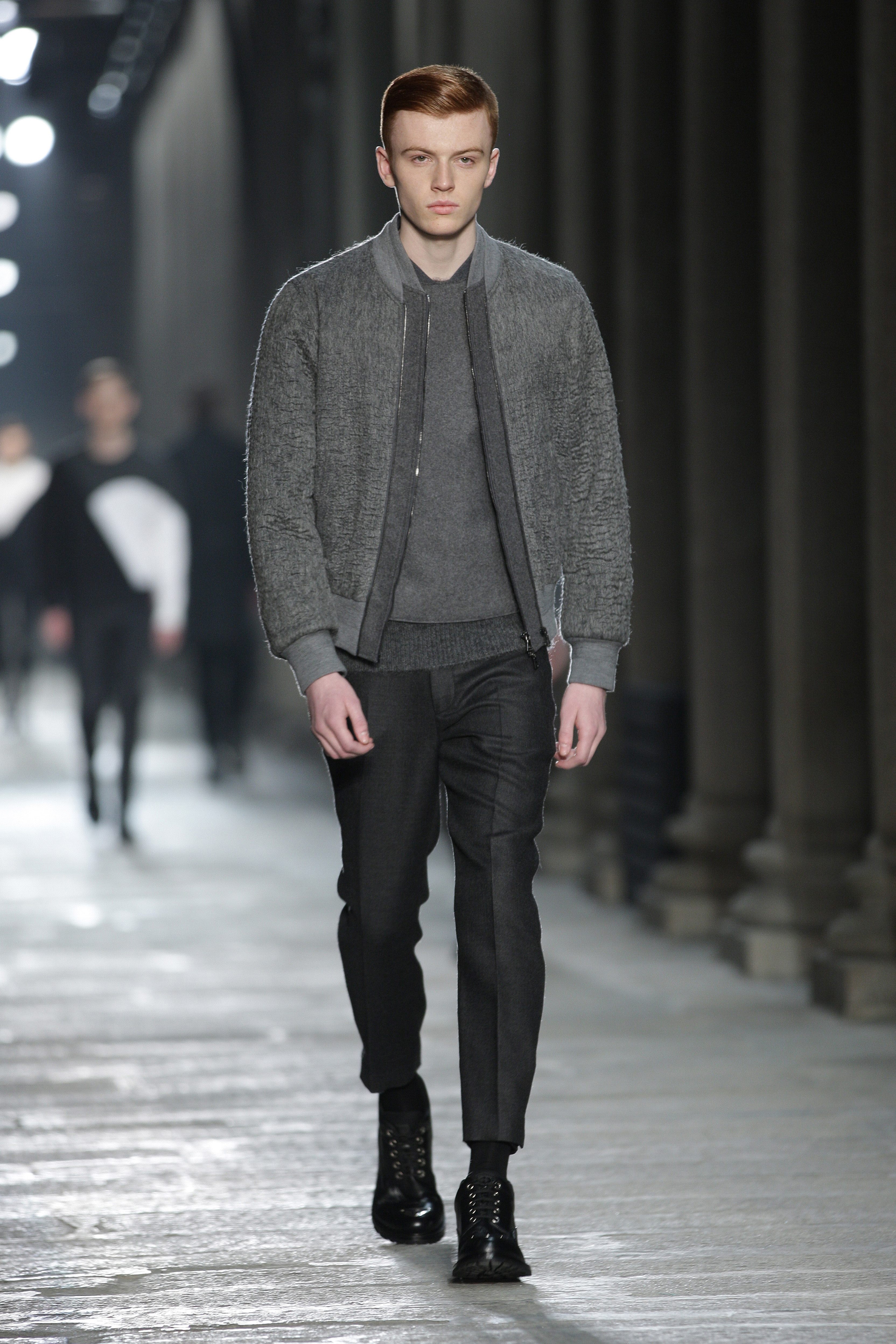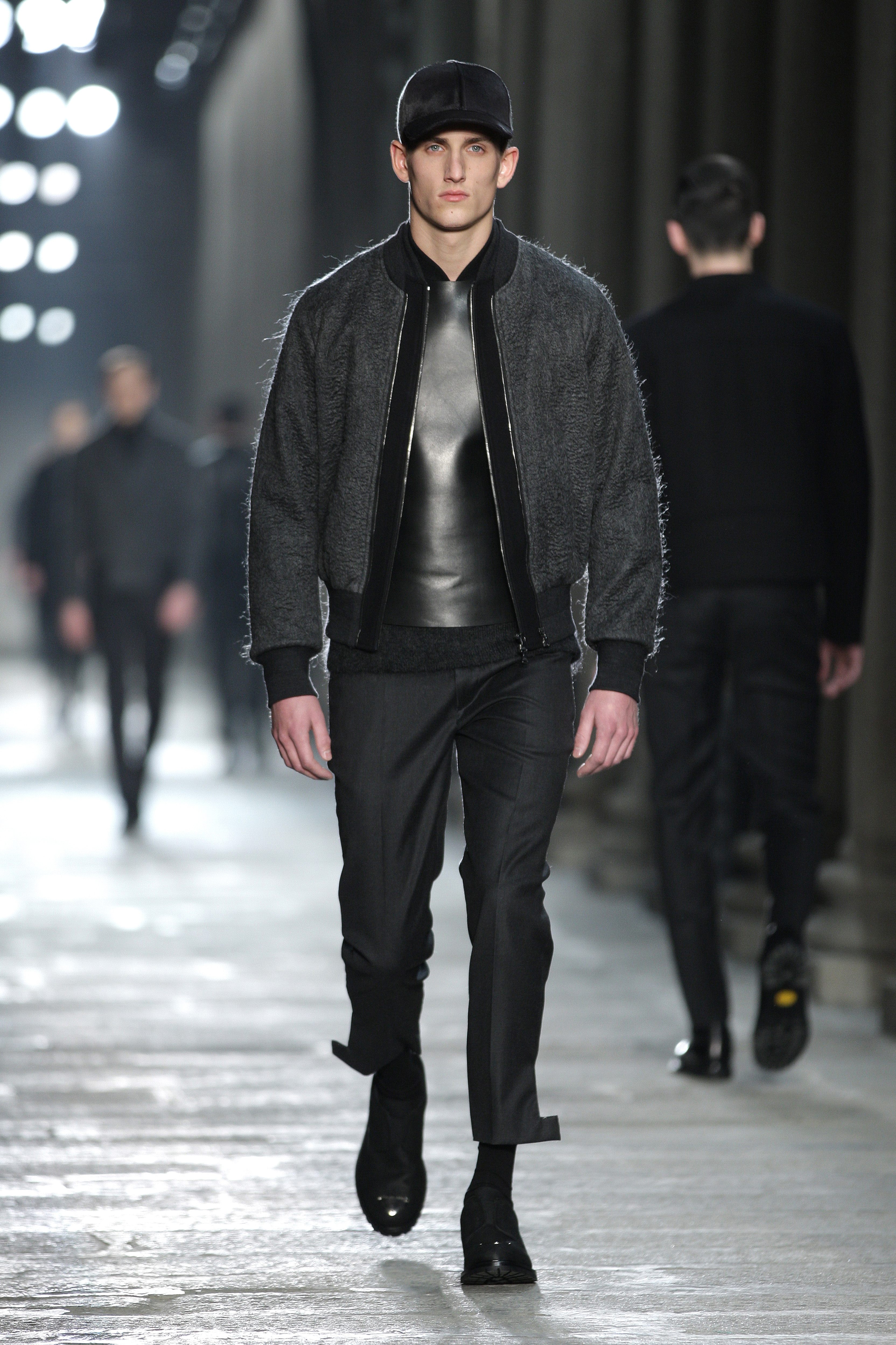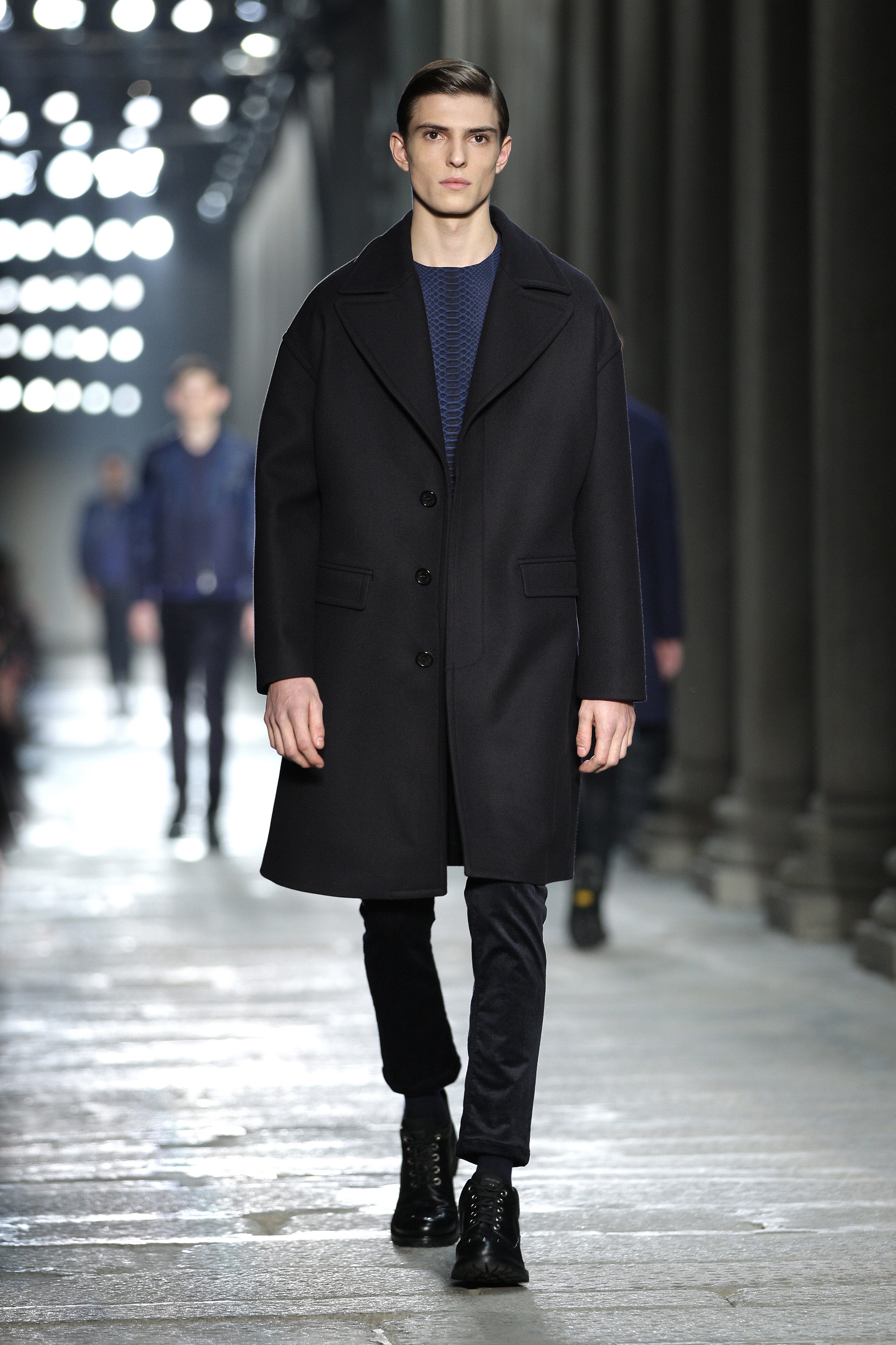 Simplicity doesn’t seem to be the only notion imbued with the Bauhaus movement; functionality is also at its heart. Bombers, sweaters and coats – these are the kind of clothes Neil Barrett offers that are beautiful and appropriate for winter, without falling into a rigorist aridity that would make the collection boring. What the color palette lacks in fantasy, Neil Barrett reinjects in shapes, fabric mixes and prints.