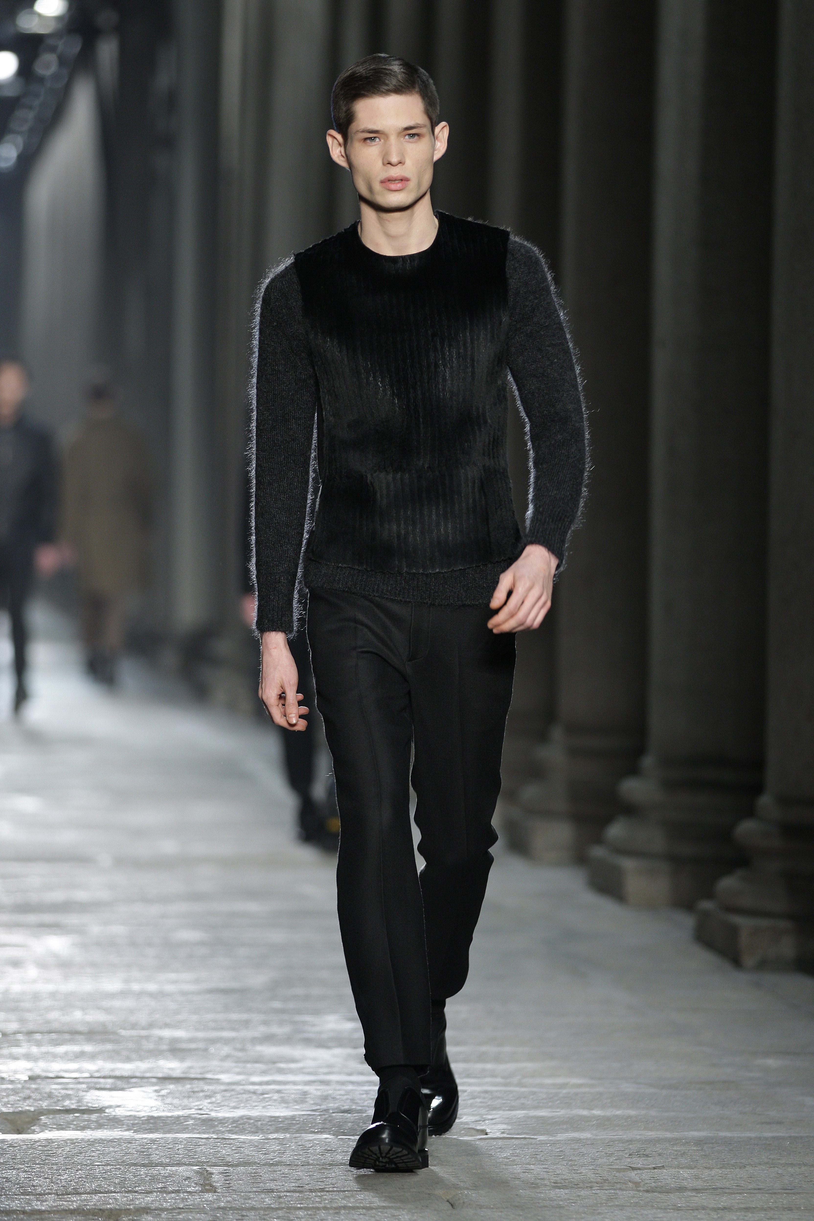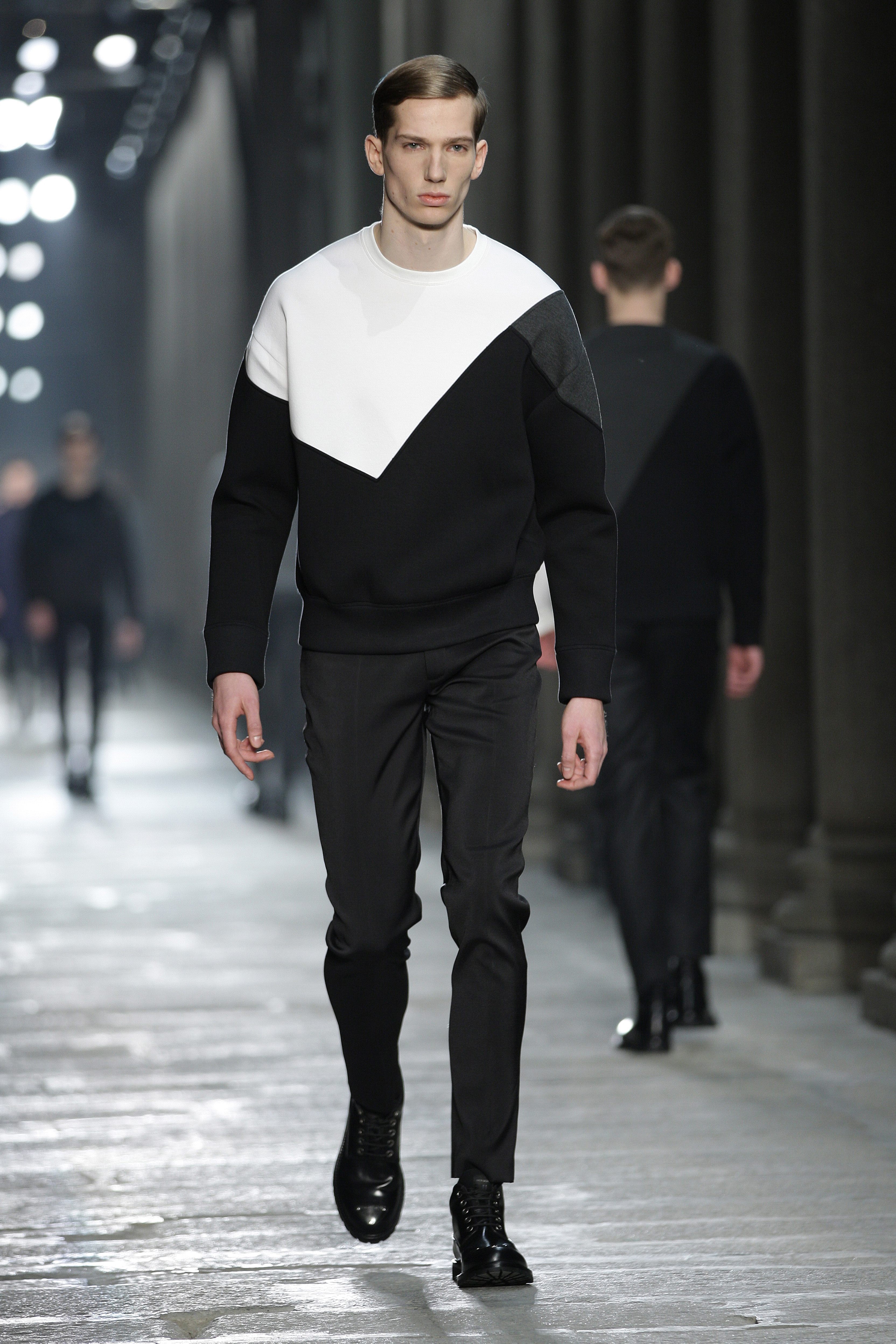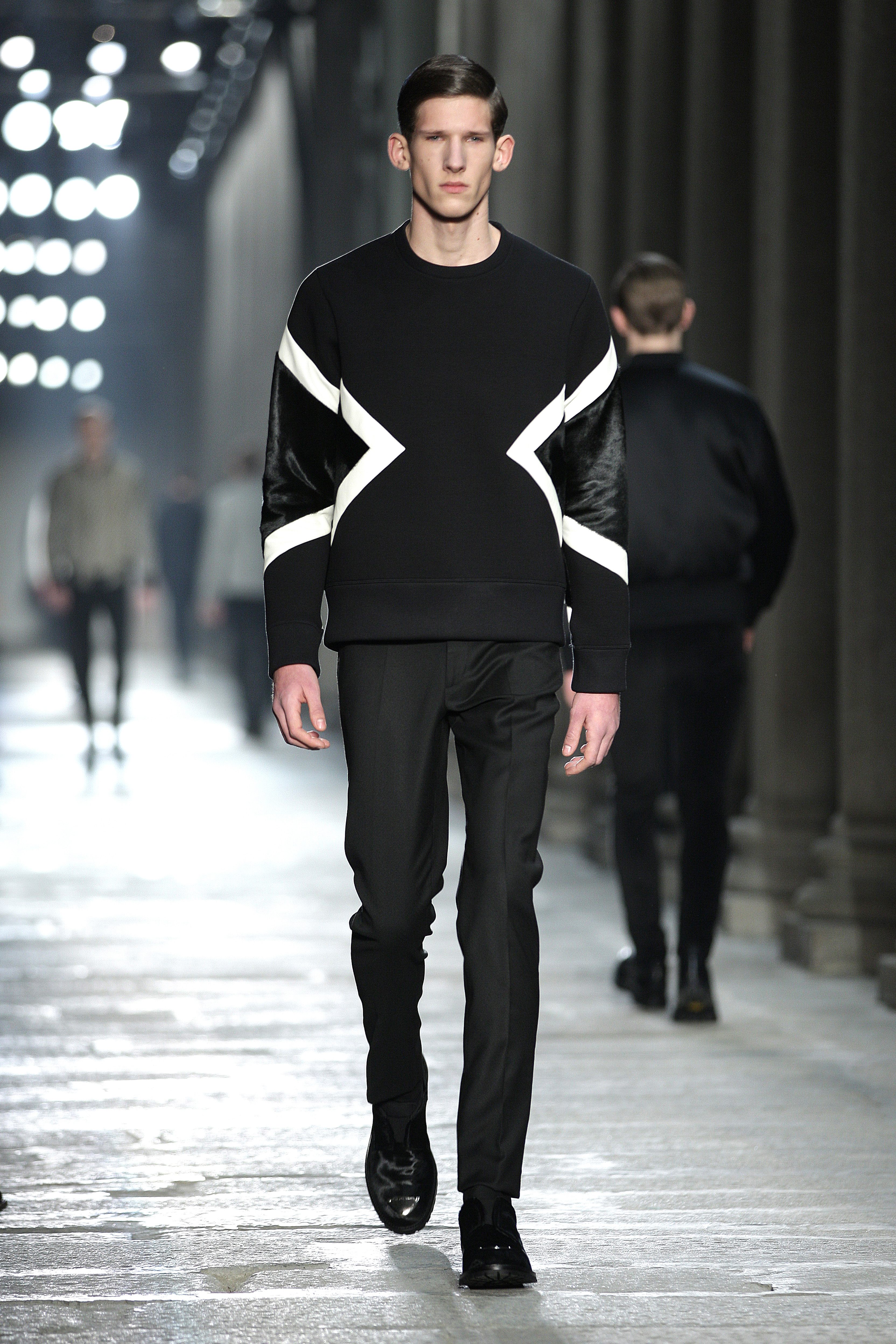 Excellence, you can see that details are not left to chance. Who would have thought that a black and white zigzag pattern print on a pony lining could look so clean? Neil Barrett demonstrates this, and the execution is, like the entire Autumn/Winter collection, exact and elegant.