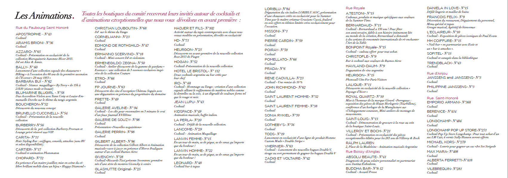 set the Faubourg Saint Honoré alight with several “Flashmob” performances staged by the TangoArt agency. Refinement, aestheticism and prestige evoked not only Tango, but also the city of Paris, which has had a strong influence on the success of Tango. Born in the suburbs of Buenos Aires, it was in Paris that this art form acquired its titles of nobility. The Rue du Faubourg Saint Honoré, which was fully equipped with sound systems for the occasion, was the place to be for dancing passers-by.