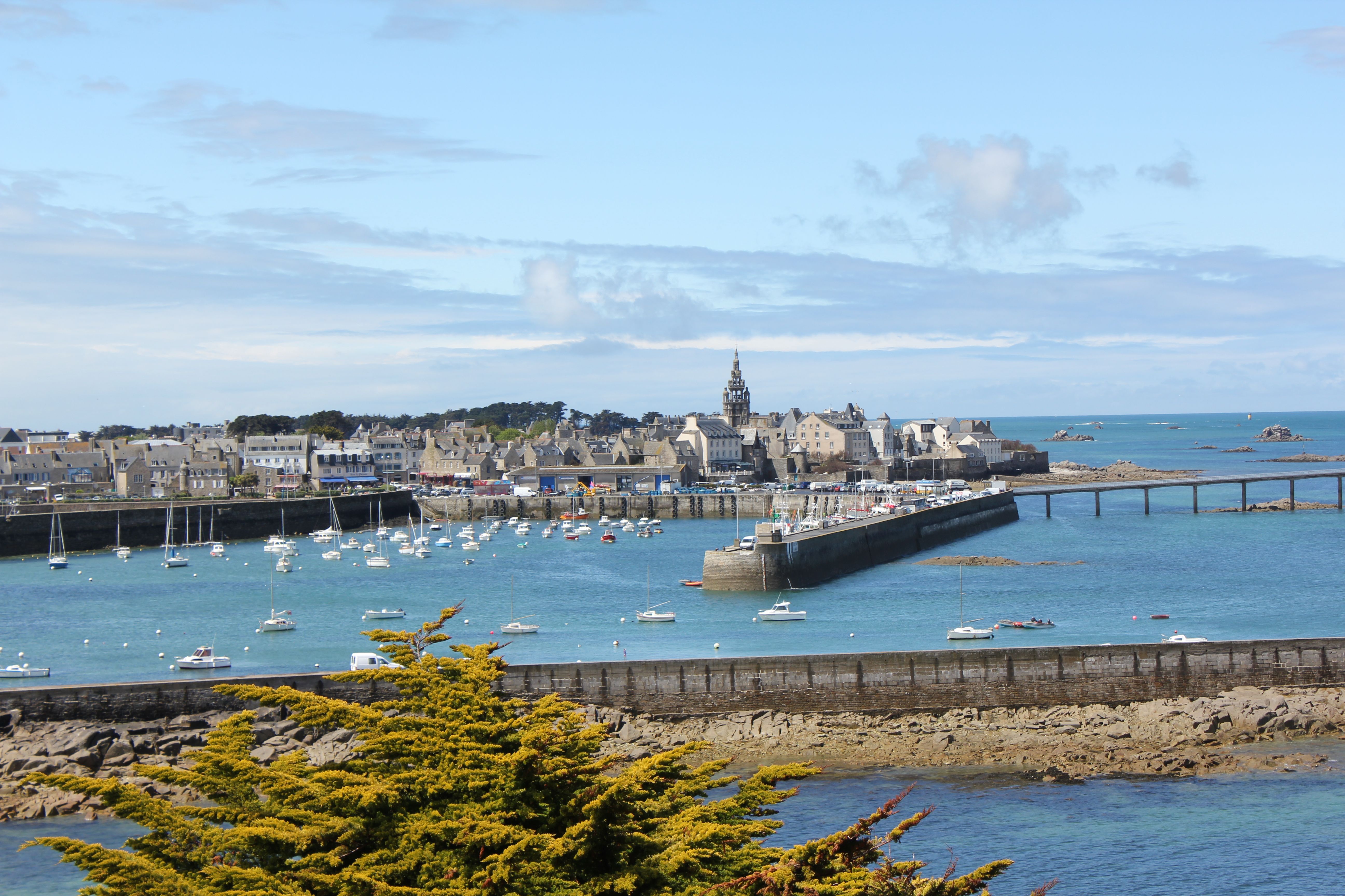 Roscoff, set on a peninsula in Morlaix Bay, is a dynamic, sea-facing town. Its solid, imposing mansions, built to withstand the elements and invaders, bear witness to the town’s maritime vocation! Its local economy has always been highly varied, ensuring its prosperity: maritime trade, renowned local agricultural production (notably onions), a biological station, an oceanographic research and processing center, a ferry port, seaside tourism and thalassotherapy centers!