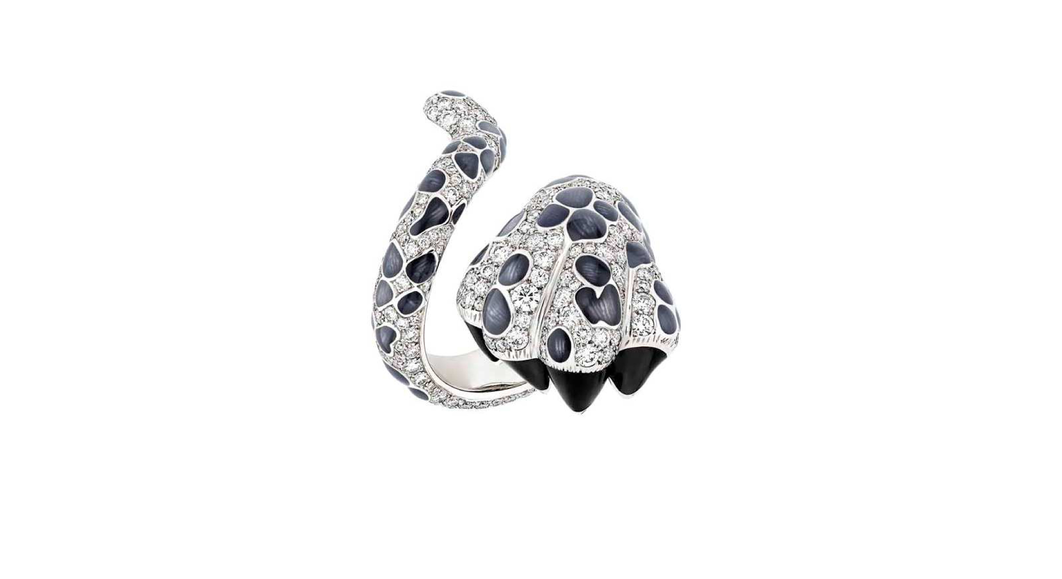 Designer Victoire de Castellane for Dior Joaillerie presents her new ring named MITZA. This new creation pays tribute to Mitza Bricard, Monsieur Dior’s famous muse. Legend has it that Mitzah used to wear a panther muslin on her wrist to hide a scar.